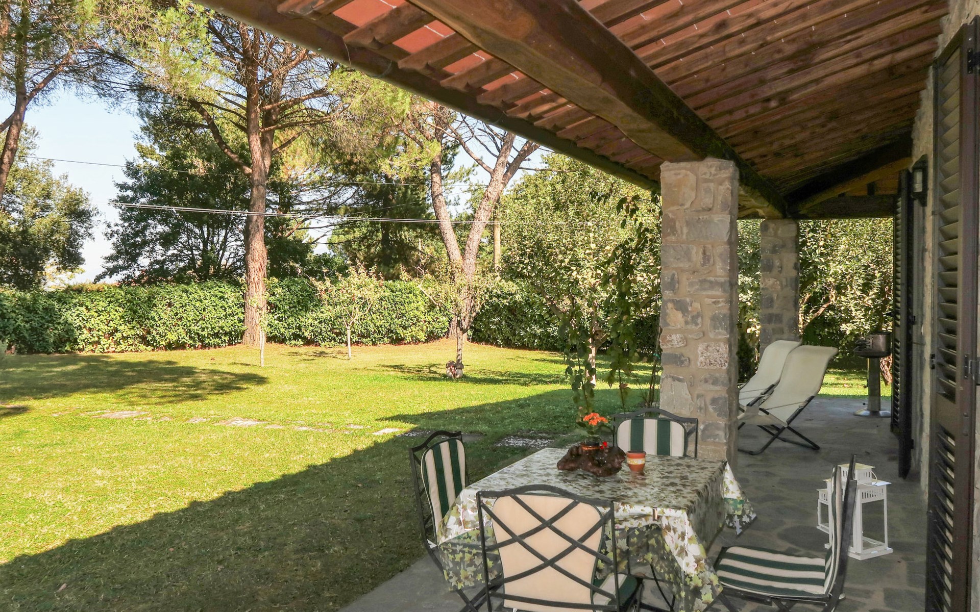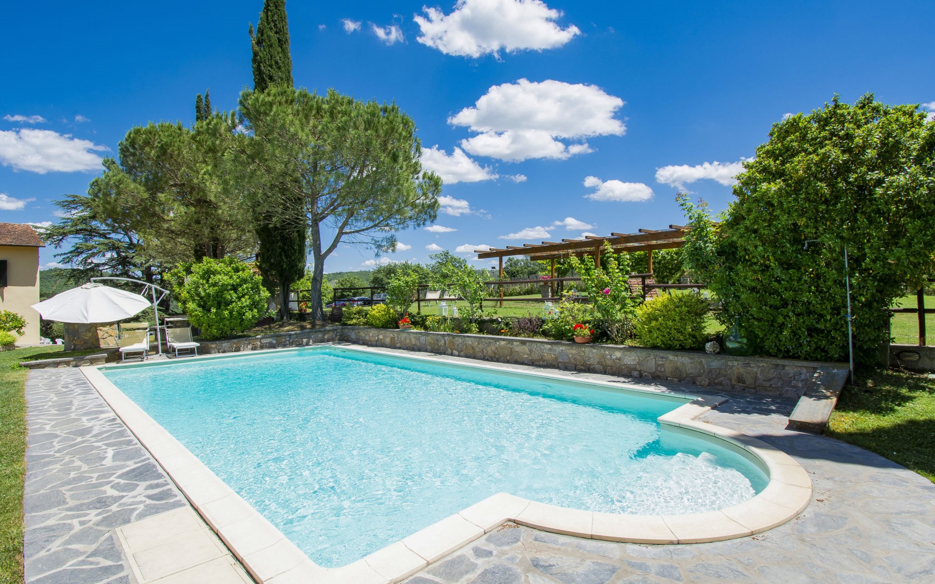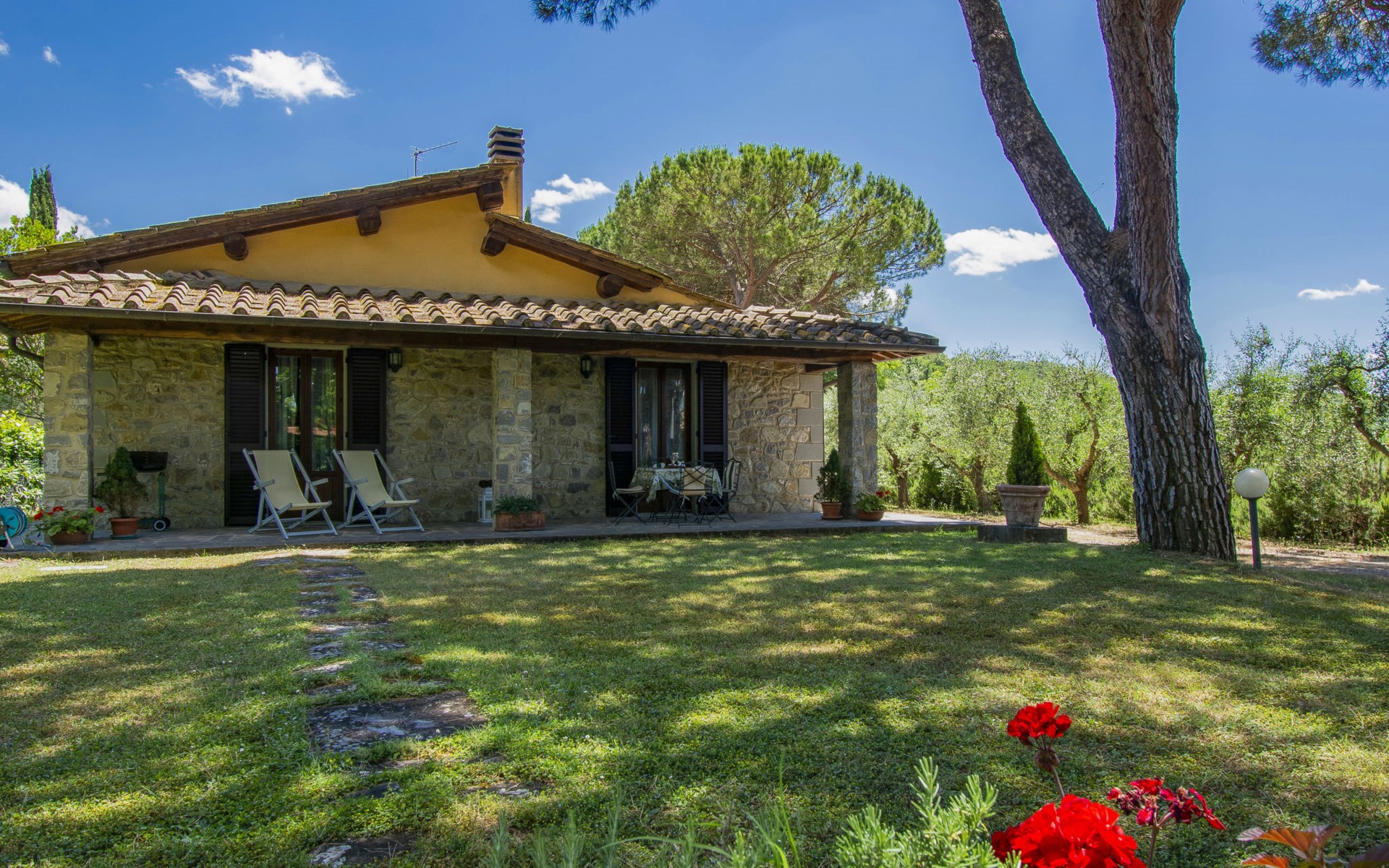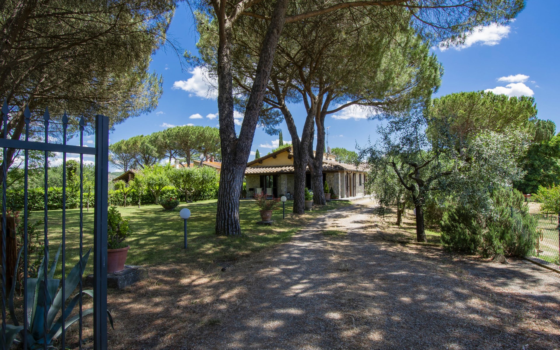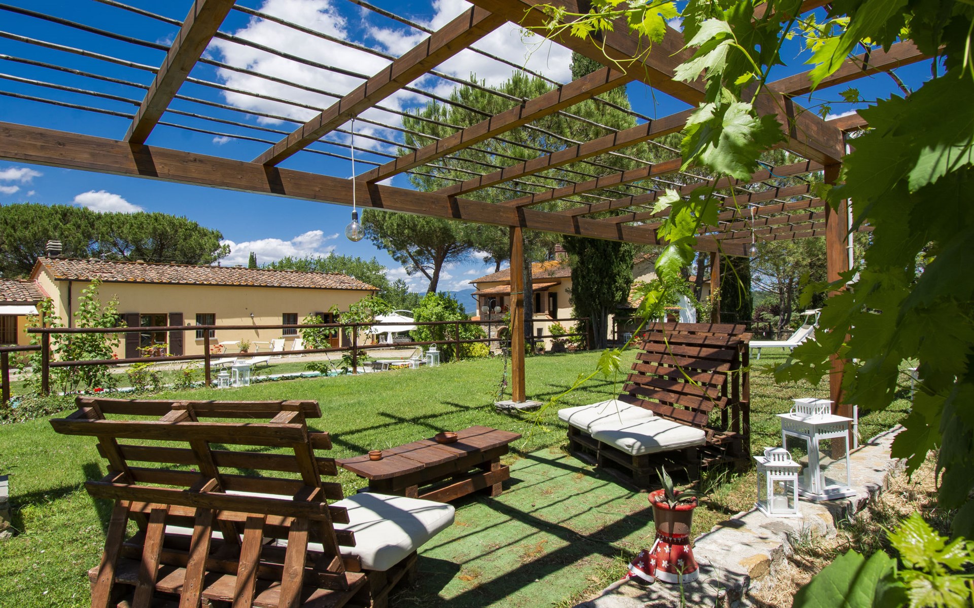 Residenz "Cedri Alti", umgeben von Bäumen und Feldern. 4 Häuser in der Residenz. Oberhalb von Gavignano in Val d'Ambra, 5 km vom Zentrum von Bucine, 1 km vom Zentrum von Ambra, 32.5 km vom Zentrum von Arezzo, ruhige, erhöhte Lage. Zur Mitbenutzung: Grundstück 14 ha, Garten 6'000 m2 (eingezäunt) mit Rasen und Bäumen, Wiese, Obstgarten, Schwimmbad (12 x 6 m, 70 - 240 cm tief, saisonale Verfügbarkeit: 15.Apr. - 31.Okt. Öffnungszeiten Schwimmbad: 00:01-24:00). Aussendusche, Poolhaus, Tischtennis, Terrasse, Gartenmöbel, Grill. Im Hause: Tischtennis, Tischfussball. Parkplatz. Einkaufsgeschäft 1.4 km, Supermarkt 7 km, Bushaltestelle 500 m, Bahnstation "Bucine" 3 km, Sandstrand "Castiglione della Pescaia" 125 km, Freibad 1 km. Tennis 1 km, Reitstall 1 km. Nahe gelegene Sehenswürdigkeiten: Siena 40 km, Montepulciano 55 km, Firenze 65 km, Equestrian Center Arezzo 25 km. Bitte beachten: geeignet für Familien.