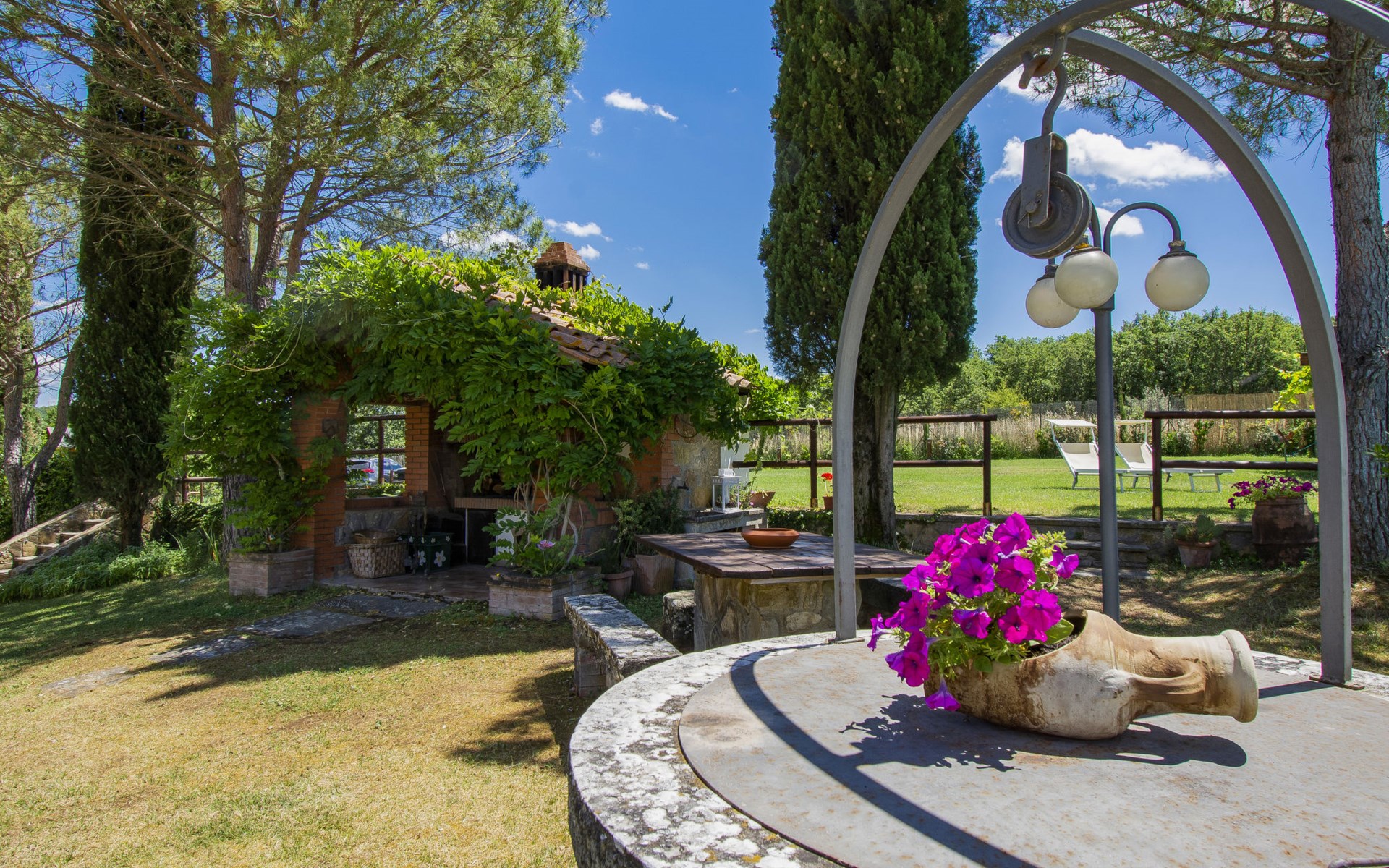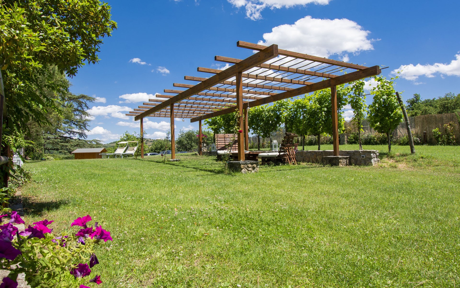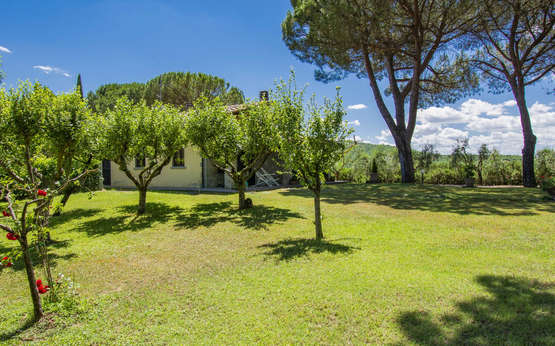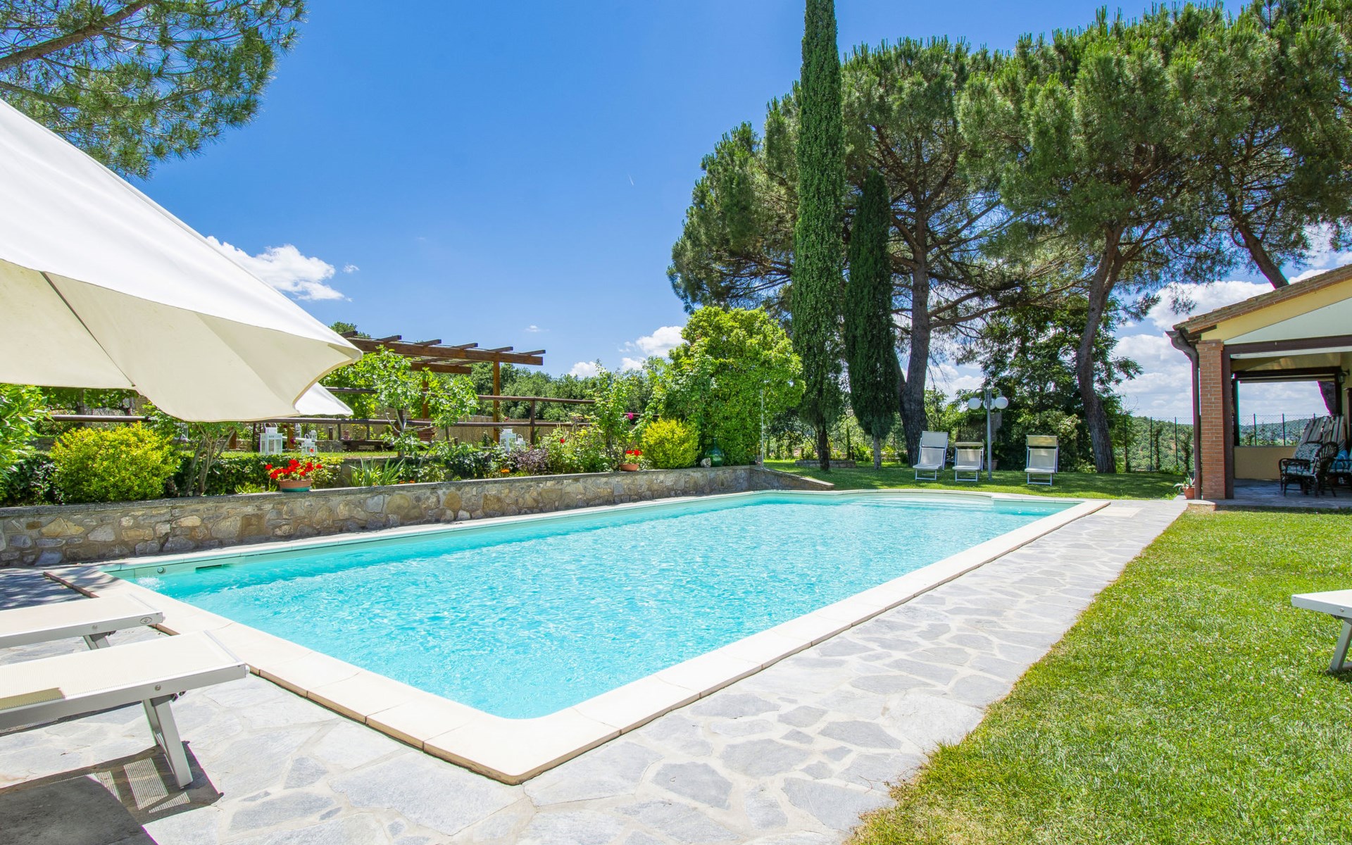 Residenz "Cedri Alti", umgeben von Bäumen und Feldern. 4 Häuser in der Residenz. Oberhalb von Gavignano in Val d'Ambra, 5 km vom Zentrum von Bucine, 1 km vom Zentrum von Ambra, 32.5 km vom Zentrum von Arezzo, ruhige, erhöhte Lage. Zur Mitbenutzung: Grundstück 14 ha, Garten 6'000 m2 (eingezäunt) mit Rasen und Bäumen, Wiese, Obstgarten, Schwimmbad (12 x 6 m, 70 - 240 cm tief, saisonale Verfügbarkeit: 15.Apr. - 31.Okt. Öffnungszeiten Schwimmbad: 00:01-24:00). Aussendusche, Poolhaus, Tischtennis, Terrasse, Gartenmöbel, Grill. Im Hause: Tischtennis, Tischfussball. Parkplatz. Einkaufsgeschäft 1.4 km, Supermarkt 7 km, Bushaltestelle 500 m, Bahnstation "Bucine" 3 km, Sandstrand "Castiglione della Pescaia" 125 km, Freibad 1 km. Tennis 1 km, Reitstall 1 km. Nahe gelegene Sehenswürdigkeiten: Siena 40 km, Montepulciano 55 km, Firenze 65 km, Equestrian Center Arezzo 25 km. Bitte beachten: geeignet für Familien.