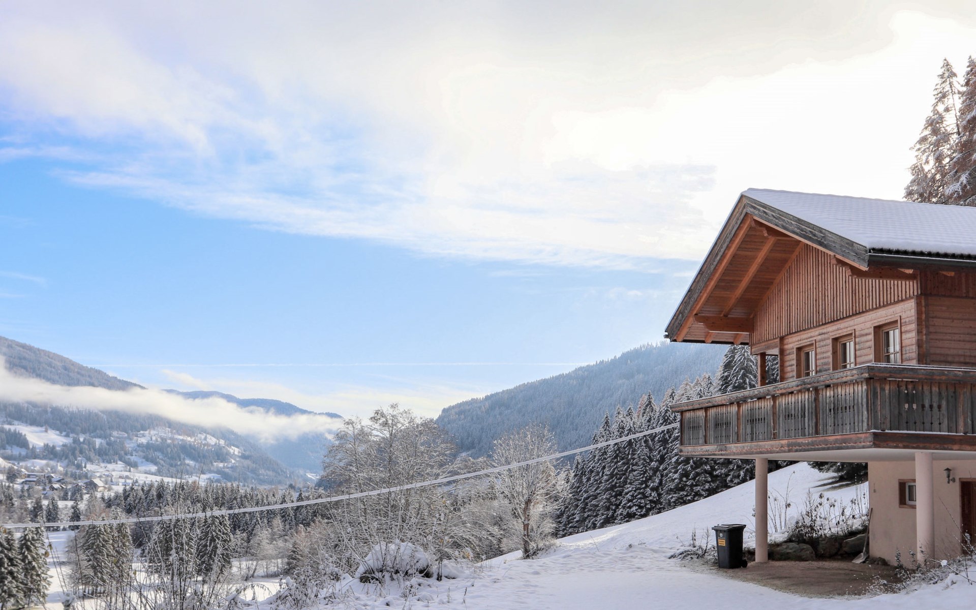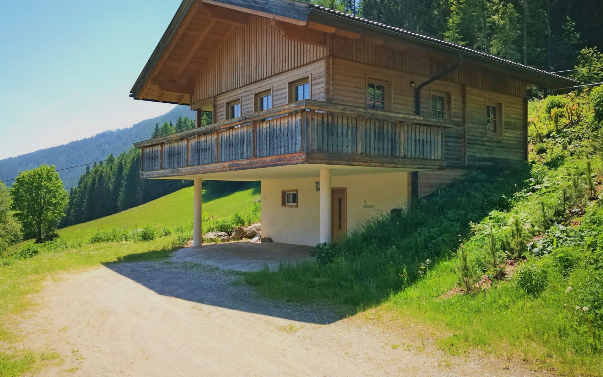 Wiedweg 2 km von Bad Kleinkirchheim: Chalet "Jupiter", auf 2 Stockwerken. Am Ortsrand, erhöhte Lage, am Golfplatz. Zur Alleinbenutzung: naturbelassenes Grundstück. Im Hause: Skiraum, Zentralheizung, Waschmaschine. Holprige Zufahrt (100 m Naturweg). Im Winter bitte Schneeketten mitbringen. Parkplatz (für 2 Autos, überdacht) beim Haus. Supermarkt 500 m, Restaurant 300 m, Bushaltestelle "Patergassen" 300 m, Bahnstation "Spittal an der Drau", Freibad 4 km, Hallenbad 4 km, Thermalbad 4 km. Golfplatz (18 Loch) 50 m, Tennis 4 km, Gondelbahn 4 km, Skischule 4 km, Langlaufloipe 100 m, Kinderspielplatz 4 km. Bekannte Skigebiete sind gut erreichbar: Bad Kleinkirchkeim - Sankt Oswald 4 km, Falkert 8 km, Turracher Höhe 15 km. Bekannte Seen in der Umgebung sind gut erreichbar: Millstättersee 18 km, Ossiacher See 20 km, Wörthersee 37 km. Wandergebiete: Nockberge. Bitte beachten: Fahrzeug empfohlen. Objekt geeignet für 6 Erwachsene.