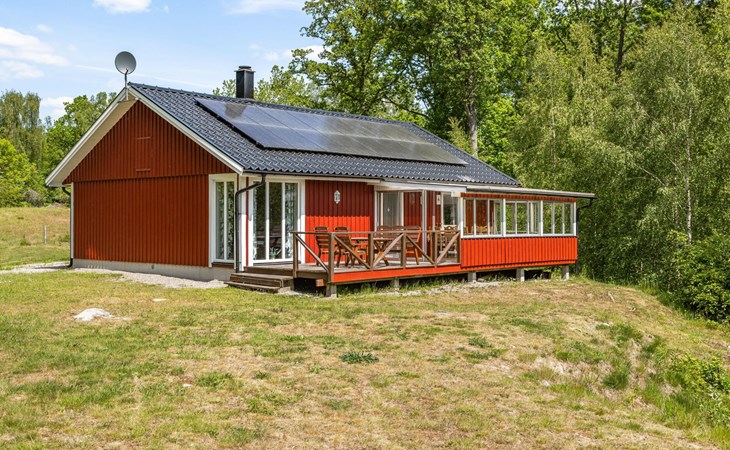 Haus "Erikstorp Fyran", umgeben von Bäumen und Wiesen. 10 km vom Zentrum von Olofström, 5 km vom Zentrum von Gränum, 10 km vom Zentrum von Mörrum, 200 m vom See. Zur Alleinbenutzung: naturbelassenes Grundstück 1'000 m2, Garten (nicht eingezäunt) mit Bäumen. Gartenmöbel, Grill. Zur Verfügung: Boot (extra). 300 m lange Zufahrt (Naturweg). Parkplatz (für 3 Autos) auf dem Grundstück. Supermarkt 10 km, Bushaltestelle 4.5 km, Bahnstation "Karlshamn" 28 km, Fähre "Helsingborg" 155 km, Sandstrand 1 km, Hallenbad 10 km. Golfplatz (18 Loch) 15 km. Bitte beachten: Tiere in der Umgebung. Ein Angelschein ist nicht erforderlich. Es darf nur der Bootsmotor genutzt werden, der als Zusatzleistung hinzugebucht werden kann.