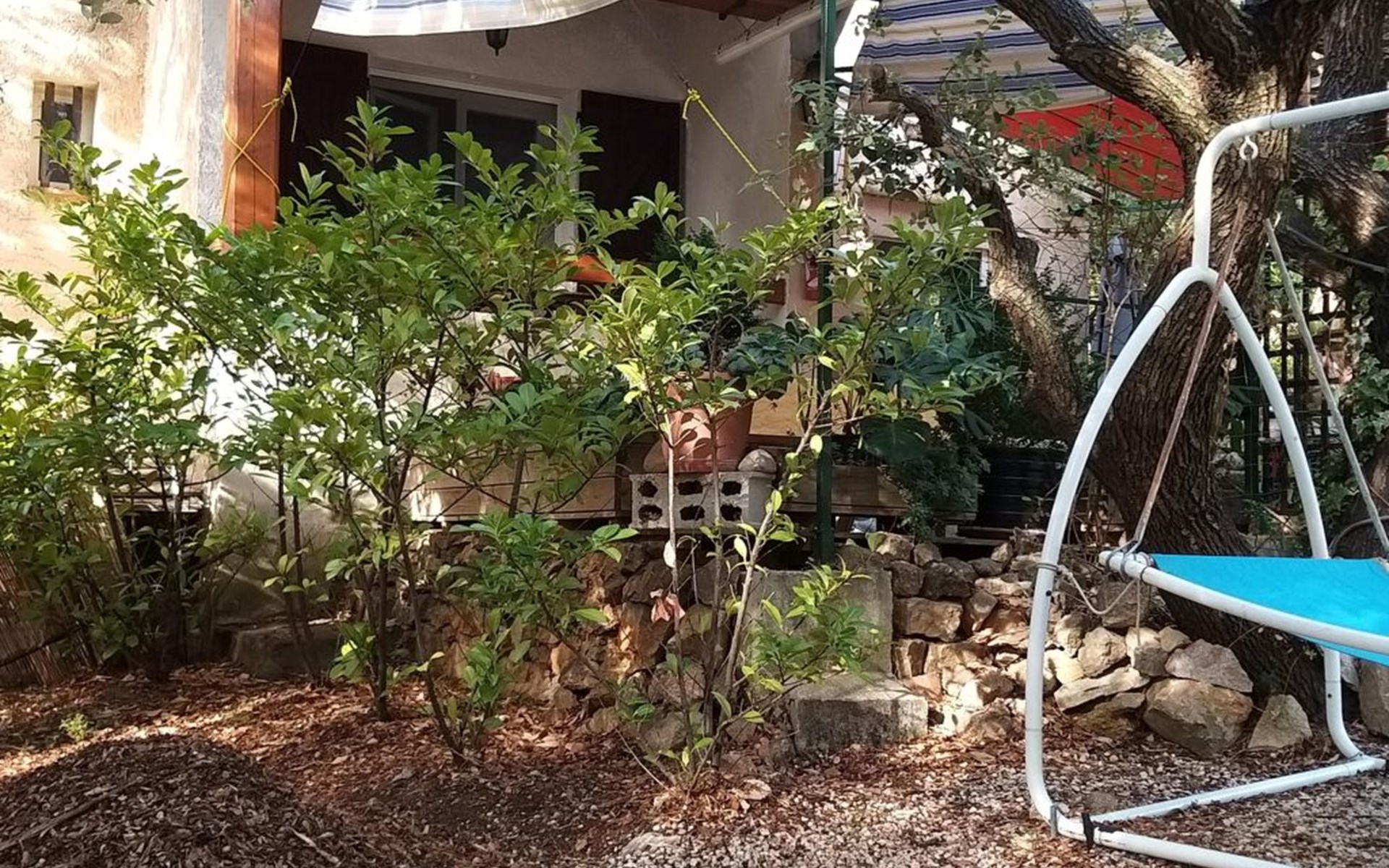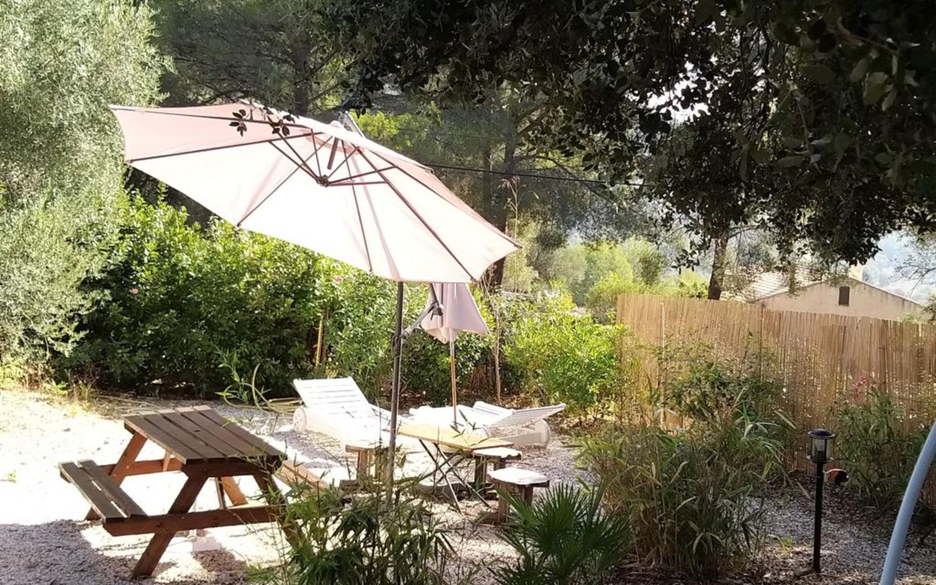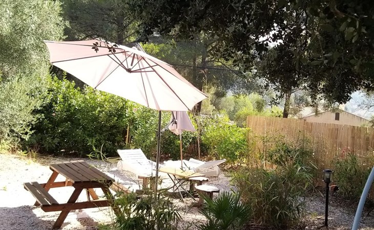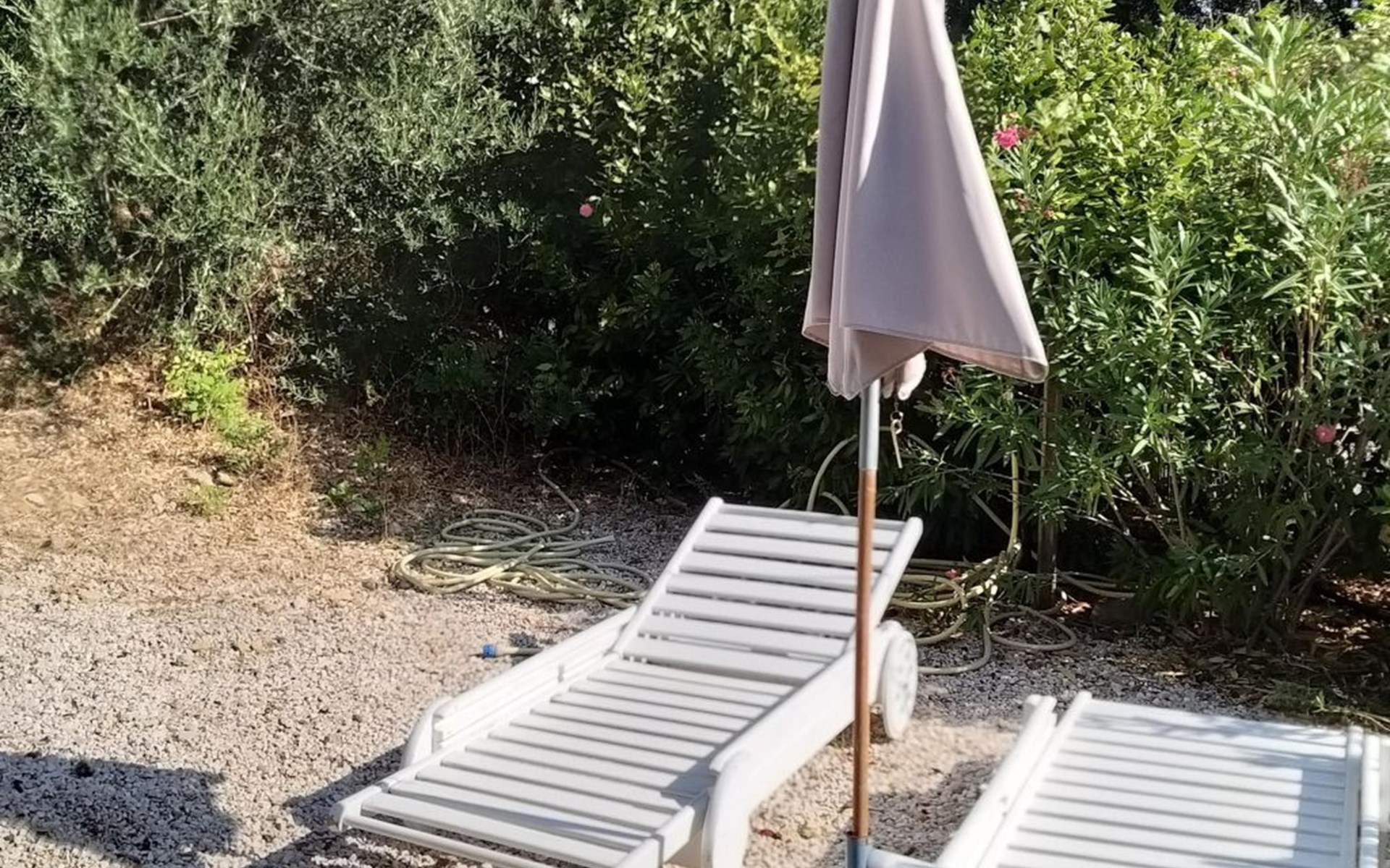 Zum Haus gehört eine Terrasse, die von Bäumen umgeben und daher schön schattig ist. Dort stehen Ihnen ein Grill, Liegestühle, Sitzmöbel und ein Sonnenschirm zur Verfügung. Ein abgeschlossener Parkplatz ist vorhanden. Das Haus liegt nur zwei Kilometer vom Meer und vom Sandstrand entfernt. 900 Meter sind es zum nächsten Supermarkt.