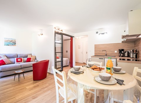 Residenz "Les Maldives". Im Ortsteil Richelieu, 2 km vom Zentrum, 100 m vom Meer, 100 m vom Strand. Einkaufsgeschäft, Lebensmittelgeschäft, Restaurant 50 m, Bushaltestelle "Pacifique" 270 m. Sporthafen 2 km, Golfplatz (27 Loch) 900 m. Nahe gelegene Sehenswürdigkeiten: Aqualand 800 m, Ile des loisirs 1.2 km. Bitte beachten: Das Foto ist nur ein Hausbeispiel.
