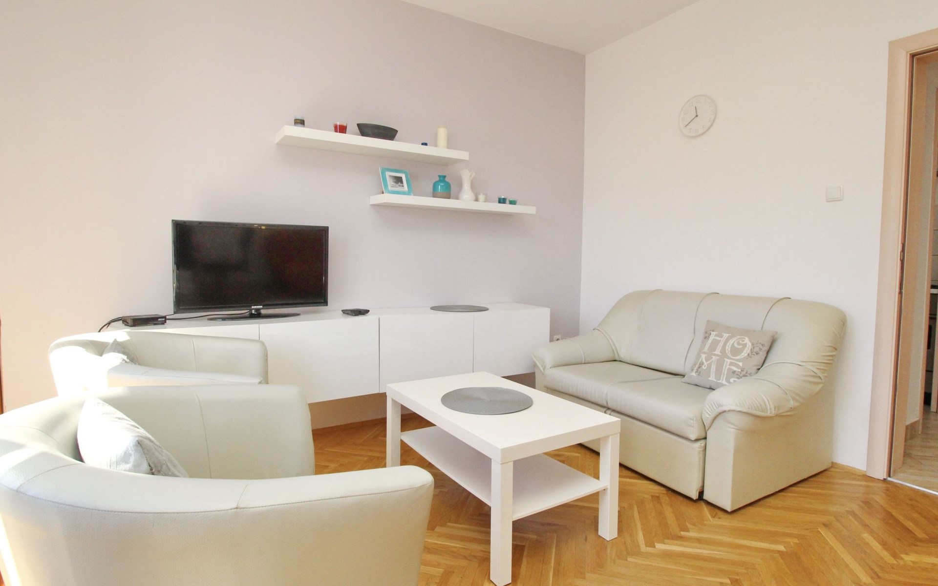 Der Außenbereich der Wohnung wird durch den privaten, 10 qm großen Balkon abgerundet. Hier können Sie mit Tisch und Stühlen ausgestattete, angenehme Stunden im Freien verbringen und die ruhige Atmosphäre genießen. Nicht zu vergessen ist der kostenlose Parkplatz, der Ihnen während Ihres Aufenthalts zur Verfügung steht, was in dieser beliebten Gegend ein besonderes Plus ist.