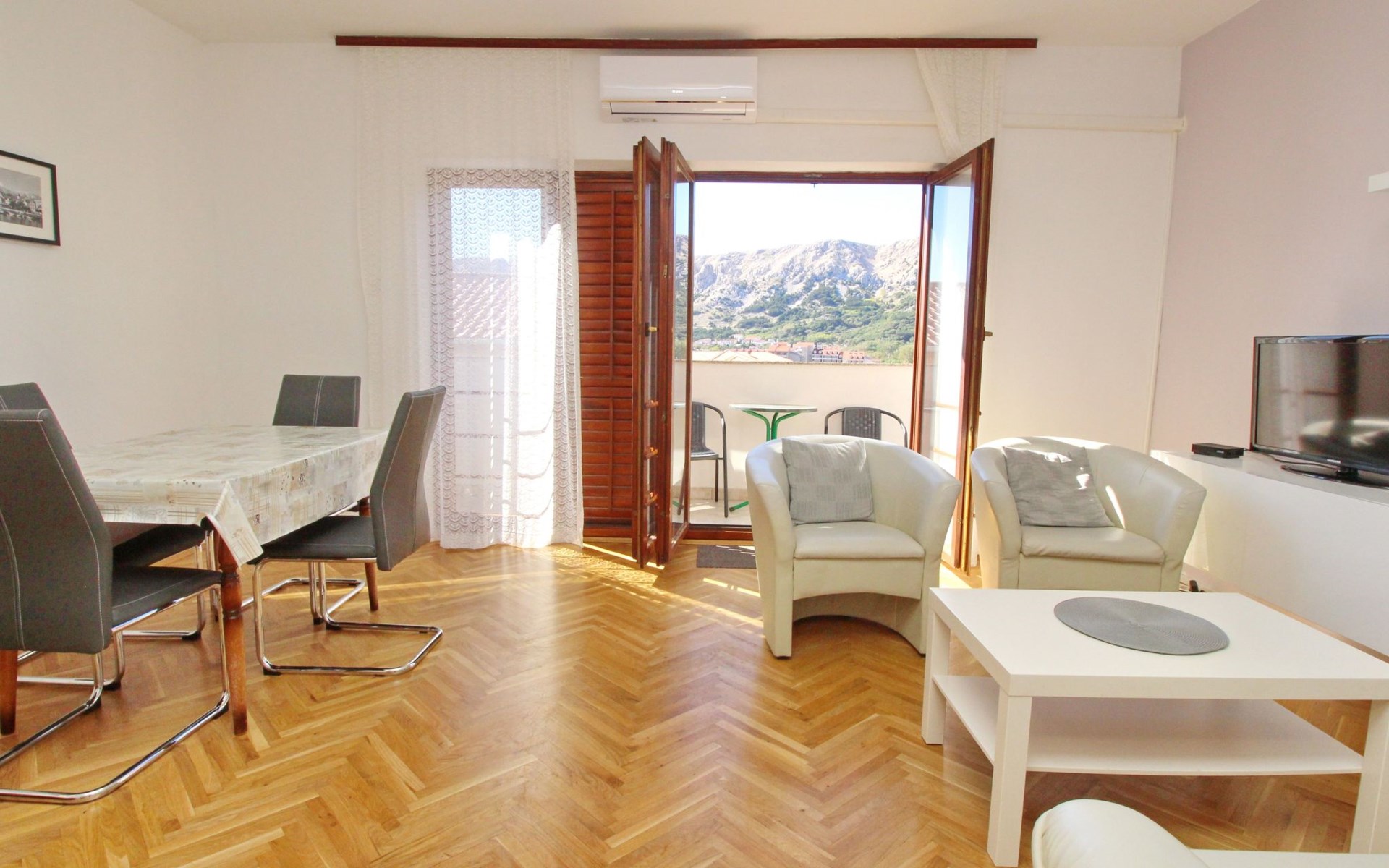 Die Lage der Wohnung bietet direkten Zugang zu allem, was Baška zu bieten hat. In nur 300m Entfernung erreichen Sie das kristallklare Meer und den wunderschönen Strand, während die nächste Ortsmitte mit ihren vielfältigen Einkaufs- und Essmöglichkeiten nur 200m entfernt ist. Für Hundebesitzer interessant: Ein spezieller Hundestrand befindet sich lediglich 2000m entfernt. Somit liegen sowohl Naturerlebnisse als auch kulturelle Highlights direkt vor Ihrer Haustür.