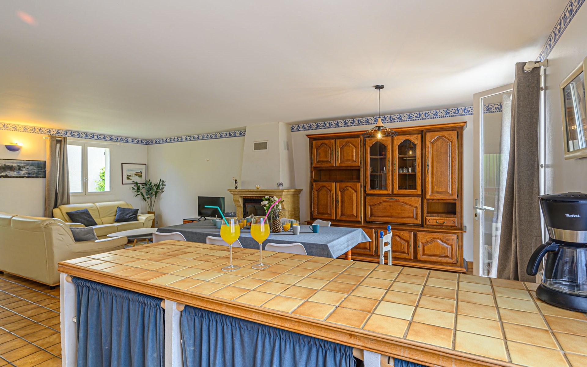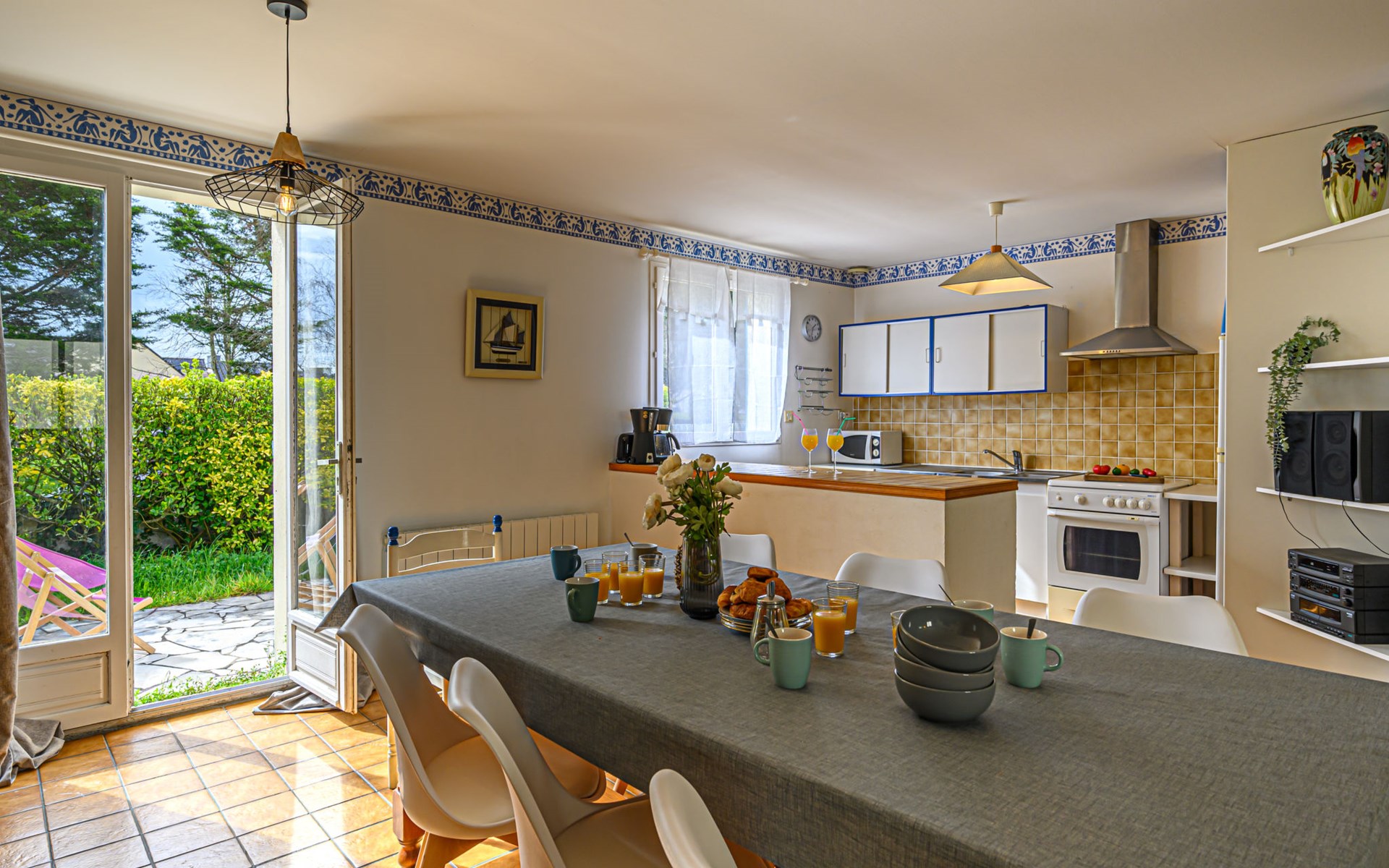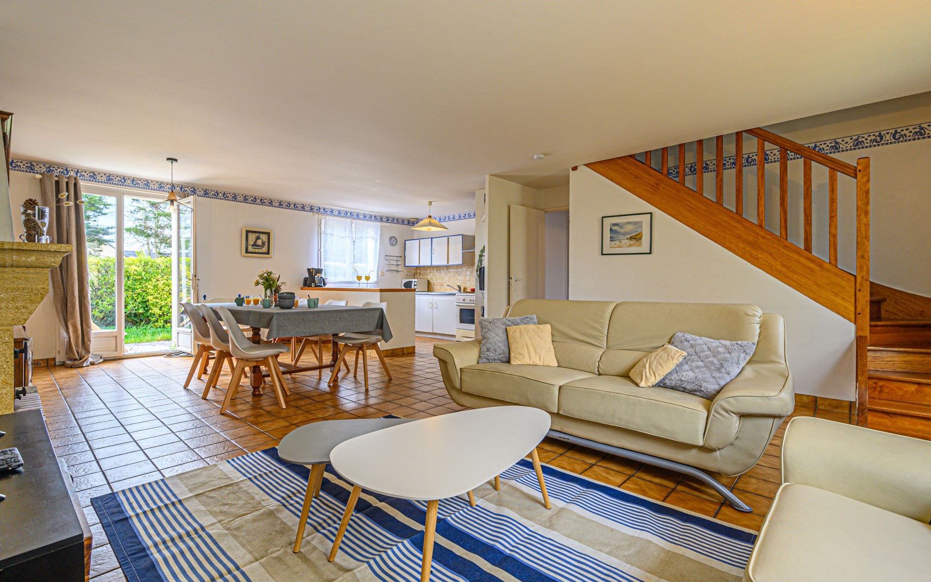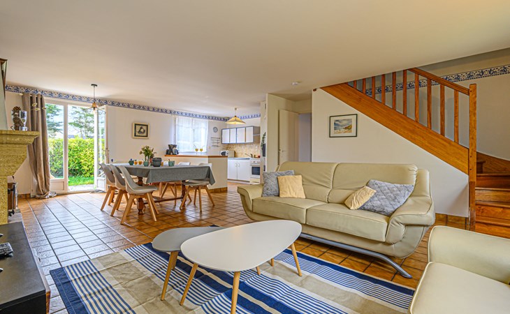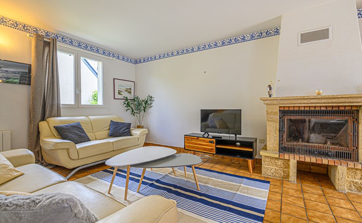 Einfamilienhaus "Le Large". Am Ortsrand, vom Meer, 800 m vom Strand. Zur Alleinbenutzung: Garten 300 m2 (eingezäunt), Parkplatz. Supermarkt 2 km, Restaurant 2 km, Bar 2 km, Bäckerei 2 km, Sandstrand "Men Er Bellec" 800 m. Sporthafen 5 km, Golfplatz (18 Loch) 15 km, Surfschule 7 km, Segelschule 2 km. Nahe gelegene Sehenswürdigkeiten: La Trinité sur Mer 5 km, Les Alignements de Carnac 12 km, Presqu'île de Quiberon 20 km, Vannes 25 km, Lorient 50 km. Wandergebiete: Golf du Morbihan 20 km.