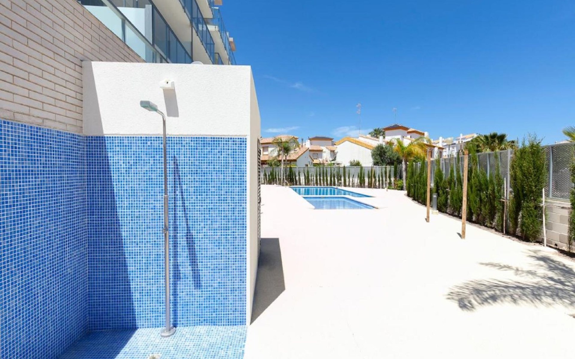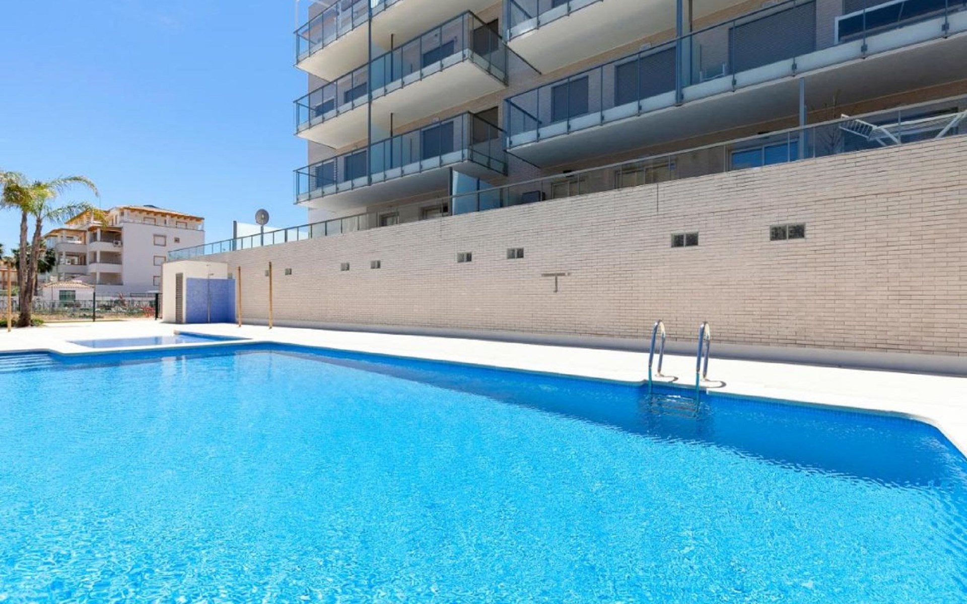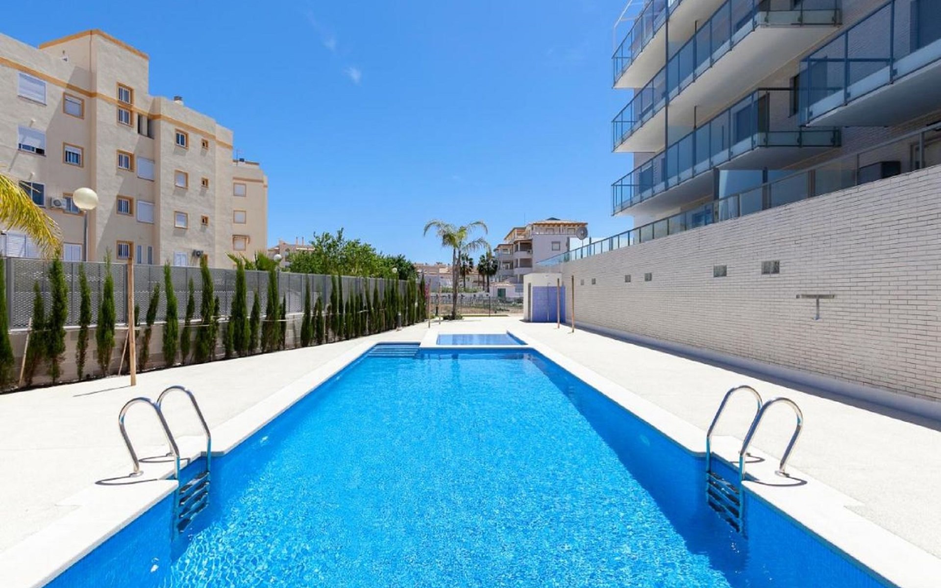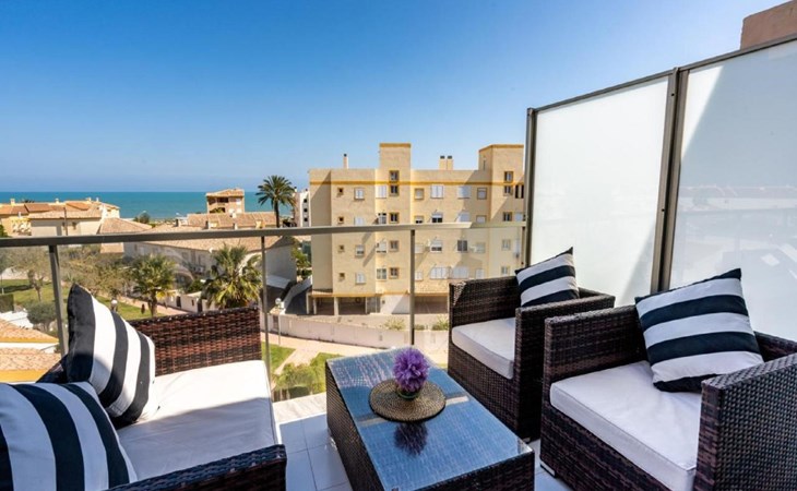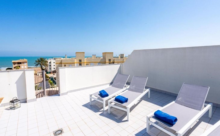 Sehr grosses, sehr modernes, sehr komfortables Appartementhaus "Dunas Plus Penthouse". Im Ort Oliva Nova, ruhige, sonnige Lage, vom Meer, 250 m vom Strand. Zur Mitbenutzung: Schwimmbad eckig (12 x 6 m, 80 - 210 cm tief, saisonale Verfügbarkeit: 01.Jan. - 31.Dez.) mit Innentreppe. Kinderbecken, Aussendusche. Zur Alleinbenutzung: Terrasse, Gartenmöbel. Im Hause: Fahrstuhl. Gemeinschaftsgarage. Supermarkt 350 m, Restaurant 210 m, Café 300 m, Bushaltestelle 1.7 km, Bahnstation 20 km, Fähre 20 km, Sandstrand "Platja La Devesa" 250 m. Golfplatz (18 Loch) 1.8 km, Surfschule, Tennis 400 m. Der Besitzer akzeptiert keine Jugendgruppen.