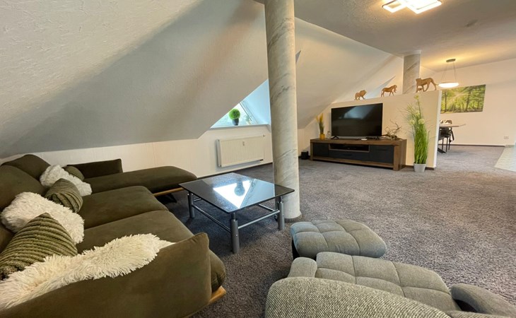 Sehr modernes, gemütliches Zweifamilienhaus, umgeben von Bäumen und Wiesen. Im Ortsteil Waldau, exzellente Lage: Absolut zentral und dennoch ruhig. Zur Alleinbenutzung: Liegewiese, wunderschöner Garten zum Entspannen, Schwimmbad nierenförmig, beheizt (6 x 4 m, saisonale Verfügbarkeit: 01.Mai. - 31.Mai.). Terrasse, Gartenmöbel, Grillhaus. Im Hause: Sauna (extra). Parkplatz. Einkaufsgeschäft 4 km, Supermarkt 4.8 km, Restaurant 7.3 km, Bäckerei 1 km, Café 9 km, Biergarten 800 m, Bushaltestelle "Am Sportplatz und Lärchenweg" 400 m, Park 1.3 km, See Bergsee Ratscher 4.4 km. Wanderwege ab Haus 200 m. Nahe gelegene Sehenswürdigkeiten: Naturhistorisches Museum 8.2 km, Gewürzmuseum Schönbrunn 4.5 km. Bekannte Skigebiete sind gut erreichbar: Erste Berg Masserberg 12 km. Bekannte Seen in der Umgebung sind gut erreichbar: Stausee Roth 28 km. Wandergebiete: Fehrenbacher Schweiz 11 km. Bitte beachten: Der Besitzer wohnt im selben Haus.