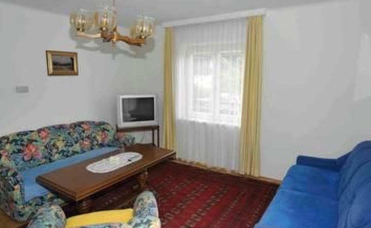 Die Ferienwohnung erstreckt sich über den 1. und 2. Stock und verfügt über eine komfortable Innenausstattung. Im 1. Stock finden Sie eine voll ausgestattete Wohnküche mit Herd, Backofen, Mikrowelle, Geschirrspüler und einer gemütlichen Essecke. Ein separates Schlafzimmer mit Doppelbett und großzügigem Kleiderschrank sowie die Möglichkeit, auf Anfrage ein Kinderbett bereitzustellen, versprechen angenehme Nachtruhe. Das Wohnzimmer bietet zudem ein ausziehbares Doppelsofa und TV, während das Badezimmer mit WC komplett ausgestattet ist. Das Highlight des 1. Stocks ist der große Balkon, der eine atemberaubende Aussicht auf die umliegenden Berge bietet. Im 2. Stock erwartet Sie ein charmantes Dreibettzimmer mit Balkon, ausgestattet mit einem Doppelbett und einem kleineren Einzelbett für Jugendliche oder Kinder, sowie ein WC mit kleinem Waschbecken. Gratis WLAN ist selbstverständlich vorhanden.