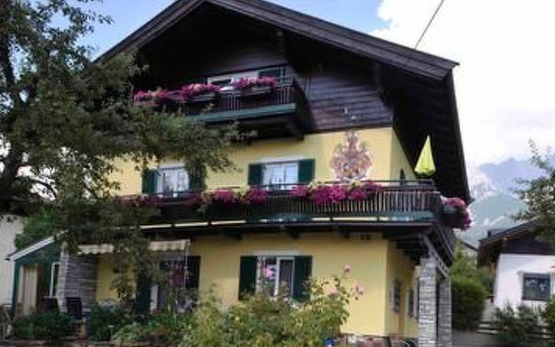 Der Außenbereich des Hauses Schmiderer lädt dazu ein, die malerische Landschaft und die frische Bergluft in vollen Zügen zu genießen. Der großzügige Balkon bietet einen unvergleichlichen Blick auf die umliegende Bergwelt.