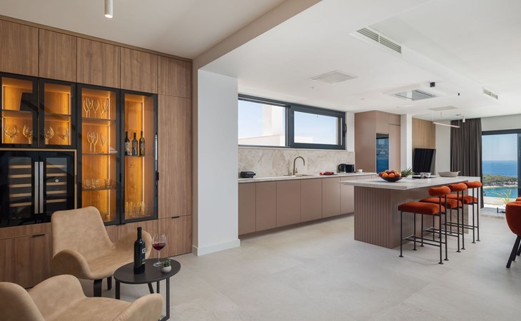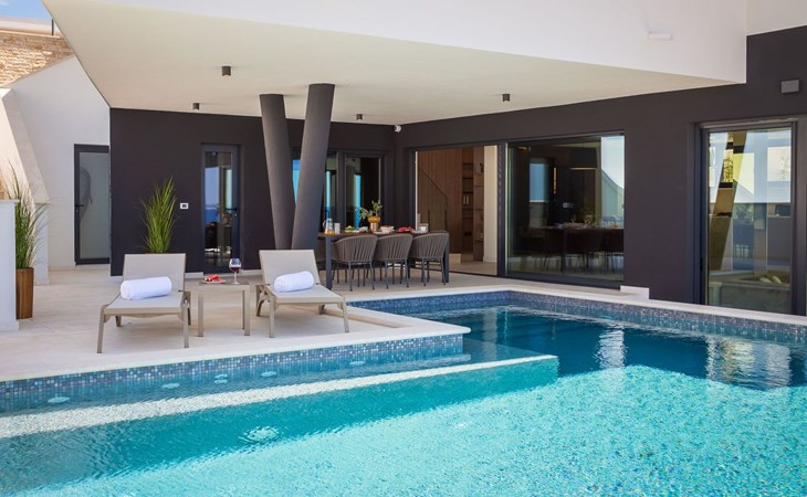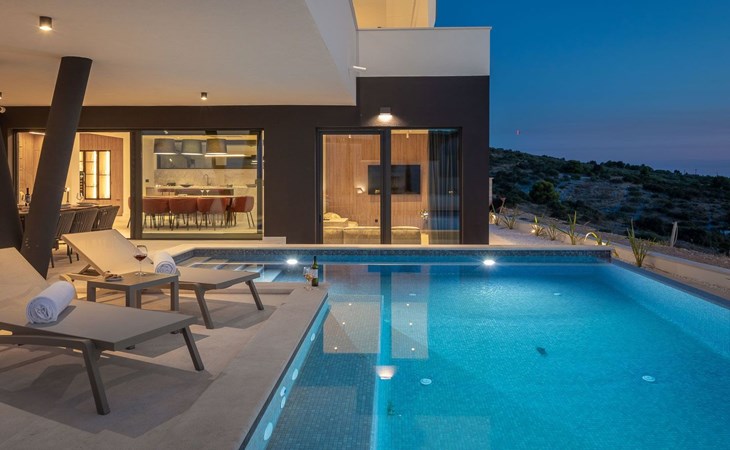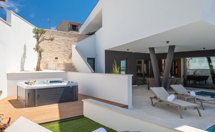 Die Lage der Villa ist ein Tor zu den bezaubernden Landschaften Dalmatiens, der Strand ist nur 300 Meter entfernt und lädt zu morgendlichen Spaziergängen oder faulen Tagen am Meer ein. Das nächstgelegene Stadtzentrum, das 4000 Meter von der Villa entfernt ist, bietet einen Einblick in das lokale Leben, mit verschiedenen Geschäften und Restaurants. Für den täglichen Bedarf gibt es in 4000 m Entfernung ein Lebensmittelgeschäft, das Ihren Aufenthalt noch angenehmer macht.