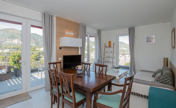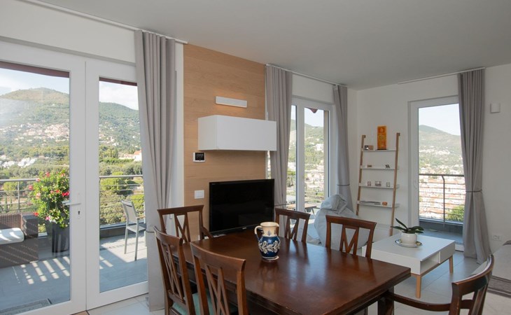 Das Schmuckstück von Luce di Mare ist zweifelsohne die große Terrasse mit Blick auf das Meer. Dieser sorgfältig mit Tisch und Stühlen ausgestattete Außenbereich bietet den idealen Rahmen, um sich in der kühlen Meeresbrise zu entspannen oder Mahlzeiten im Freien zu genießen, während man eine atemberaubende Aussicht genießt. Das natürliche Licht, das die Räume durchflutet, unterstreicht die gemütliche Atmosphäre der Wohnung und macht sie zu jeder Tageszeit zu einem idealen Ort zum Verweilen.