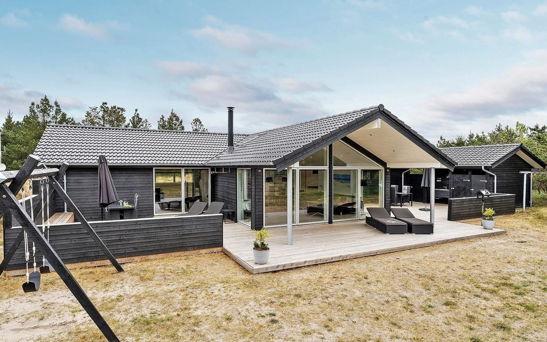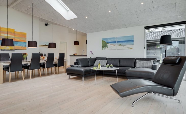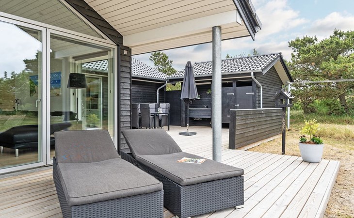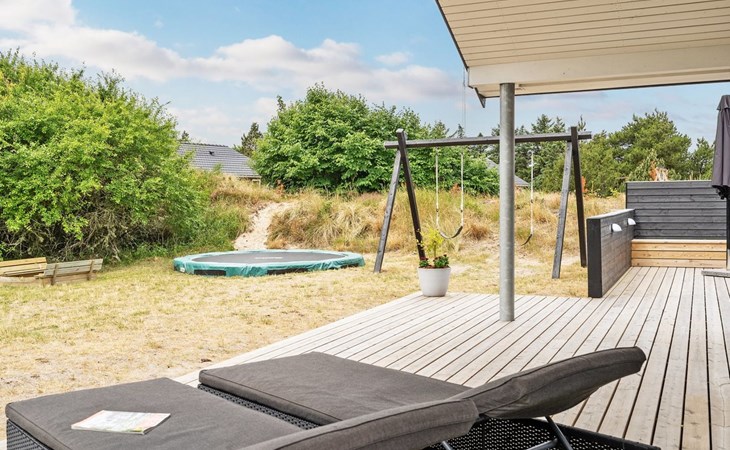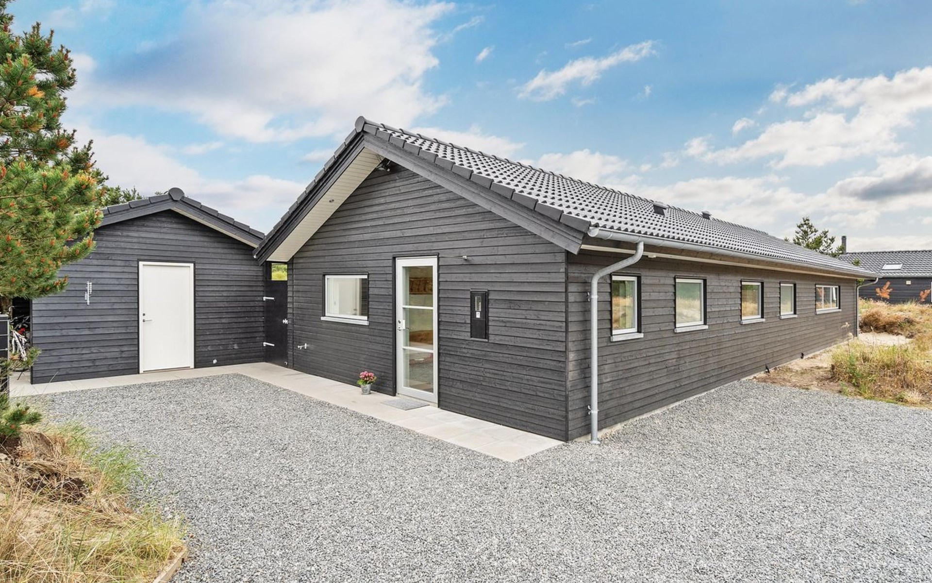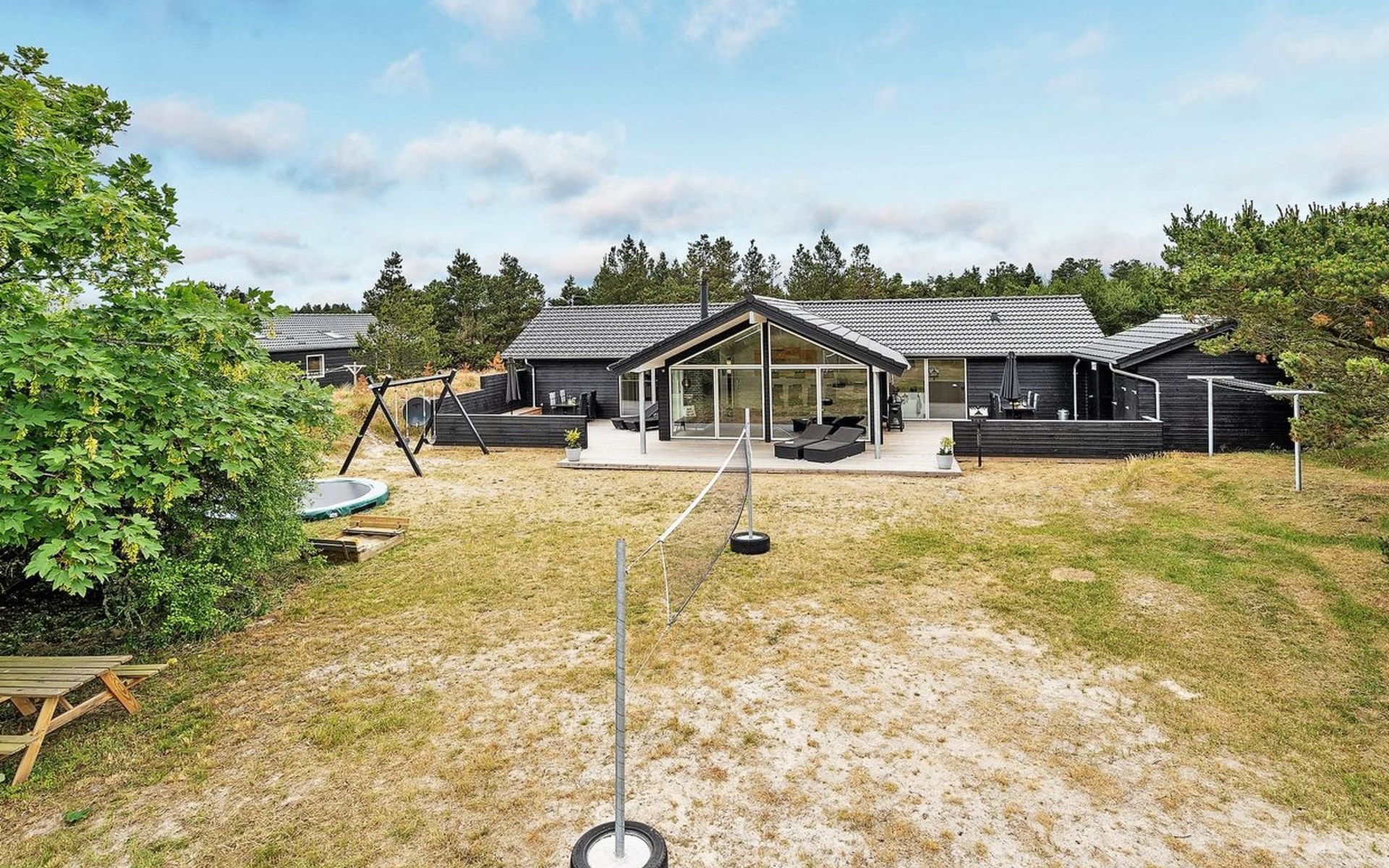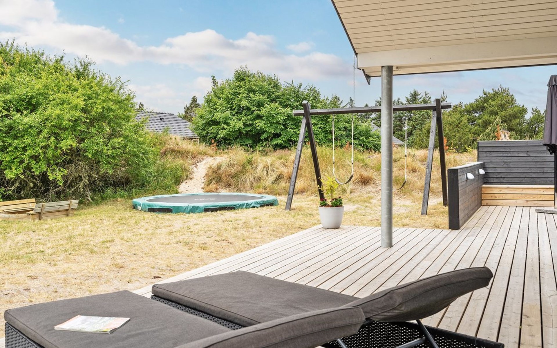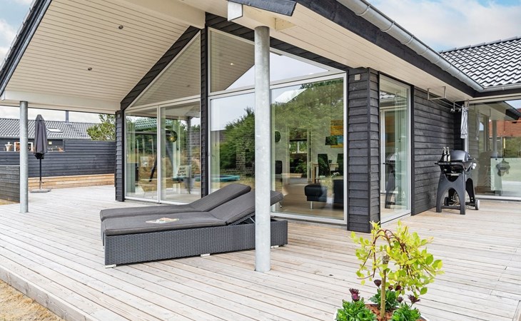Einfamilienhaus, Baujahr 2018. 900 m vom Meer. Zur Alleinbenutzung: naturbelassenes Grundstück 1'955 m2. Aussendusche, Terrasse (110 m2), Grill, Kinderspielplatz (Schaukel). Im Hause: Sauna, Trampolin, Waschmaschine, Wäschetrockner. Parkplatz beim Haus. E-Ladestation. Lebensmittelgeschäft 1.5 km. Der Besitzer akzeptiert keine Jugendgruppen.