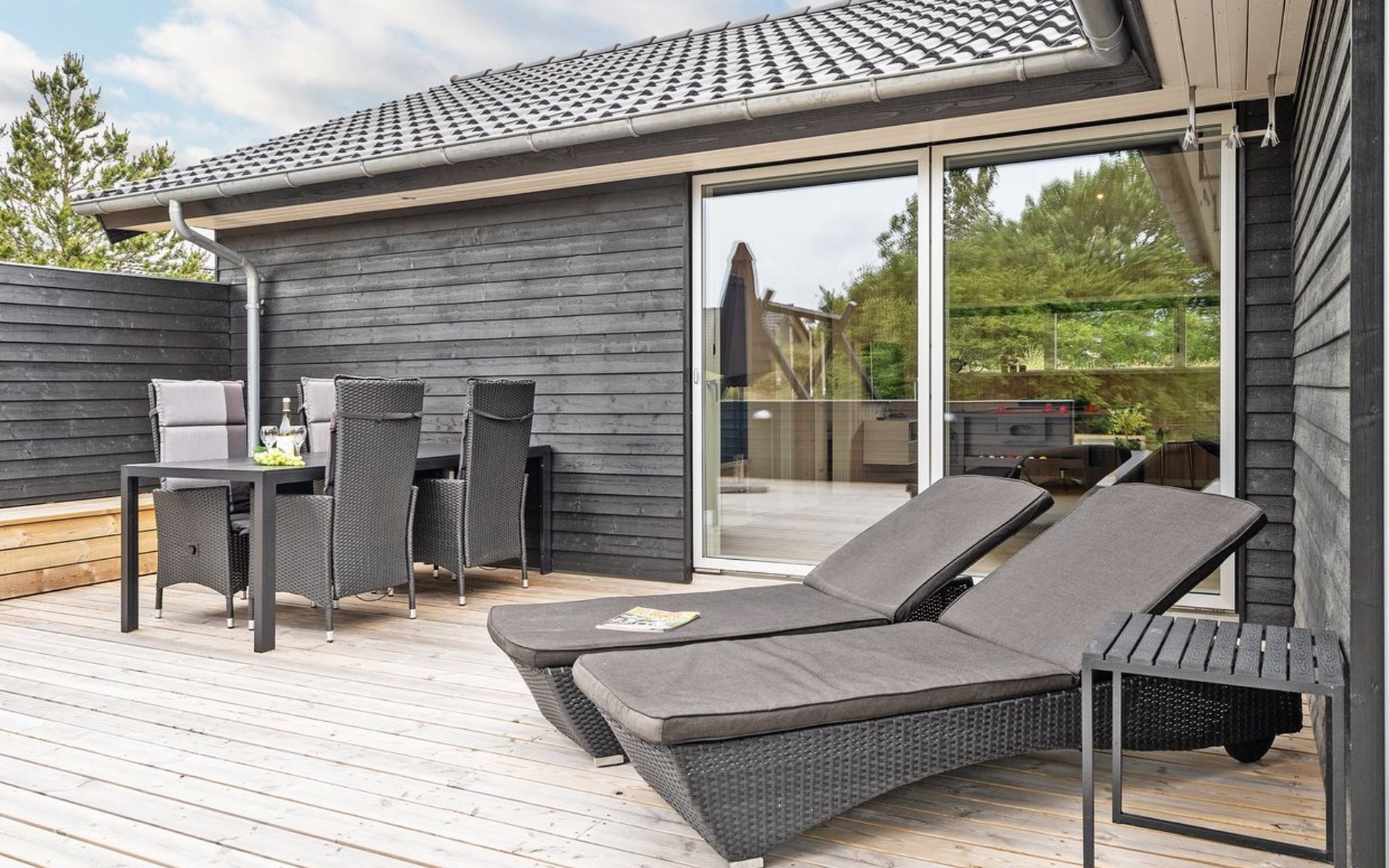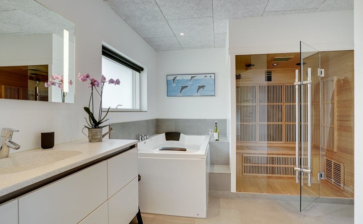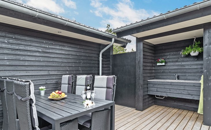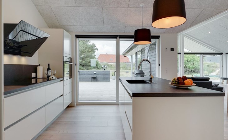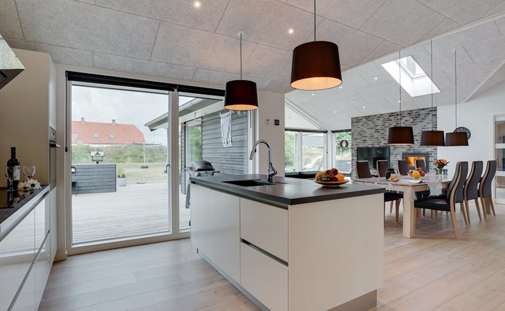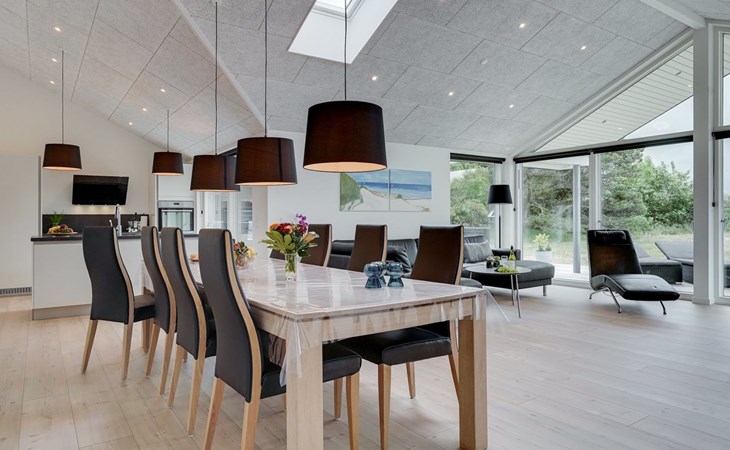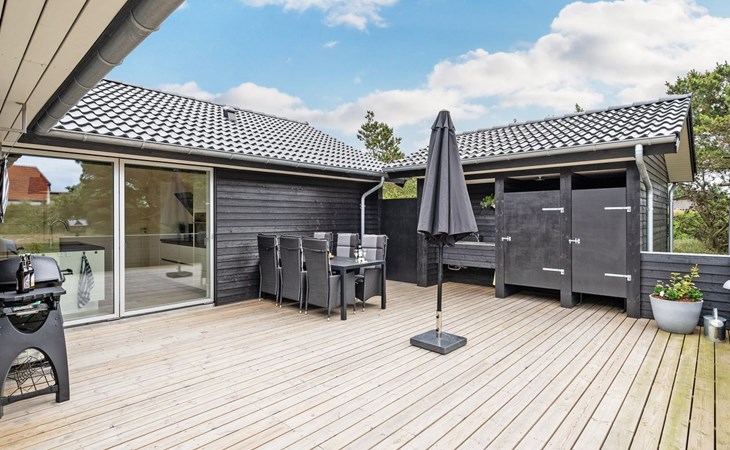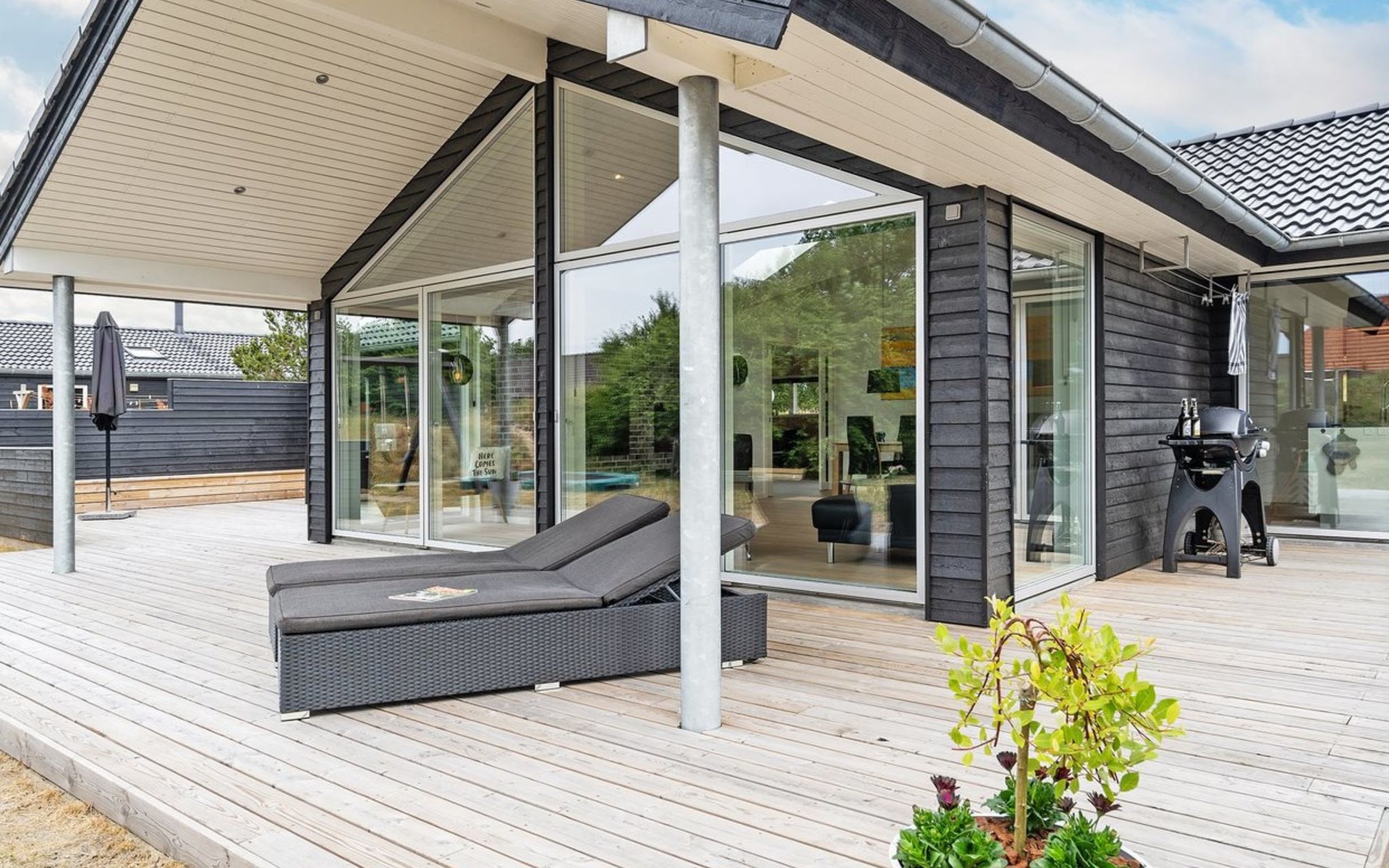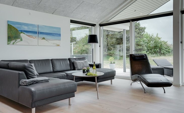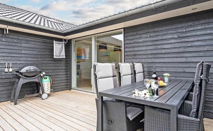 Einfamilienhaus, Baujahr 2018. 900 m vom Meer. Zur Alleinbenutzung: naturbelassenes Grundstück 1'955 m2. Aussendusche, Terrasse (110 m2), Grill, Kinderspielplatz (Schaukel). Im Hause: Sauna, Trampolin, Waschmaschine, Wäschetrockner. Parkplatz beim Haus. E-Ladestation. Lebensmittelgeschäft 1.5 km. Der Besitzer akzeptiert keine Jugendgruppen.