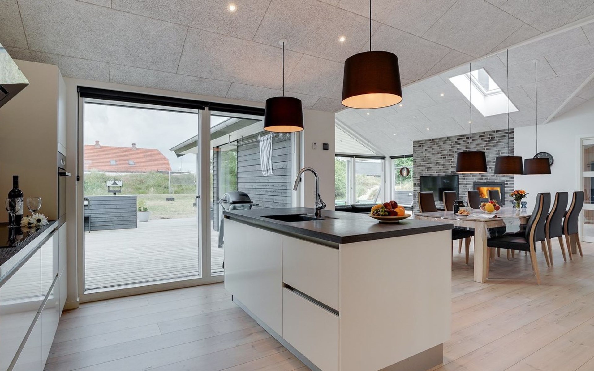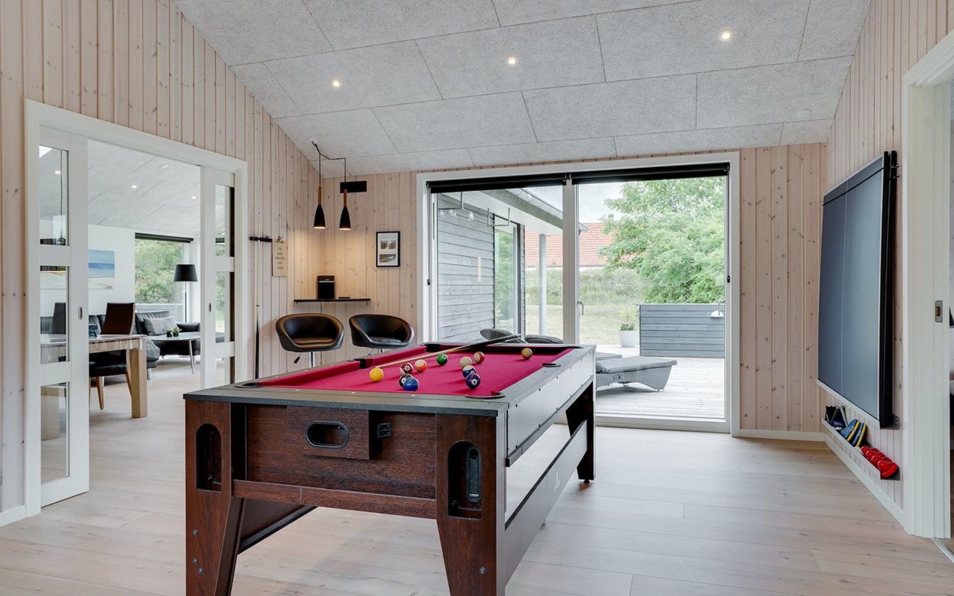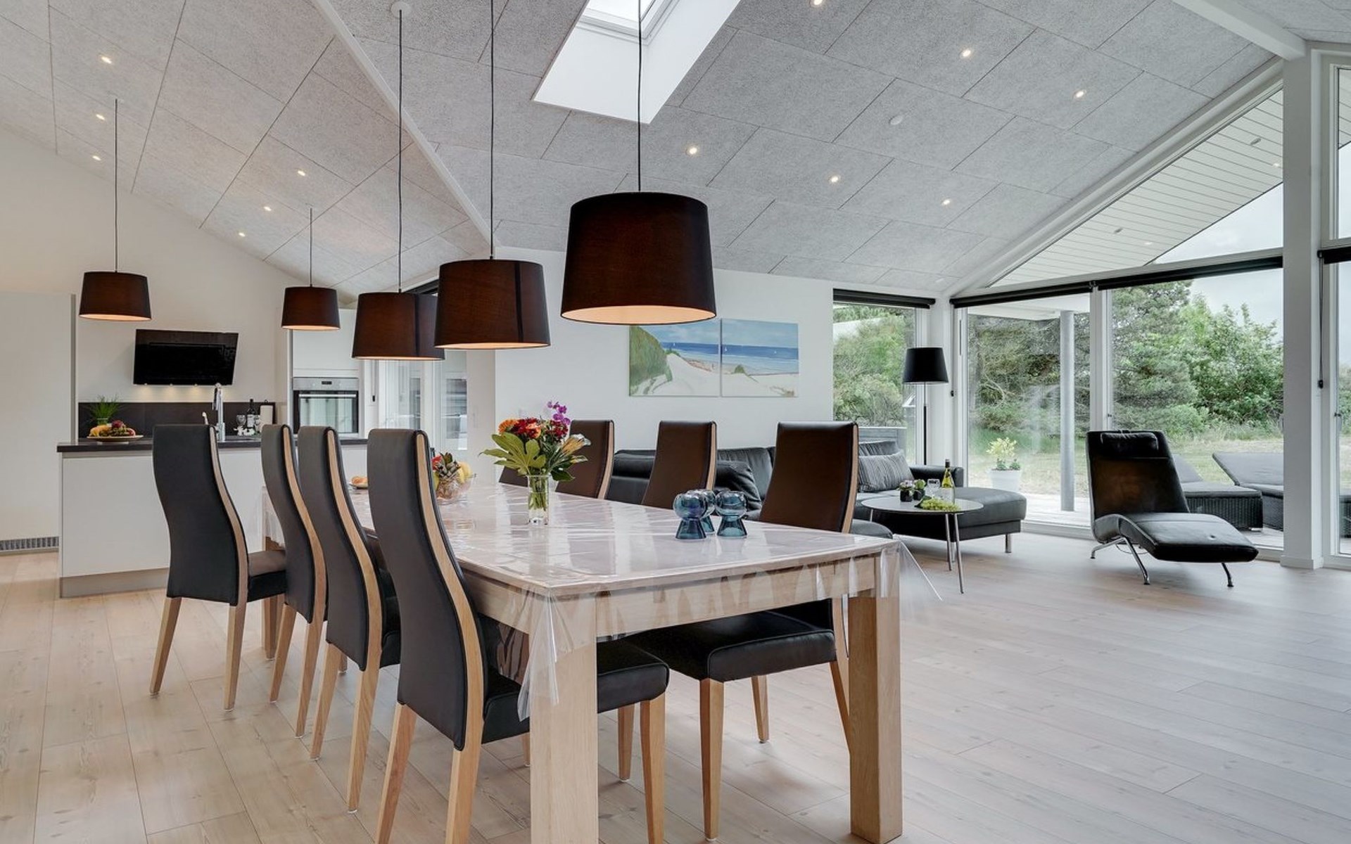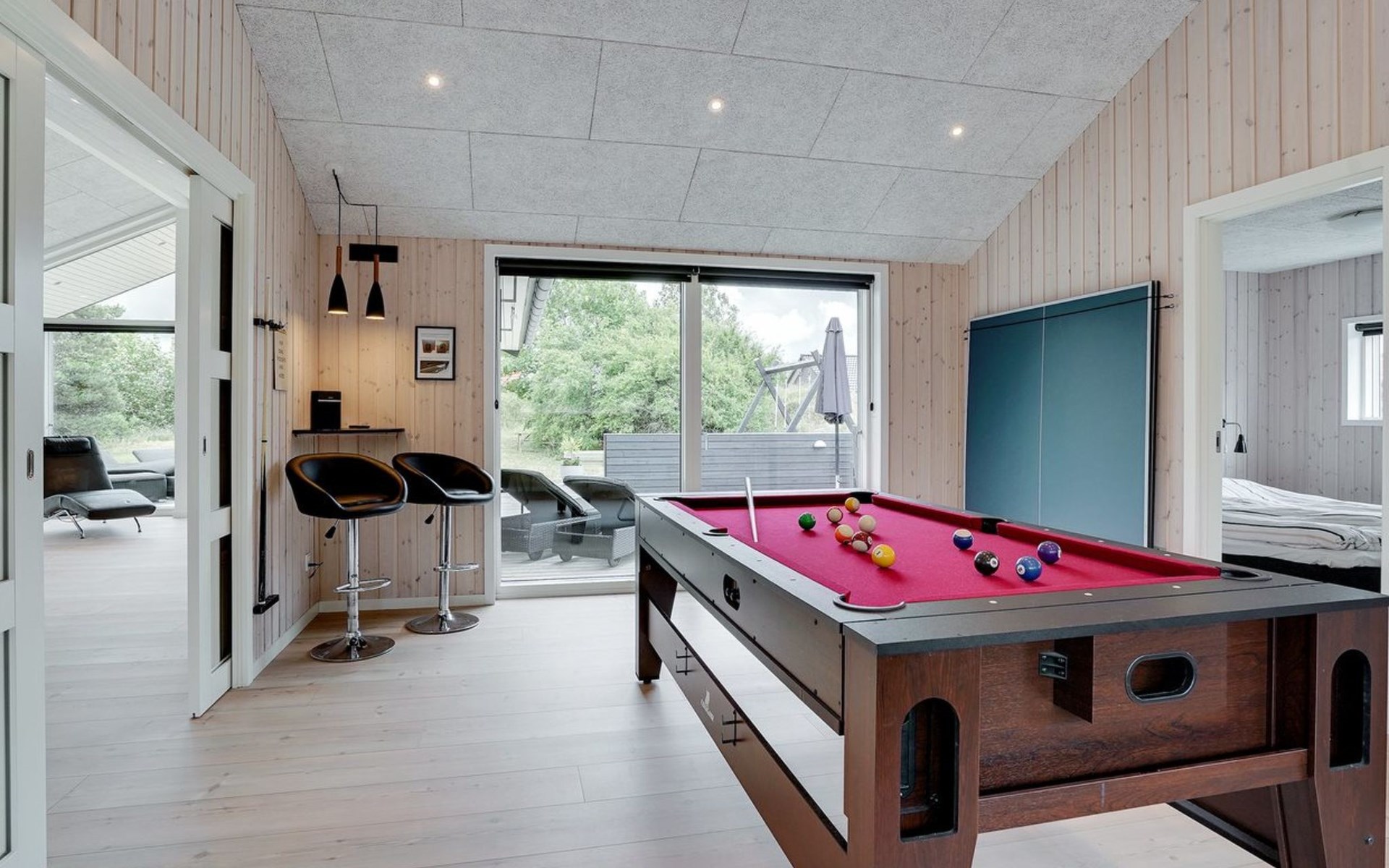 Einfamilienhaus, Baujahr 2018. 900 m vom Meer. Zur Alleinbenutzung: naturbelassenes Grundstück 1'955 m2. Aussendusche, Terrasse (110 m2), Grill, Kinderspielplatz (Schaukel). Im Hause: Sauna, Trampolin, Waschmaschine, Wäschetrockner. Parkplatz beim Haus. E-Ladestation. Lebensmittelgeschäft 1.5 km. Der Besitzer akzeptiert keine Jugendgruppen.