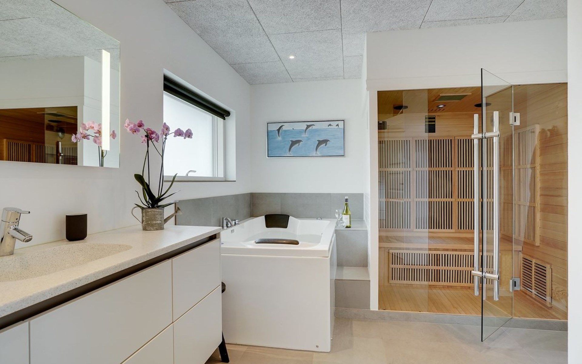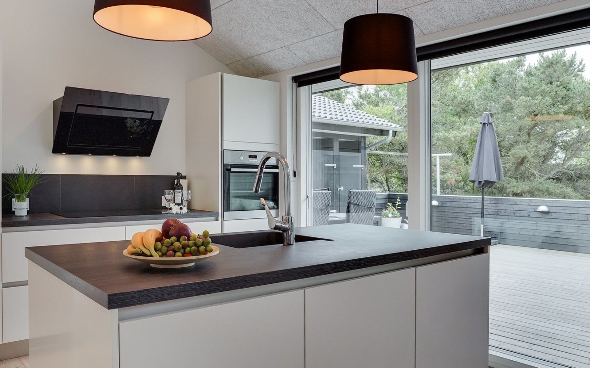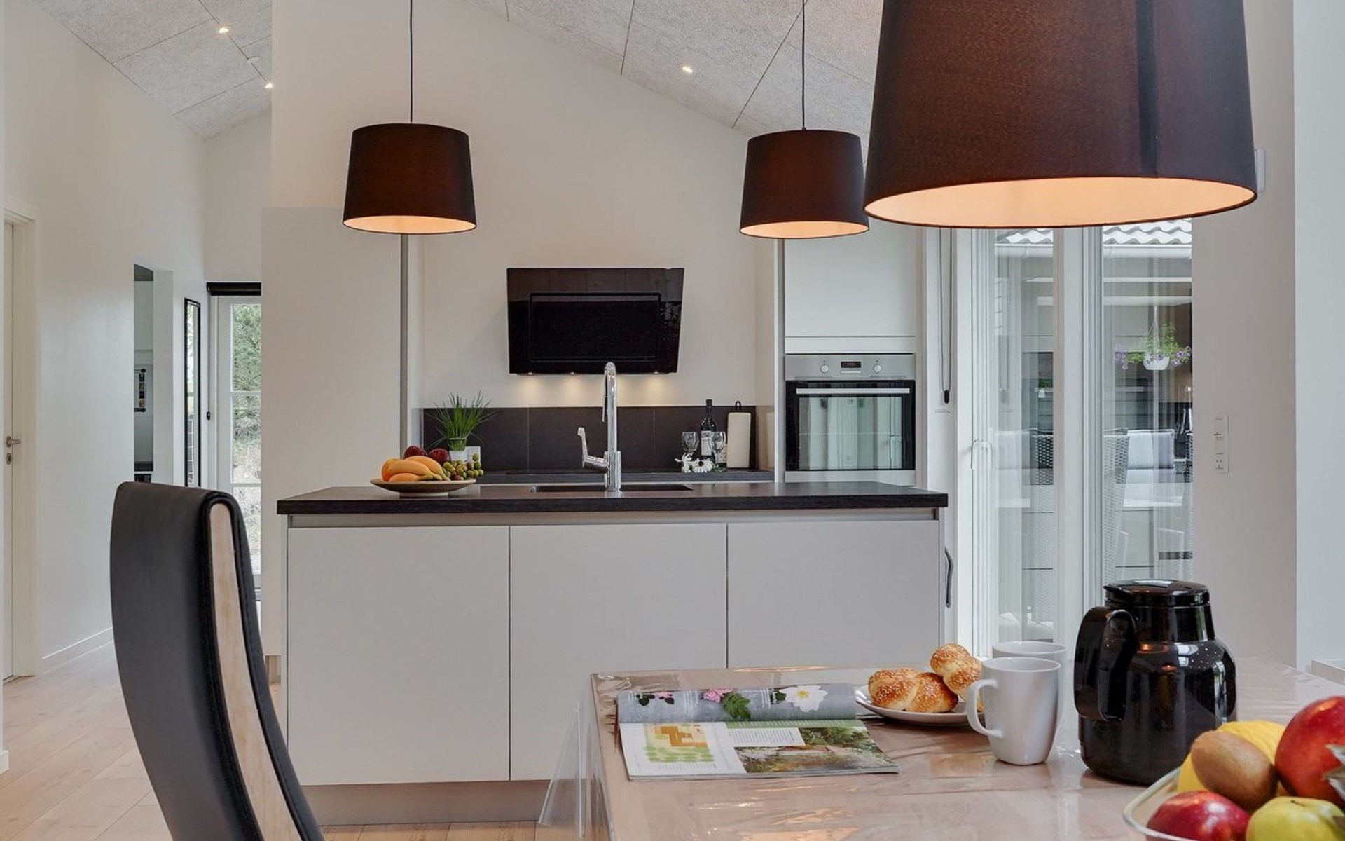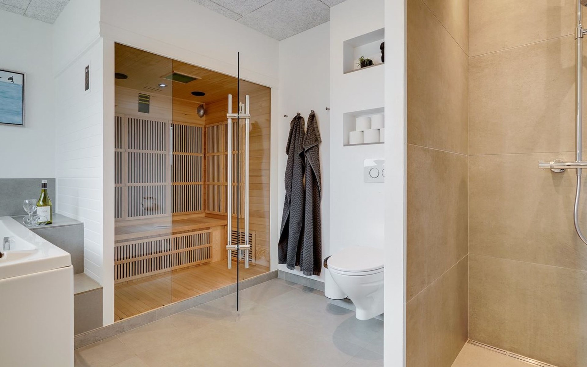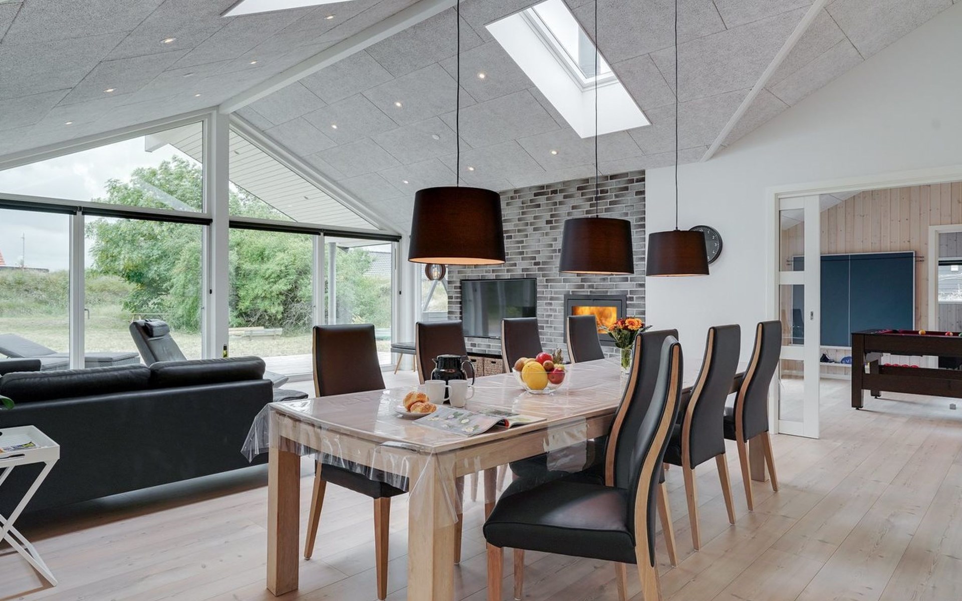 Einfamilienhaus, Baujahr 2018. 900 m vom Meer. Zur Alleinbenutzung: naturbelassenes Grundstück 1'955 m2. Aussendusche, Terrasse (110 m2), Grill, Kinderspielplatz (Schaukel). Im Hause: Sauna, Trampolin, Waschmaschine, Wäschetrockner. Parkplatz beim Haus. E-Ladestation. Lebensmittelgeschäft 1.5 km. Der Besitzer akzeptiert keine Jugendgruppen.