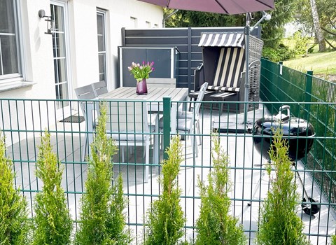 Außenbereich: Vom Wohnzimmer aus gehen Sie direkt auf die große Terrasse , die ideal zum Sonnenbaden, Relaxen oder nur ein Buch lesen ist. Sie ist mit Terrassenmöbeln sowie Grill ausgestattet. Es steht ein Carportstellplatz zur Verfügung. Weitere Pkw-Stellplätze sind vorhanden. Besonderes: Die Wohnung ist mit Kinderbett und Kinderstuhl verfügbar. Strom, Wasser und Bettwäsche sind inklusive. Ferienwohnung Anna ist ganzjährig mietbar.