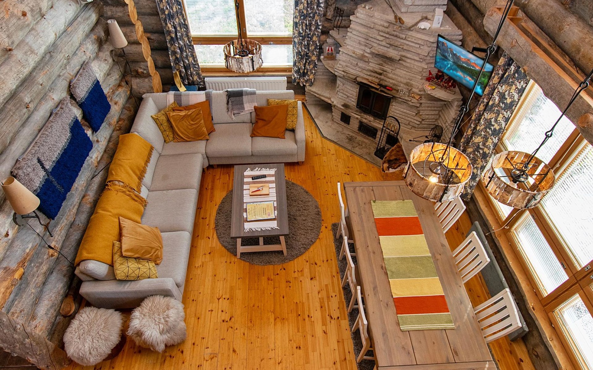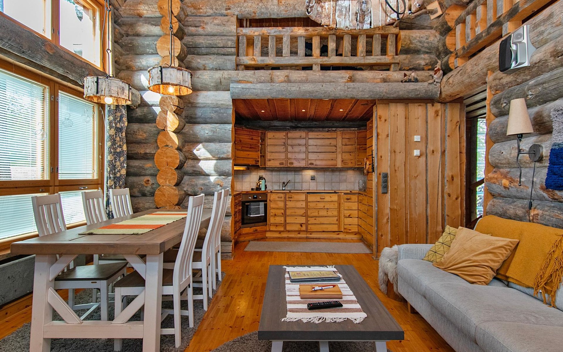 The kitchenette is equipped with its own cooking station, allowing possibilty to prepare delicious meals in ease. In the lounge area, one can dine and socialise while enjoying the warmth of the fireplace.