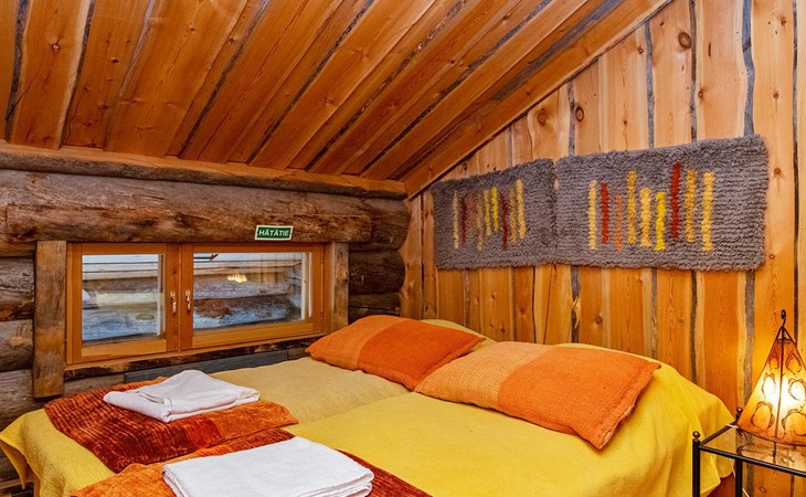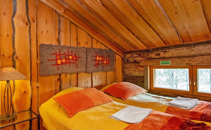 Upstairs there are also two bedrooms with two beds in each room, and a sleeping loft with a 120 cm x 190 cm double bed.