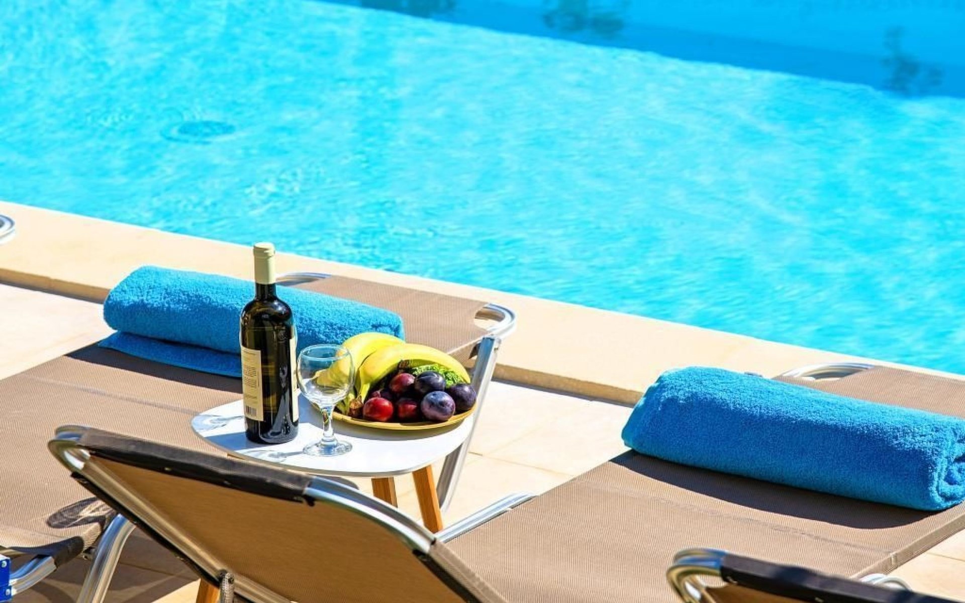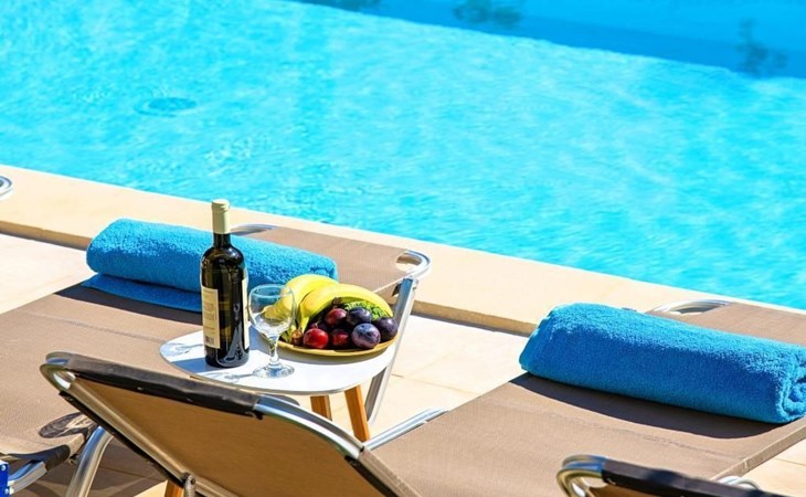 Der Außenpool ist beheizt und kann 6 bis 8 Grad mehr als die durchschnittliche 24-Stunden-Lufttemperatur erreichen, mit einem Höchstwert von 29°C.