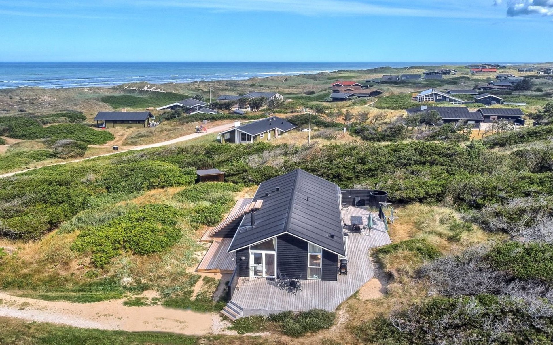 Einfamilienhaus, Baujahr 2016. 200 m vom Meer. Zur Alleinbenutzung: naturbelassenes Grundstück 3'899 m2. Aussendusche, Terrasse (100 m2). Im Hause: Waschmaschine, Wäschetrockner. Parkplatz beim Haus. Lebensmittelgeschäft 450 m. Der Besitzer akzeptiert keine Jugendgruppen.