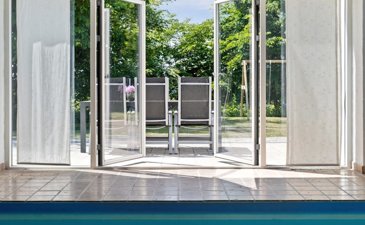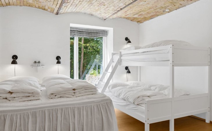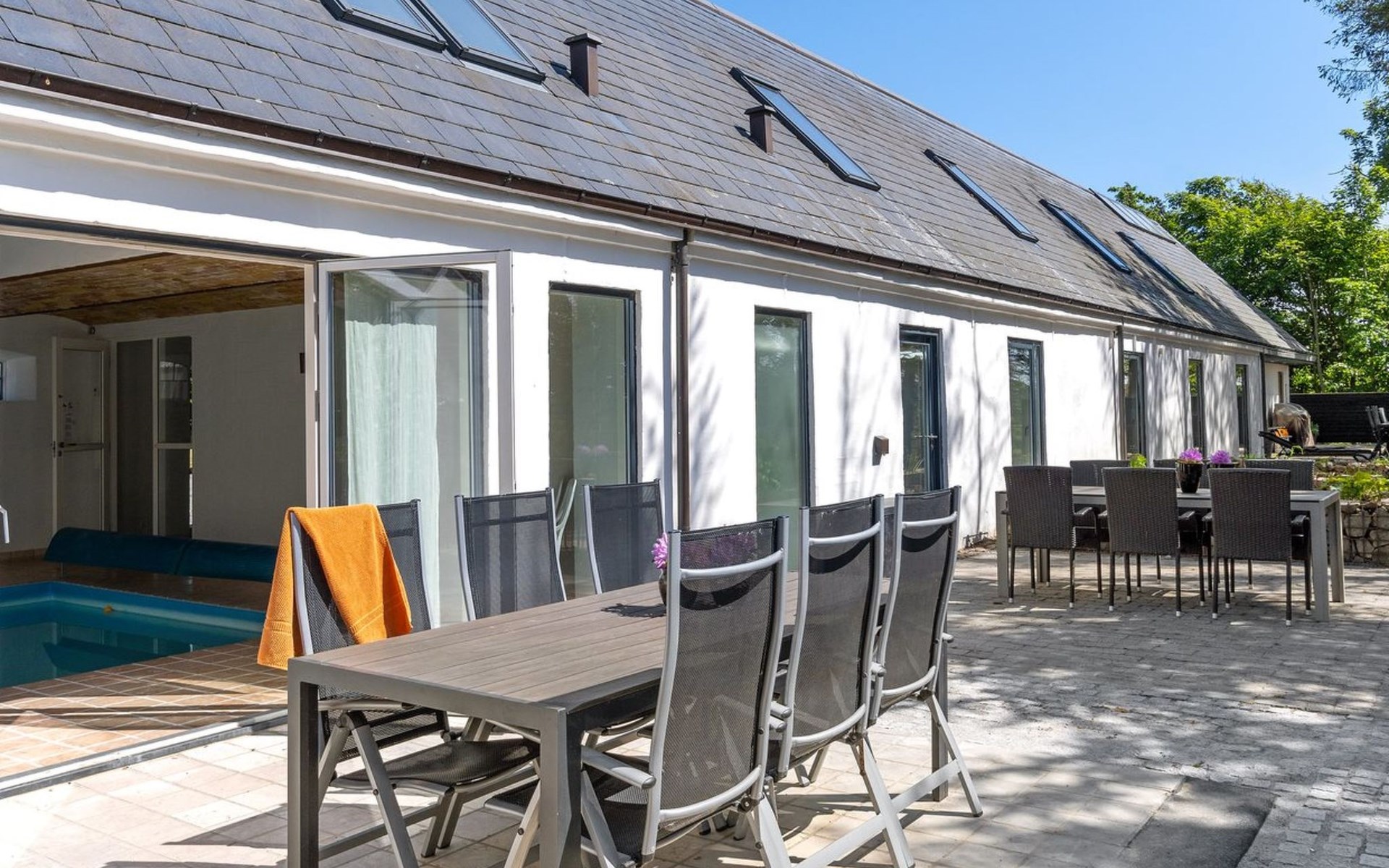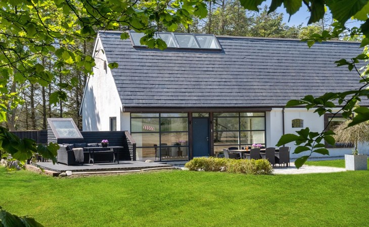 Einfamilienhaus, Baujahr 1777. 2.3 km vom Meer. Zur Alleinbenutzung: naturbelassenes Grundstück 15'000 m2, Hallenbad (4 x 7 m, 28 m2, 150 - 150 cm tief). Aussendusche, Grill, Kinderspielplatz (Rutschbahn, Schaukel). Im Hause: Sauna, Waschmaschine, Wäschetrockner. Parkplatz beim Haus. E-Ladestation. Lebensmittelgeschäft 1.2 km. Der Besitzer akzeptiert keine Jugendgruppen.