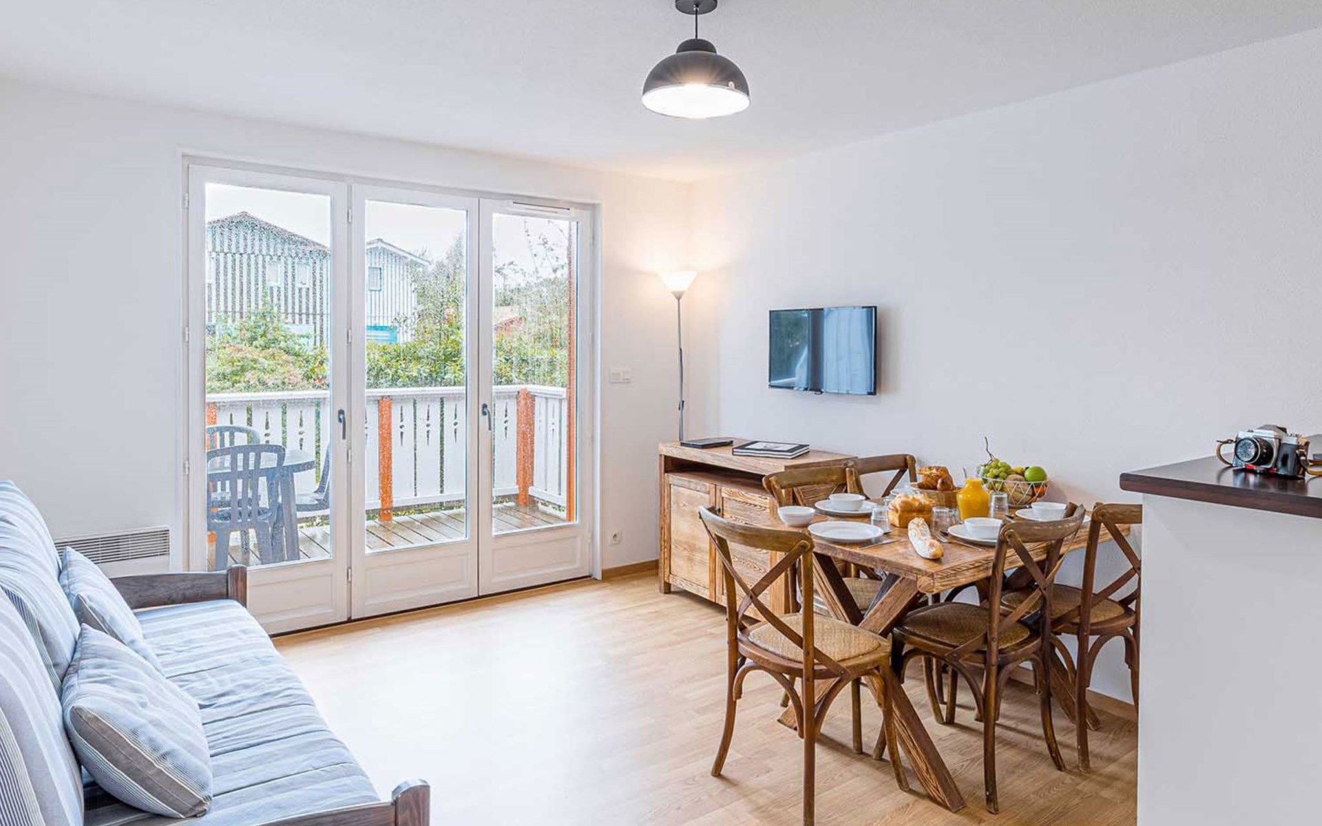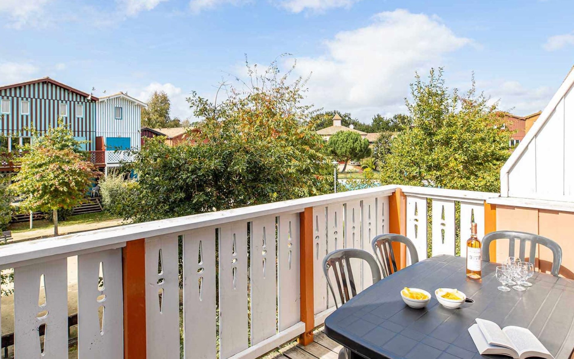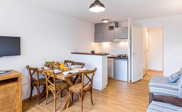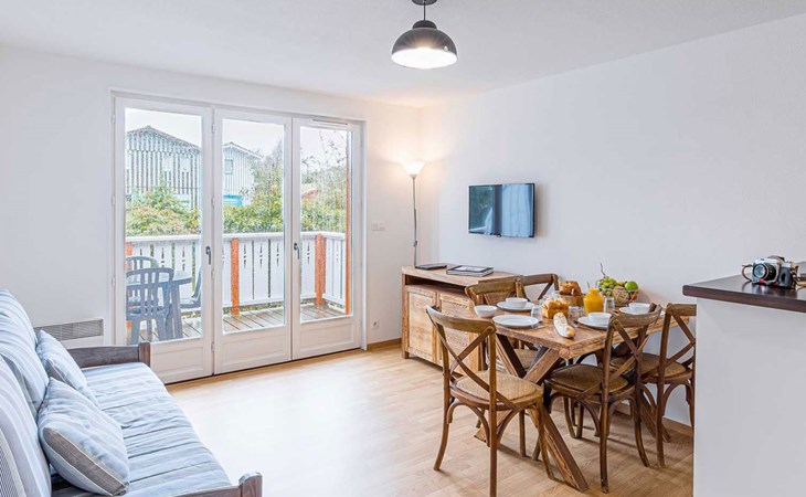 Residenz "Les Rives Marines". 130 Wohnungen in der Residenz. 300 m vom Fluss. Zur Mitbenutzung: Schwimmbad beheizt, eingezäunt (12 x 10 m, saisonale Verfügbarkeit: 01.Mai. - 30.Sep.). Tischtennis, Boccia. In der Anlage: Empfang, Wireless LAN, Einstellraum für Fahrräder, Waschmaschine, Wäschetrockner (zur Mitbenutzung, extra). Brötchenservice. Parkplatz. Einkaufsgeschäft 500 m, Supermarkt 4 km, Sandstrand "Plage de la Hume" 4 km. Sporthafen 500 m, Golfplatz (18 Loch) 10 km. Nahe gelegene Sehenswürdigkeiten: Port de plaisance du Teich 500 m, Réserve ornithologique 400 m, la plage de La Hume 4 km, côte de Cap Ferret & Arcachon, Dune du Pilat, Bordeaux 53 km. Wandergebiete: Parc Naturel des Landes de Gascogne. Bitte beachten: Das Foto ist nur ein Hausbeispiel. Die Mietobjekte können sich in Wohnfläche, Raumaufteilung, Ausstattung und Einrichtung unterscheiden.