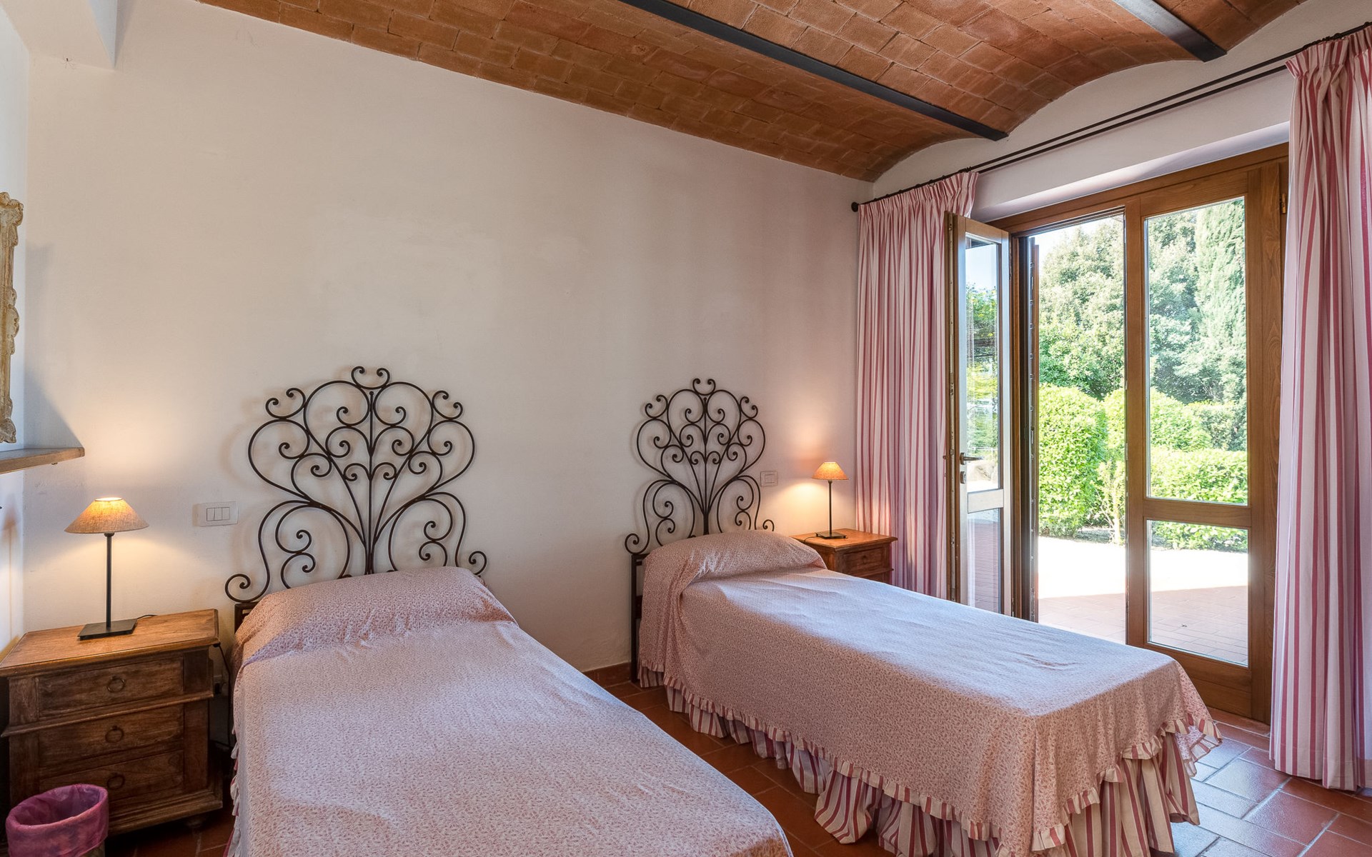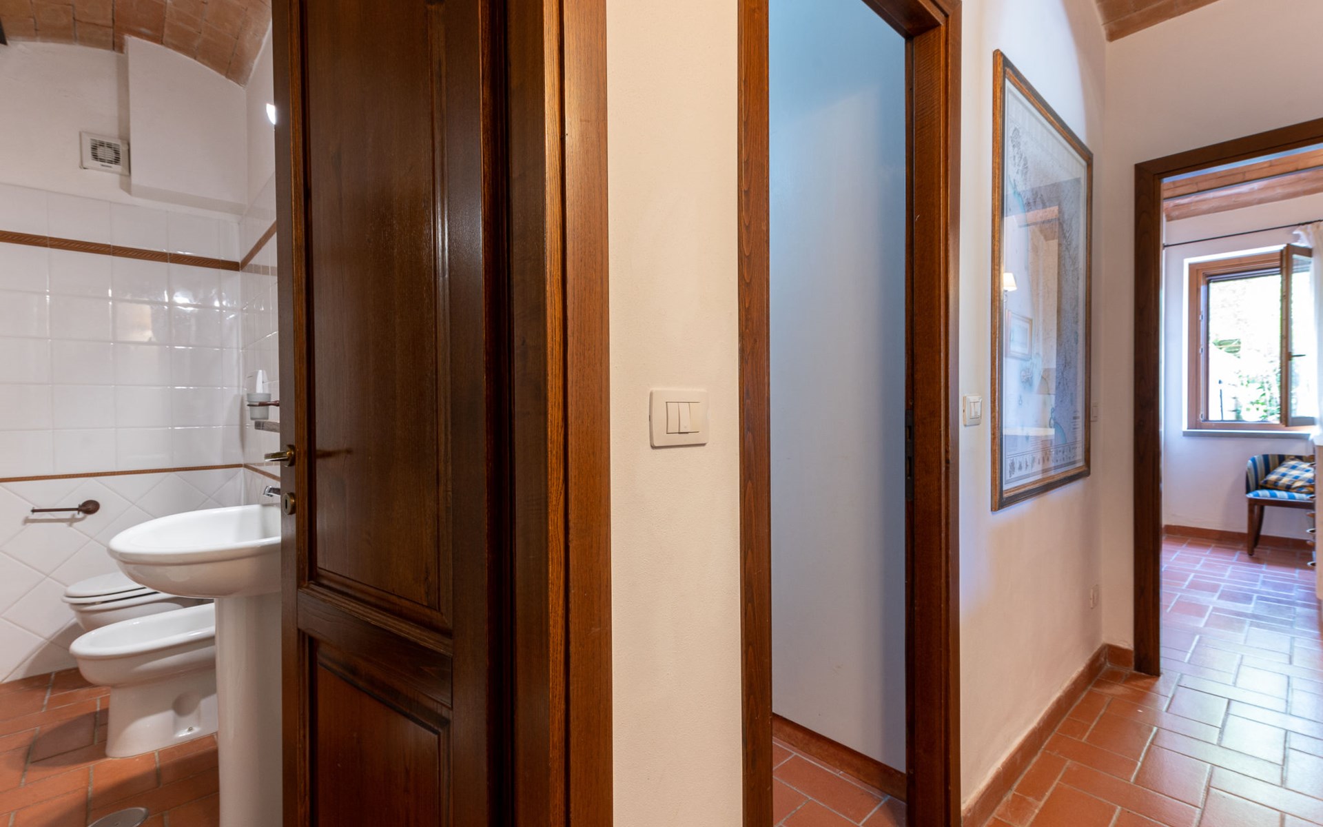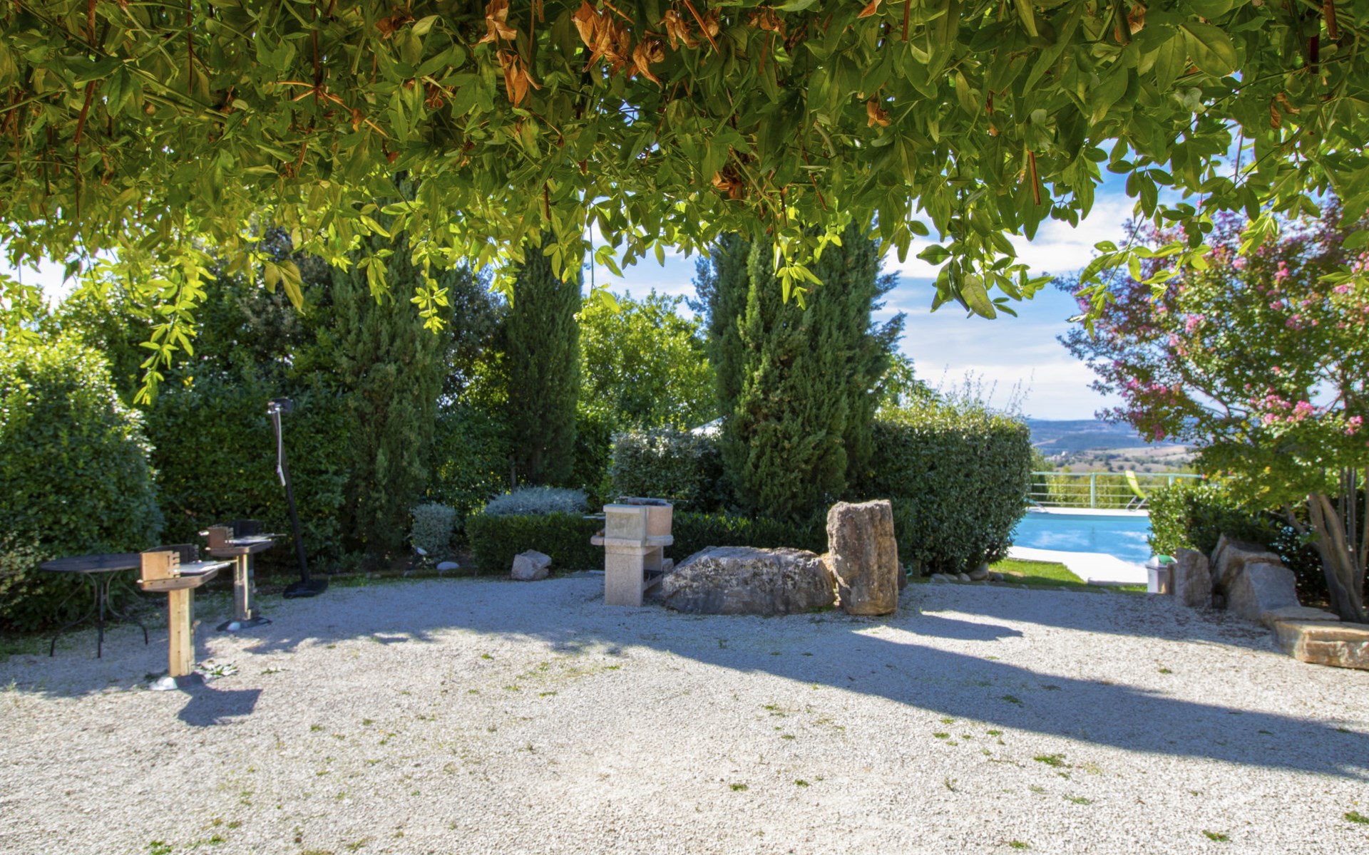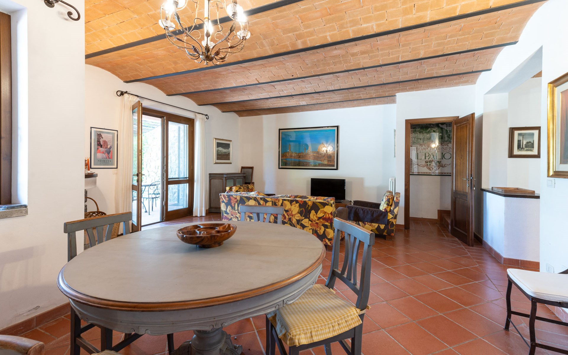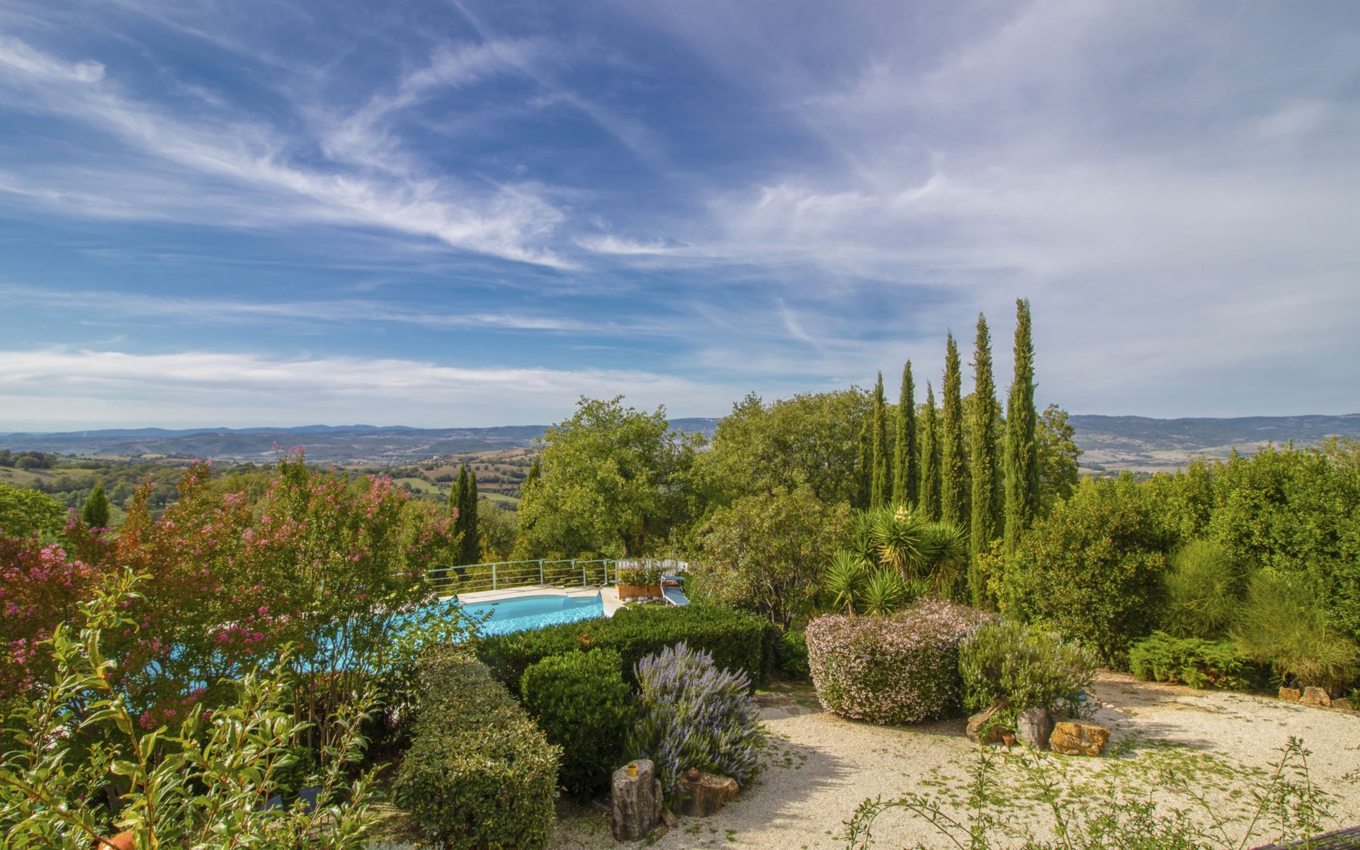 Das Anwesen liegt auf einem Hügel mit fantastischer Panoramasicht bis zum Meer und den Inseln Giglio und Montecristo (480 m.ü.M). Oberhalb der kleinen mittelalterlichen Dörfer Montemerano und Saturnia gelegen, bekannt für die warmen, natürlichen Wasserfälle und die Thermalbäder. Schöne, freistehende Villa 480 m.ü.M., auf 2 Stockwerken. Im Weiler Poderi, 7 km vom Zentrum von Saturnia, 3 km vom Zentrum von Montemerano, 3 km vom Zentrum von Manciano, ruhige, sonnige Lage auf einem Hügel, 50 m vom Waldrand, 3500 km vom Meer, 35 km vom Strand, im Grünen. Zur Alleinbenutzung: Grundstück 2'000 m2 (eingezäunt), wunderschöner Garten zum Entspannen, Schwimmbad (7 x 14 m, 110 - 170 cm tief, saisonale Verfügbarkeit: 01.Jun. - 30.Sep.) mit Innentreppe und Salzelektrolyse-Reinigungssystem. Aussendusche, Terrasse, Gartenmöbel, Grill, Poolpflege durch den Besitzer/Gärtner. Im Hause: Waschmaschine. Wohnungsreinigung möglich (extra). Parkplatz. Einkaufsgeschäft 2 km, Supermarkt 3 km, Restaurant 2 km, Bäckerei 2 km, Café 2 km, Fahrradverleih 4 km, Bushaltestelle 200 m, Bahnstation "Orbetello" 35 km, Sandstrand "Giannella - Feniglia" 37 km, Thermalbad "Saturnia" 8 km, Badesee "Bolsena" 46 km. Golfplatz (18 Loch) 8 km, Tennis 6 km, Reitstall 6 km, Wanderwege ab Haus 50 m. Nahe gelegene Sehenswürdigkeiten: Pitigliano 20 km, Scansano 25 km, Capalbio 30 km, Monte Argentario 35 km, Grosseto 55 km. Bekannte Seen in der Umgebung sind gut erreichbar: Bolsena 45 km. Bitte beachten: Fahrzeug empfohlen. Ein Teil des Hauses ist geschlossen und nicht bewohnt. Strände beim Monte Argentario und des Naturschutzparkes Parco d'Urcellina, 35 km. Mitten in der Maremma und nahe bei Etruskerausgrabungen gelegen. Siena und die übrige Toskana sind leicht erreichbar. Ausgestattete Terrasse mit Sicht auf das Tal, Garten mit Kräutern. Druckstrahlmassage in einer der Badewannen.
