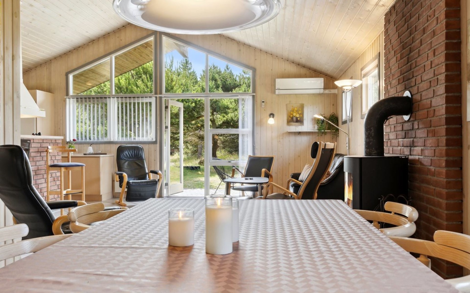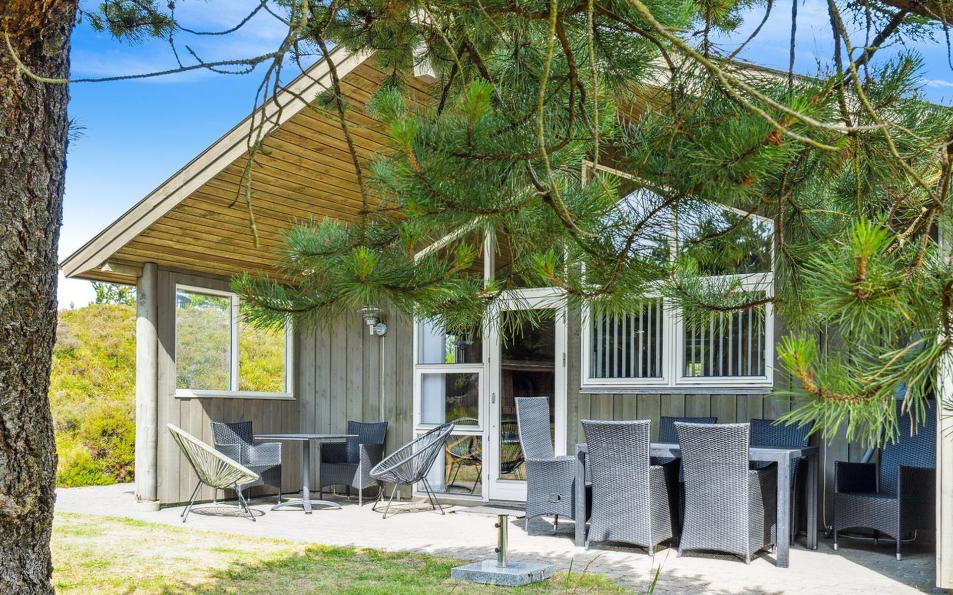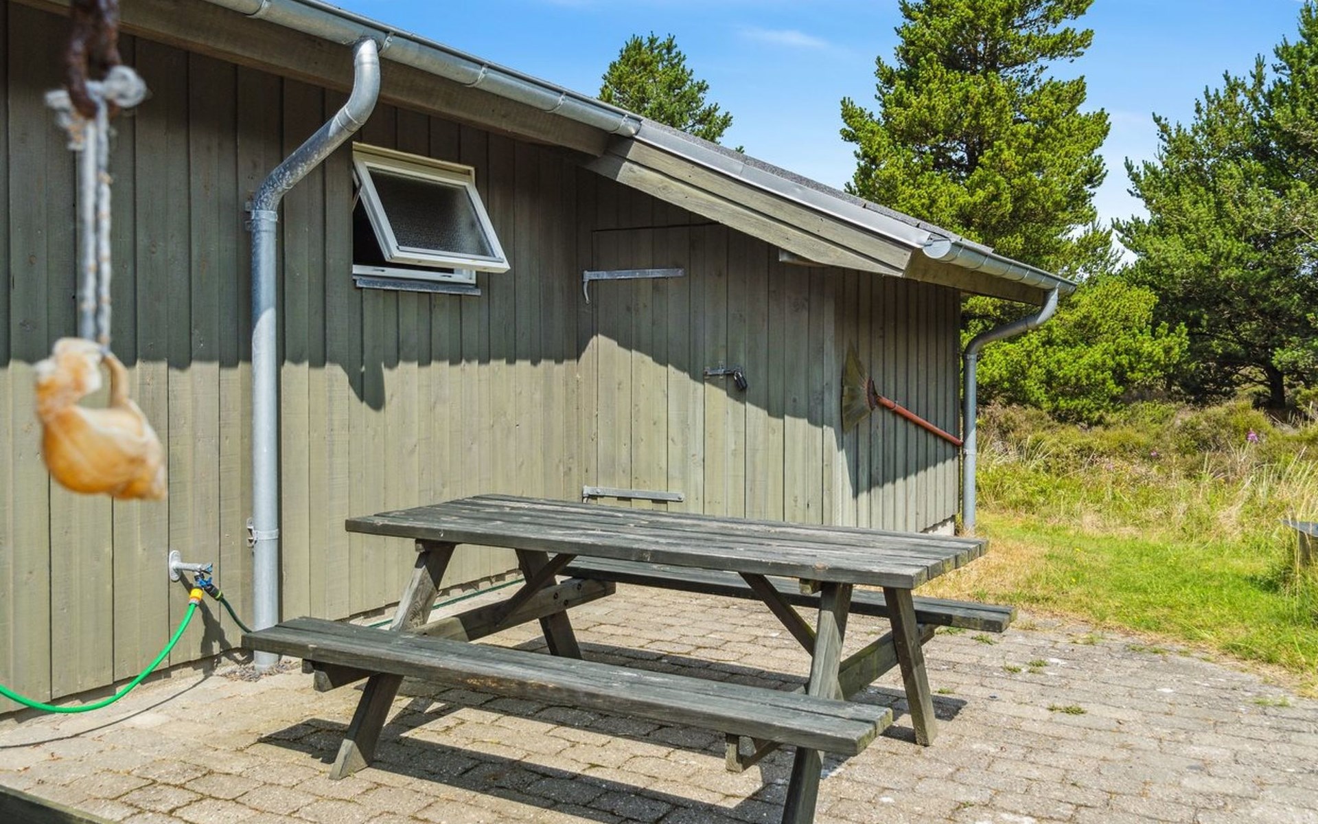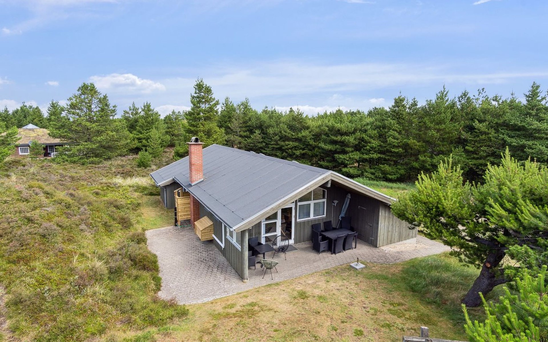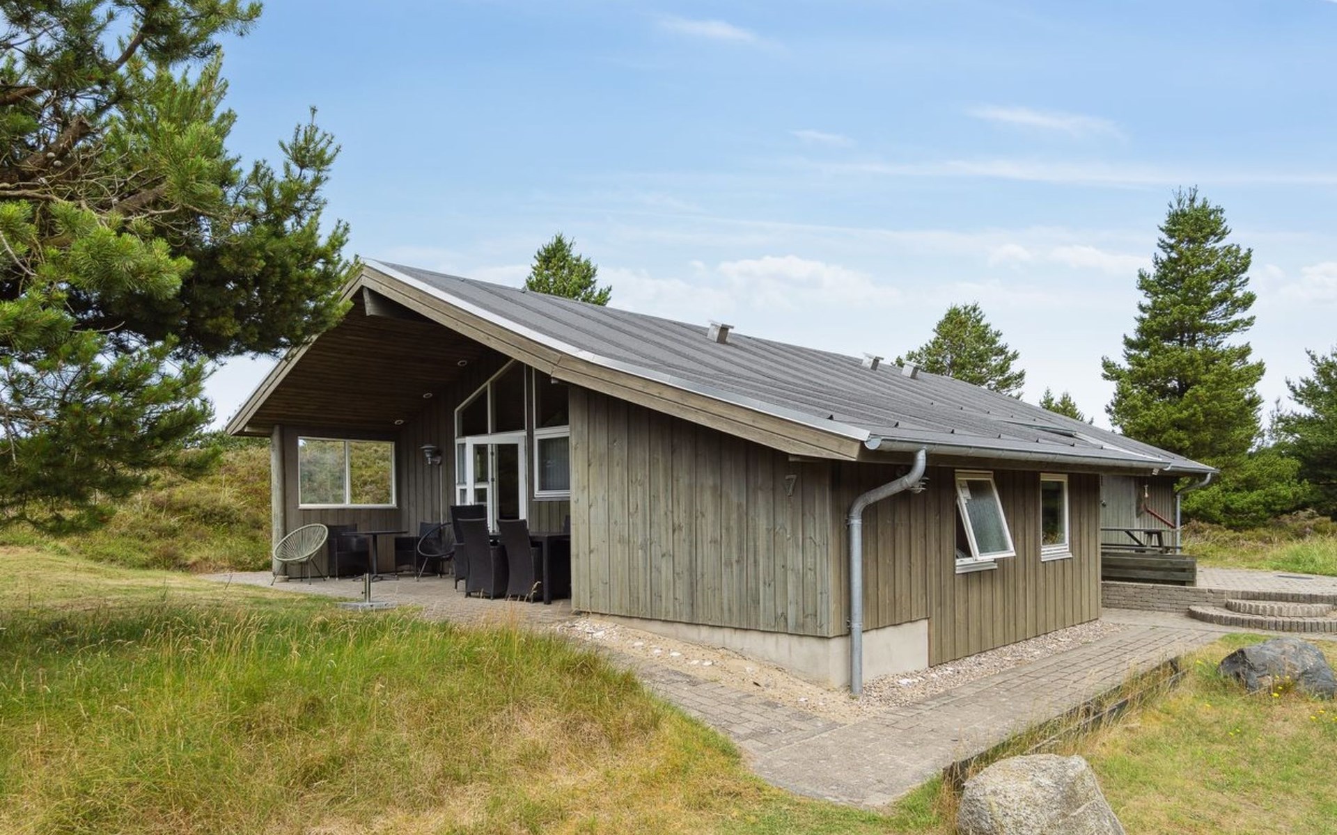 Einfamilienhaus, Baujahr 1993. 3.1 km vom Meer. Zur Alleinbenutzung: naturbelassenes Grundstück 2'583 m2. Terrasse (50 m2), Kinderspielplatz (Schaukel). Im Hause: Sauna, Waschmaschine, Wäschetrockner. Parkplatz beim Haus. Lebensmittelgeschäft 4.1 km. Der Besitzer akzeptiert keine Jugendgruppen.