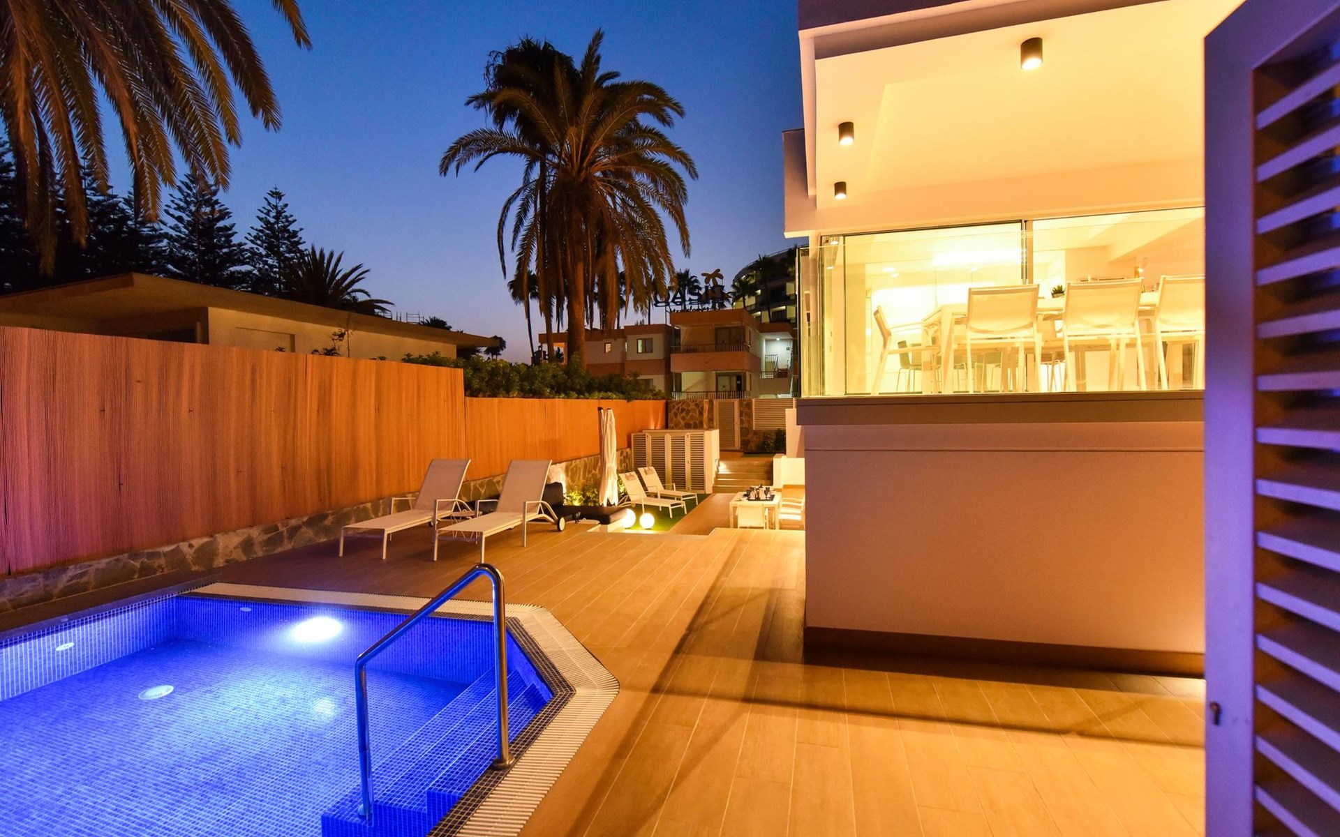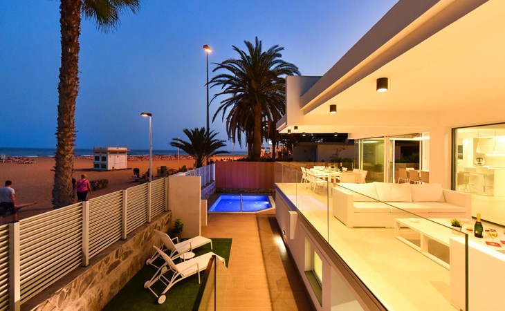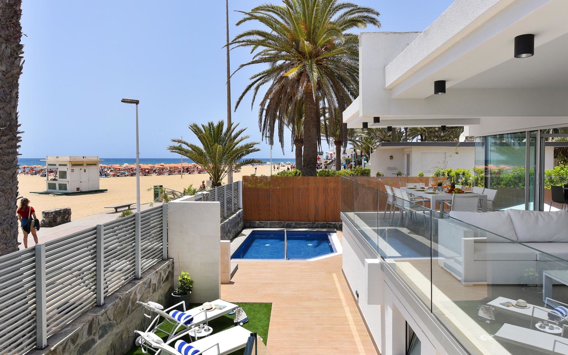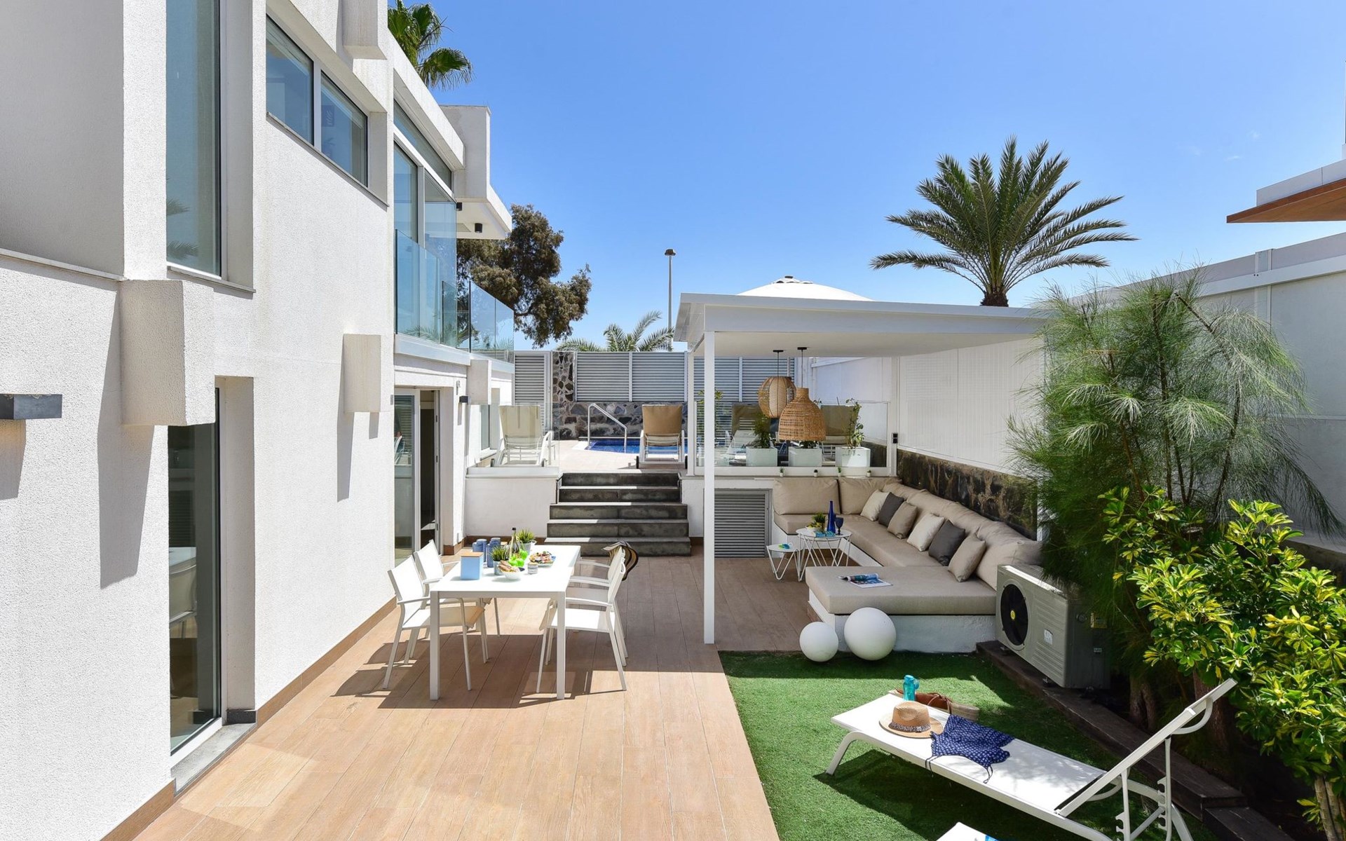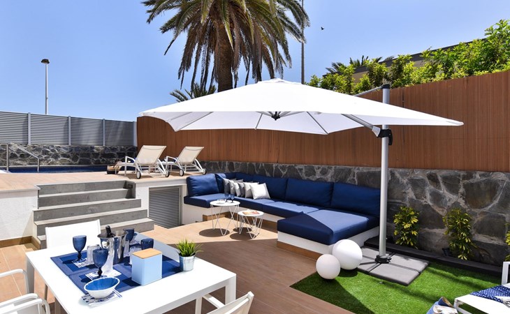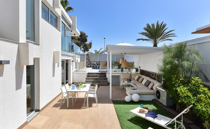 Sehr modernes Haus. Im Ortszentrum von Maspalomas, zentrale Lage. Zur Alleinbenutzung: Schwimmbad eckig, beheizt (120 - 120 cm tief, saisonale Verfügbarkeit: 01.Jan. - 31.Dez.). Bushaltestelle "Estación Faro de Maspalomas" 450 m.