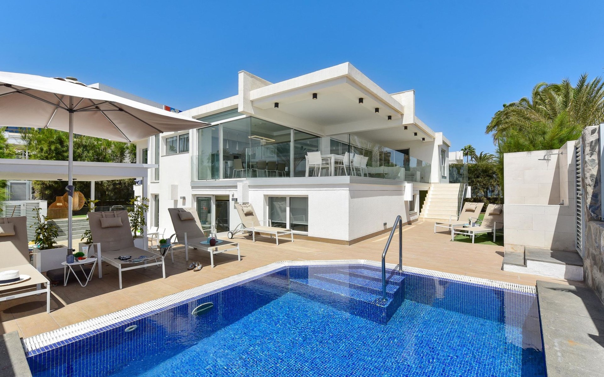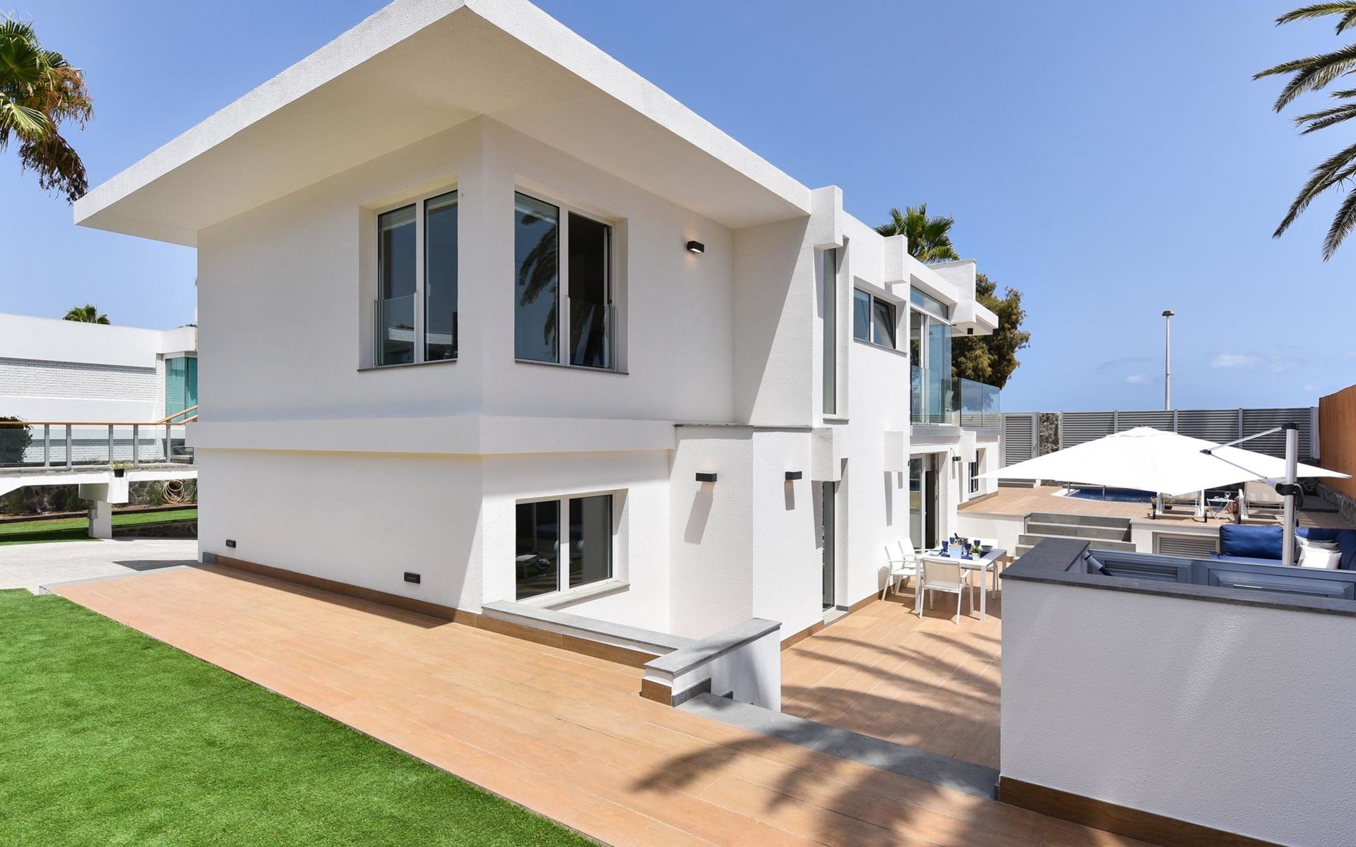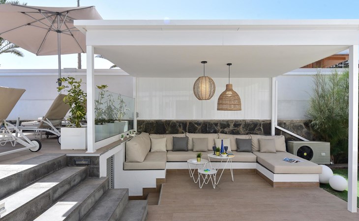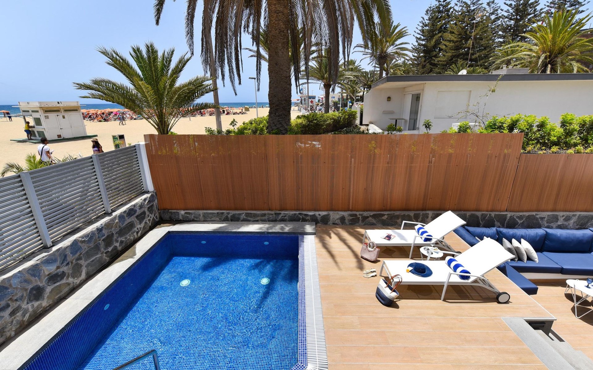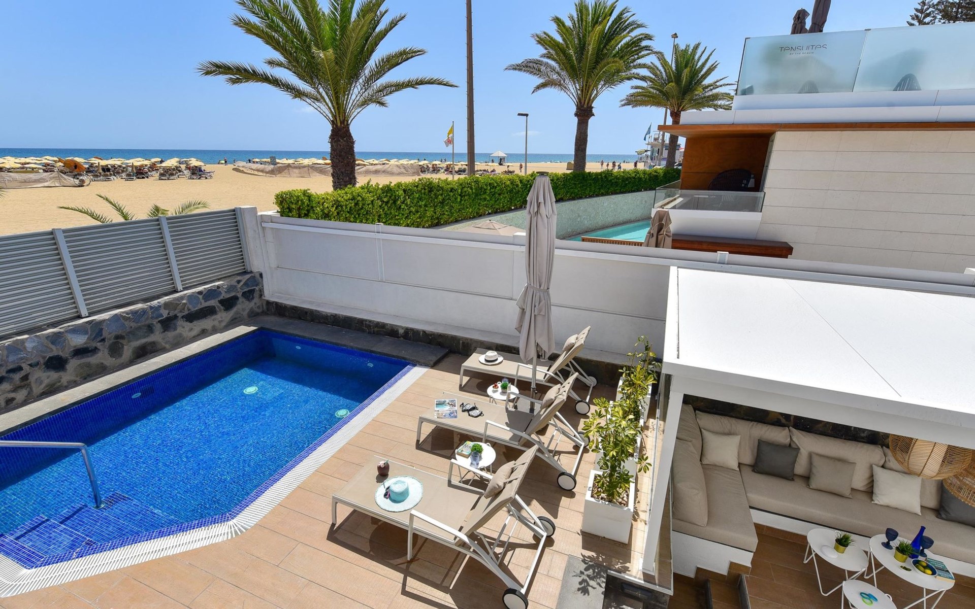 Sehr modernes Haus. Im Ortszentrum von Maspalomas, zentrale Lage. Zur Alleinbenutzung: Schwimmbad eckig, beheizt (120 - 120 cm tief, saisonale Verfügbarkeit: 01.Jan. - 31.Dez.). Bushaltestelle "Estación Faro de Maspalomas" 450 m.