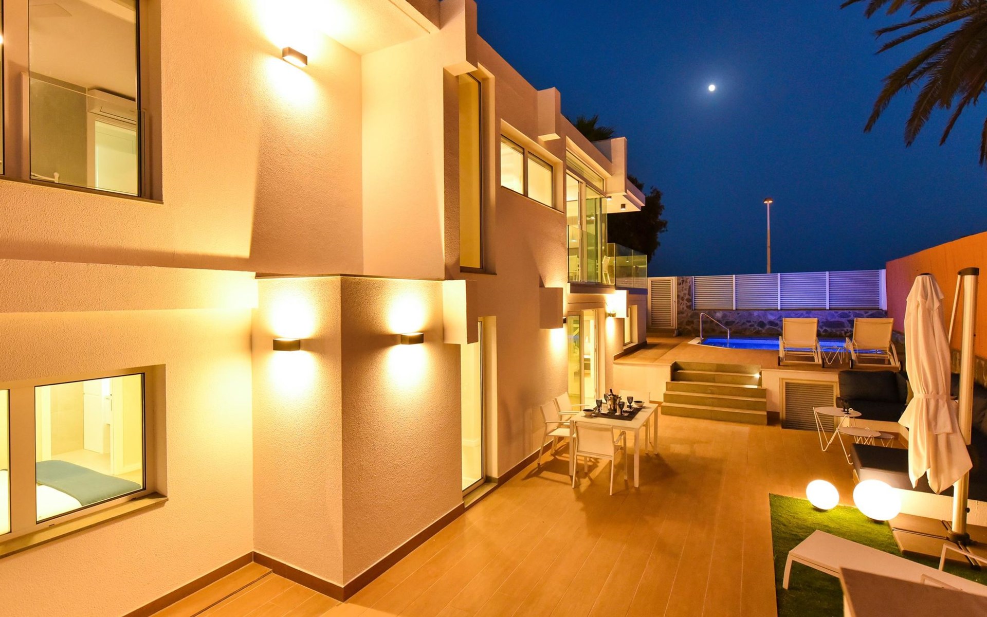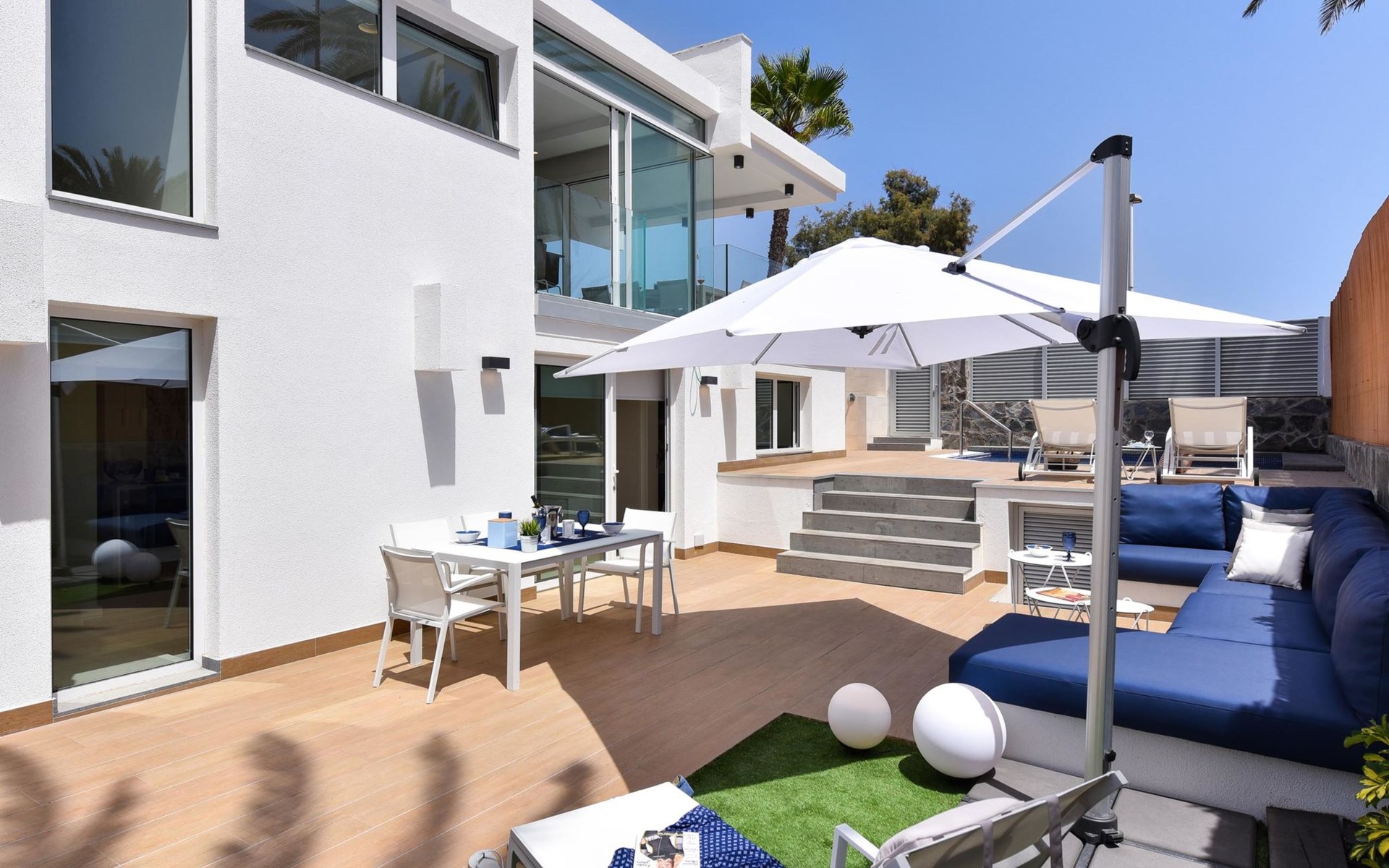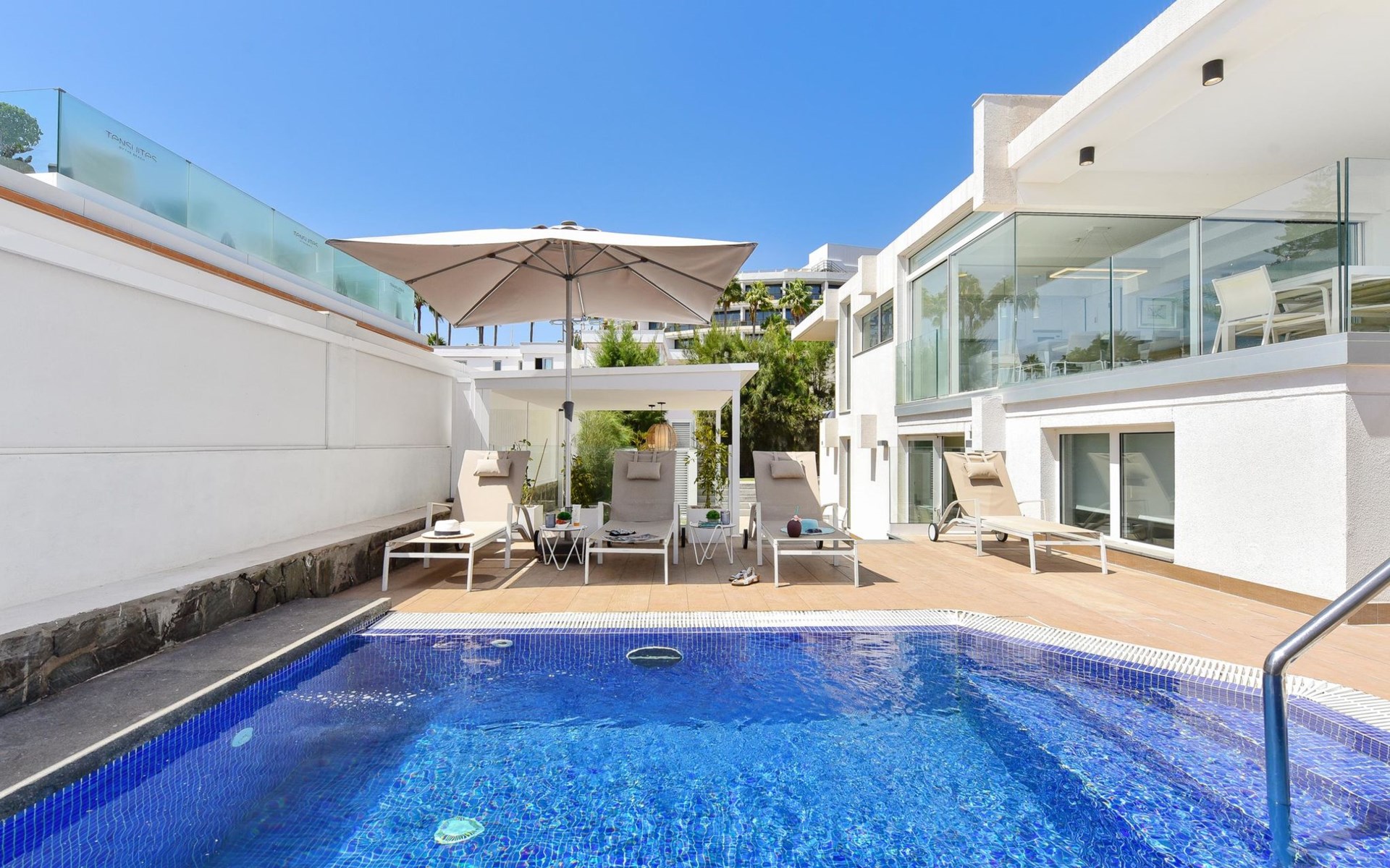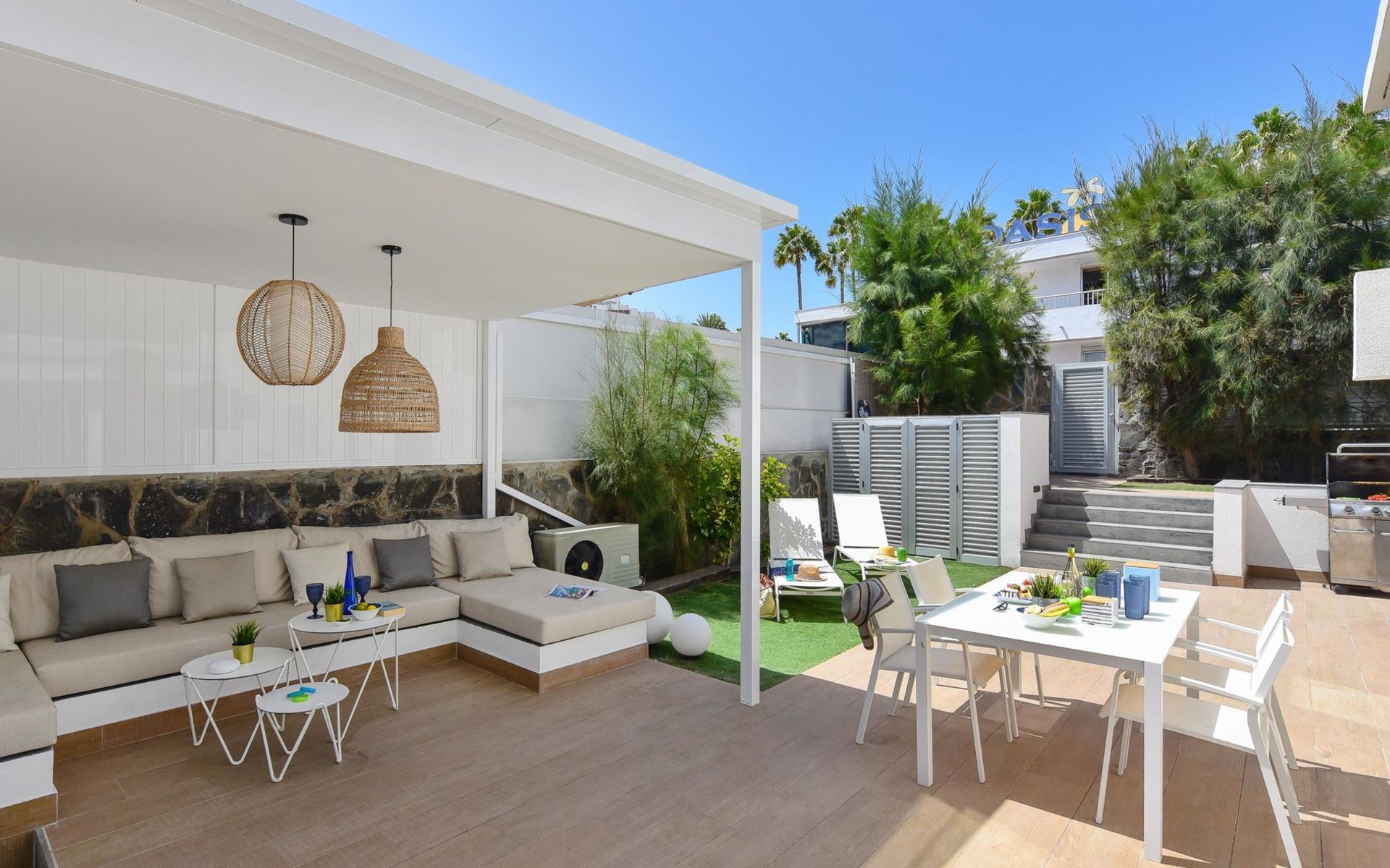 Sehr modernes Haus. Im Ortszentrum von Maspalomas, zentrale Lage. Zur Alleinbenutzung: Schwimmbad eckig, beheizt (120 - 120 cm tief, saisonale Verfügbarkeit: 01.Jan. - 31.Dez.). Bushaltestelle "Estación Faro de Maspalomas" 450 m.