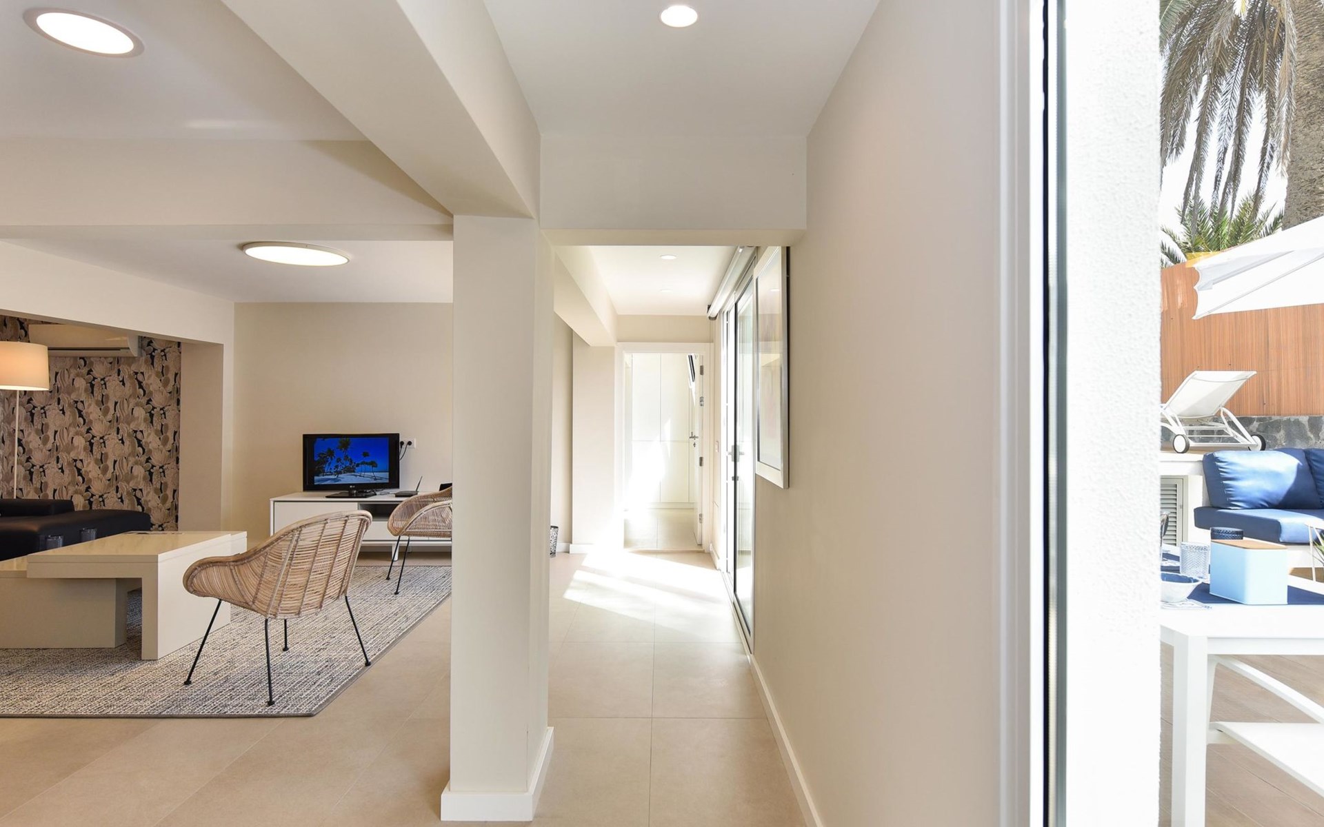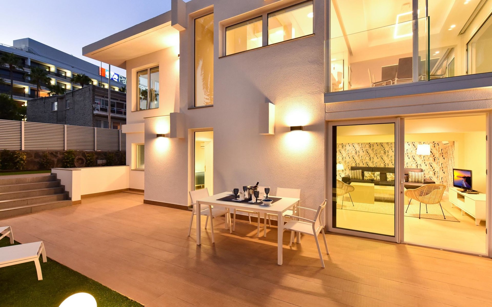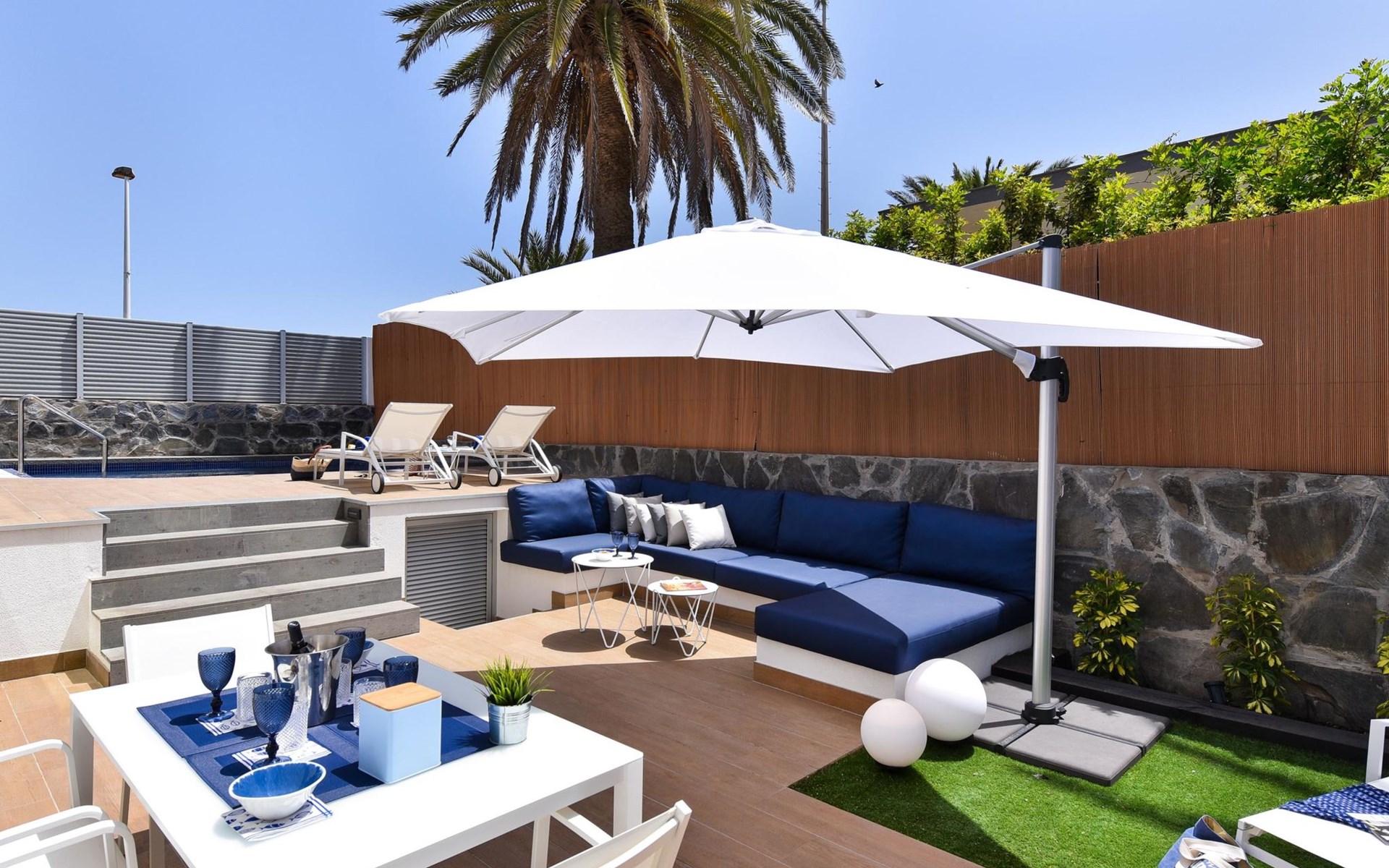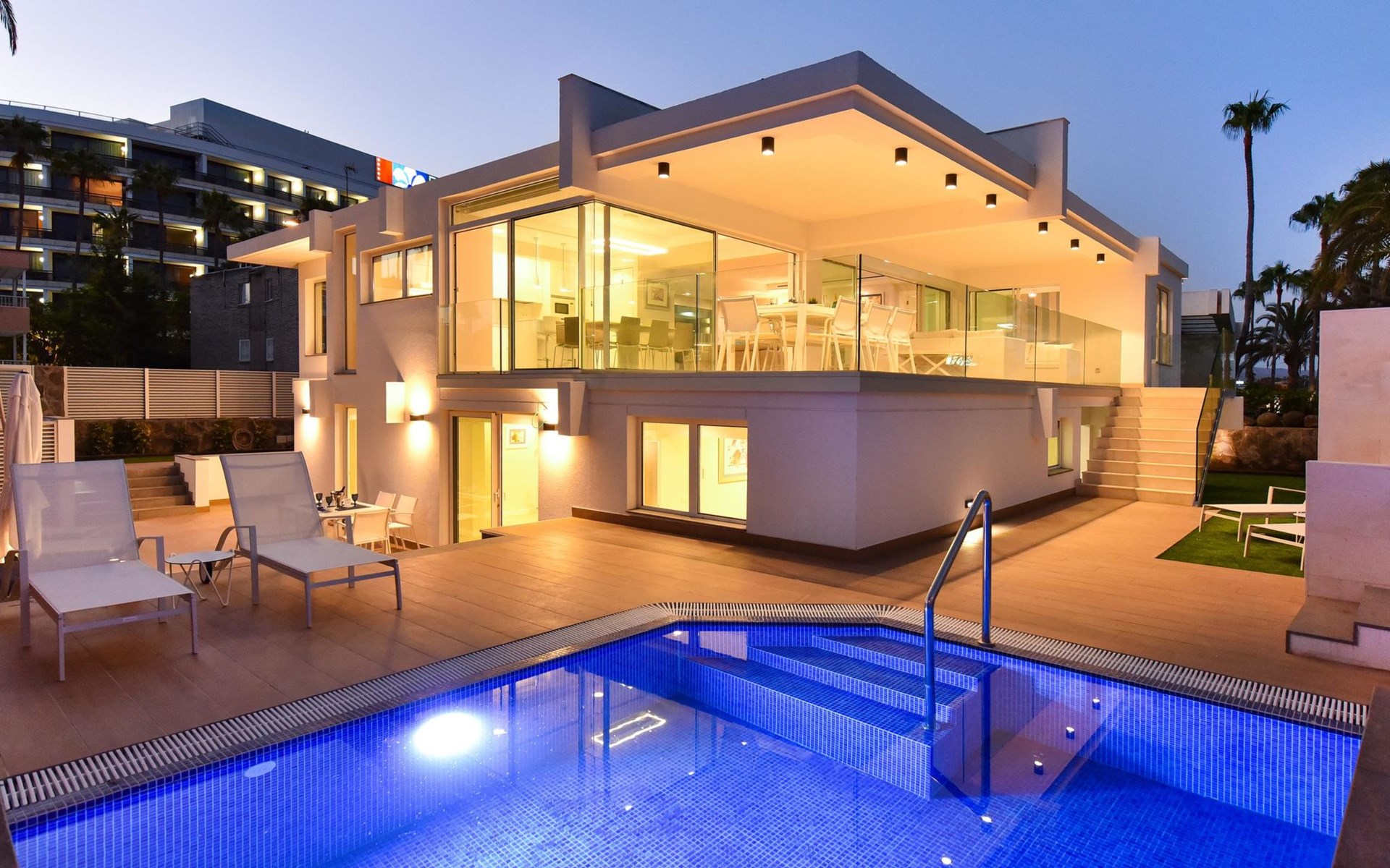 Sehr modernes Haus. Im Ortszentrum von Maspalomas, zentrale Lage. Zur Alleinbenutzung: Schwimmbad eckig, beheizt (120 - 120 cm tief, saisonale Verfügbarkeit: 01.Jan. - 31.Dez.). Bushaltestelle "Estación Faro de Maspalomas" 450 m.