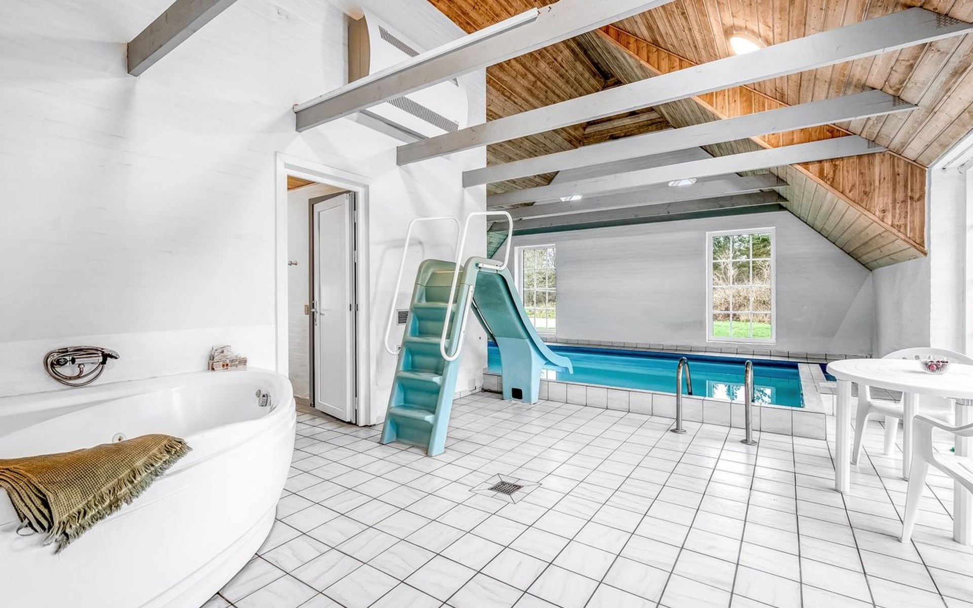 Einfamilienhaus, Baujahr 1992. 1.7 km vom Meer. Zur Alleinbenutzung: naturbelassenes Grundstück 5'018 m2, Hallenbad (6 x 9 m, 54 m2, 125 - 125 cm tief). Kinderspielplatz (Rutschbahn, Schaukel). Im Hause: Sauna, Trampolin, Waschmaschine, Wäschetrockner. Parkplatz beim Haus. E-Ladestation. Lebensmittelgeschäft 500 m. Der Besitzer akzeptiert keine Jugendgruppen.