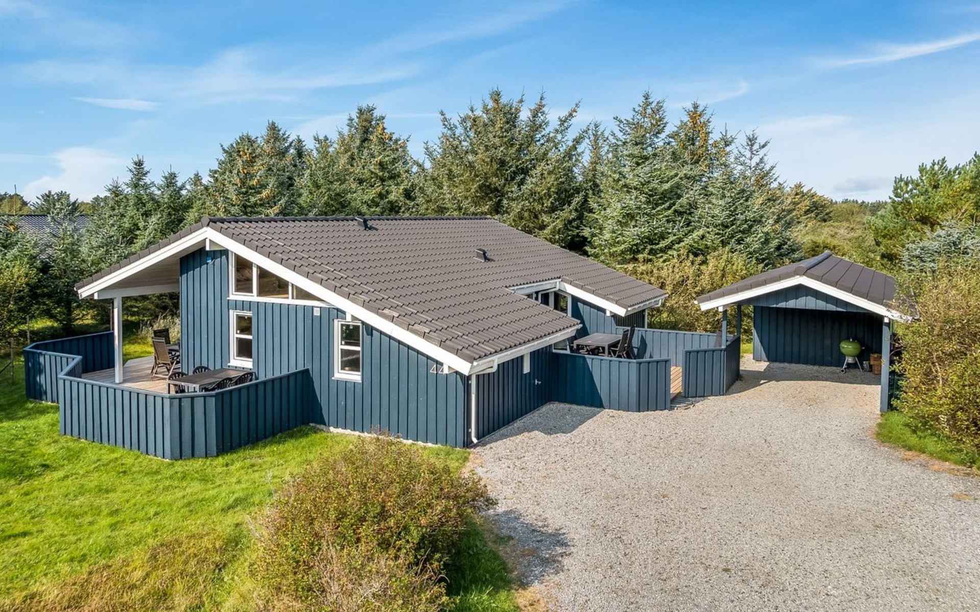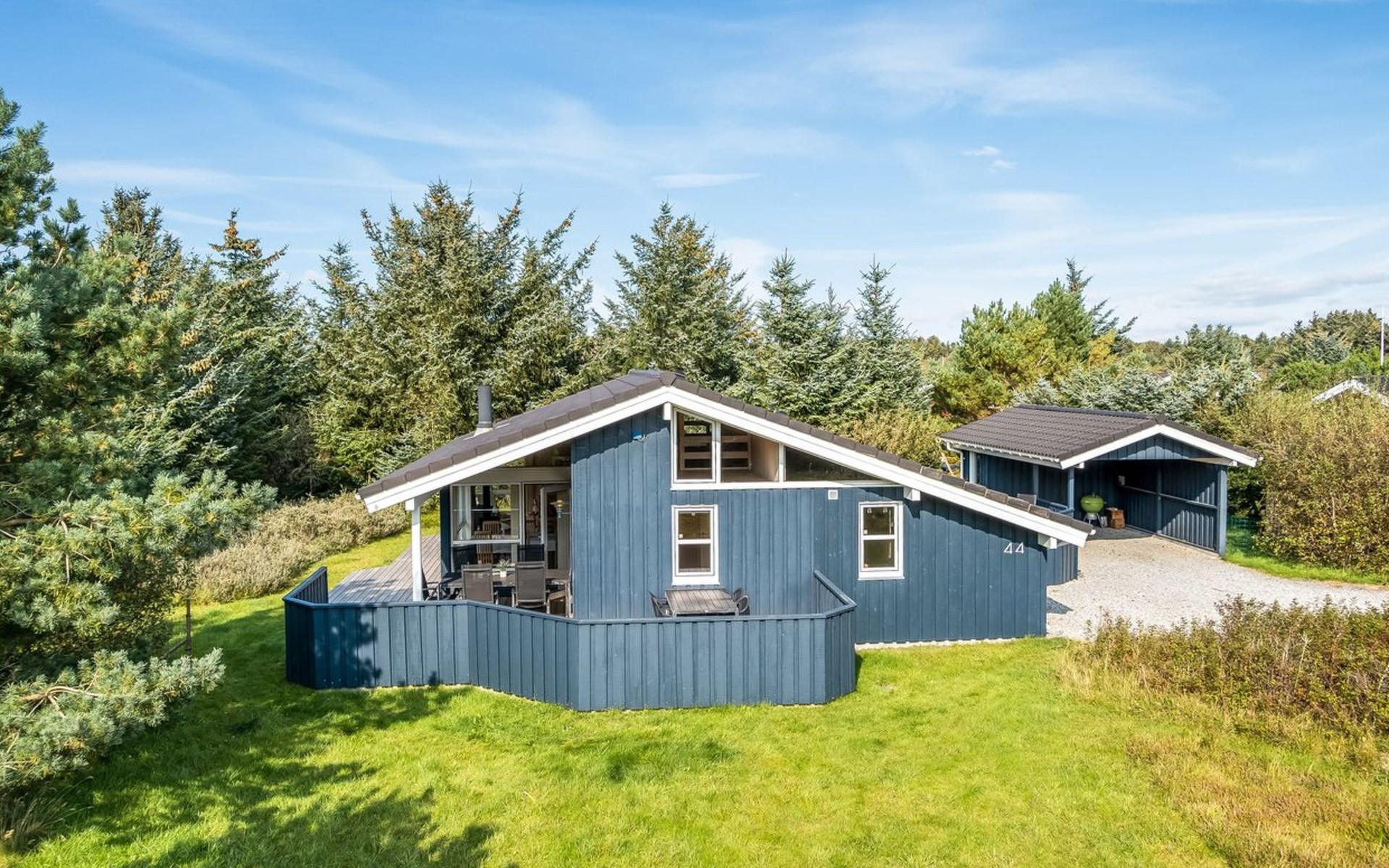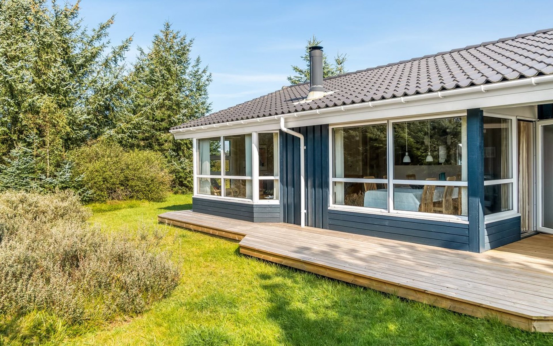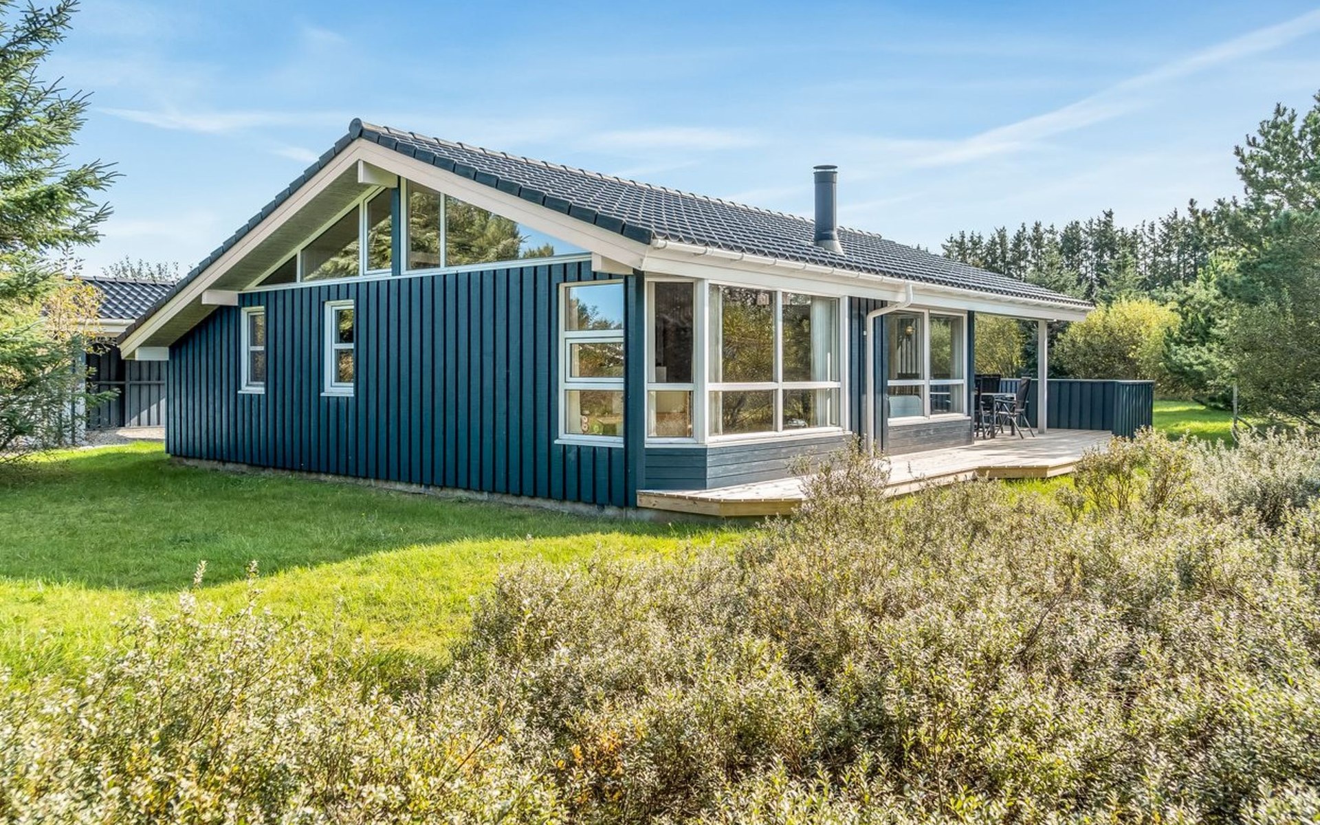 Einfamilienhaus, Baujahr 2004. 1 km vom Meer. Zur Alleinbenutzung: naturbelassenes Grundstück 1'980 m2. Terrasse (40 m2), Kinderspielplatz (Schaukel). Im Hause: Sauna, Waschmaschine, Wäschetrockner. Parkplatz beim Haus. Carport. Lebensmittelgeschäft 1 km. Der Besitzer akzeptiert keine Jugendgruppen.