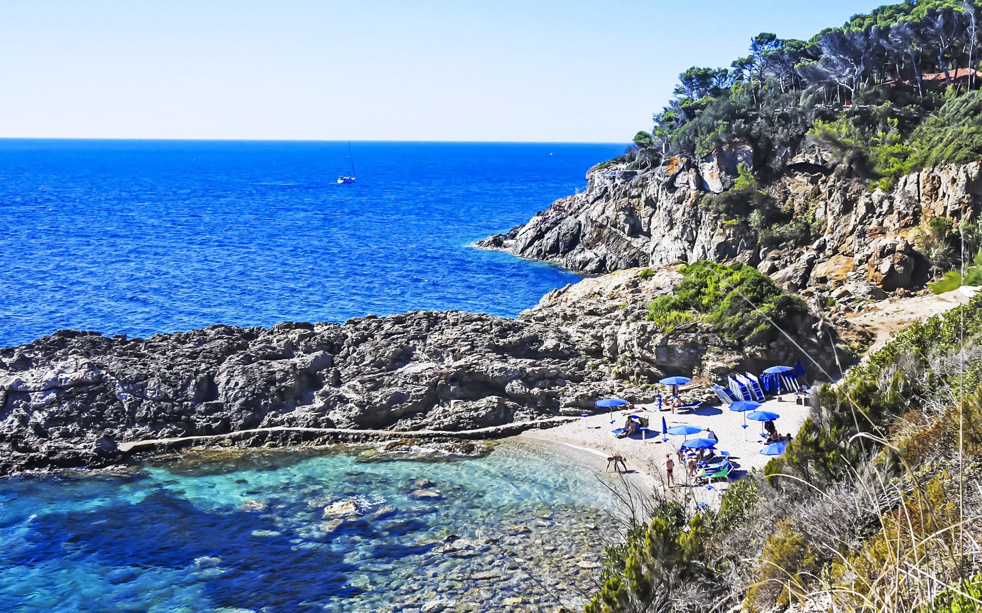 Das Gebiet Capo D'Arco (mit überwachtem Privatzugang) liegt mitten in einer Oase von Naturschönheiten. Schöne Ferienanlage "Capo d'Arco", umgeben von Bäumen. Im Ort Capo d'Arco, ruhige Lage, 500 m vom Meer, 500 m vom Strand, direkter Zugang zum Strand. Zur Mitbenutzung: terrassierter Garten, Naturgarten, 2 Schwimmbäder (saisonale Verfügbarkeit: 01.Jun. - 30.Sep.). Dusche/WC im Poolbereich, Kinderbecken, Aussendusche, Privatstrand, Tennis (extra), Beachvolleyball, Gartenmöbel. In der Anlage: Restaurant, Bar, Tischtennis. Zufahrt (500 m Naturweg). Parkplatz. Supermarkt 5 km, Bushaltestelle 3.3 km, Fähre "Rio Marina" 13 km, Sandstrand "Brigantino" 500 m (klein). Nahe gelegene Sehenswürdigkeiten: Porto Azzurro 5 km, Capoliveri 11 km, Rio nell'Elba 13 km, Portoferraio 18 km. Bitte beachten: Fahrzeug empfohlen. Der Besitzer akzeptiert keine Jugendgruppen. Bewachte Residenz. Weitere Unterkünfte sind buchbar. Gäste dürfen das Schwimmbecken (mit Meer- und Frischwasser) kostenlos benutzen, nur die Sonnenliegen sind extra bezahlbar. Bar, Restaurants, Supermarkt sind vorhanden (01.06/15.09). Öffnungszeiten und Zeiten der Pools und Restaurants können variieren, wenn die Nachfrage nicht ausreicht oder bei ungünstigen Wetterbedingungen ist.
