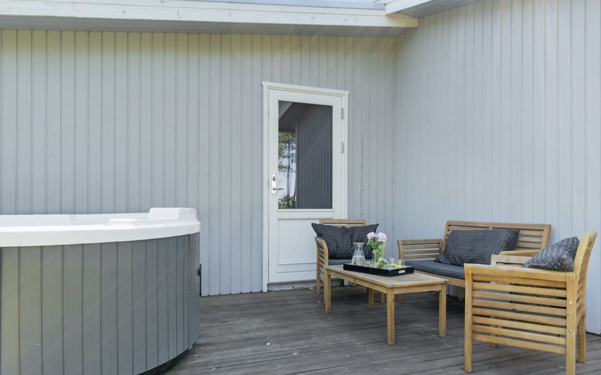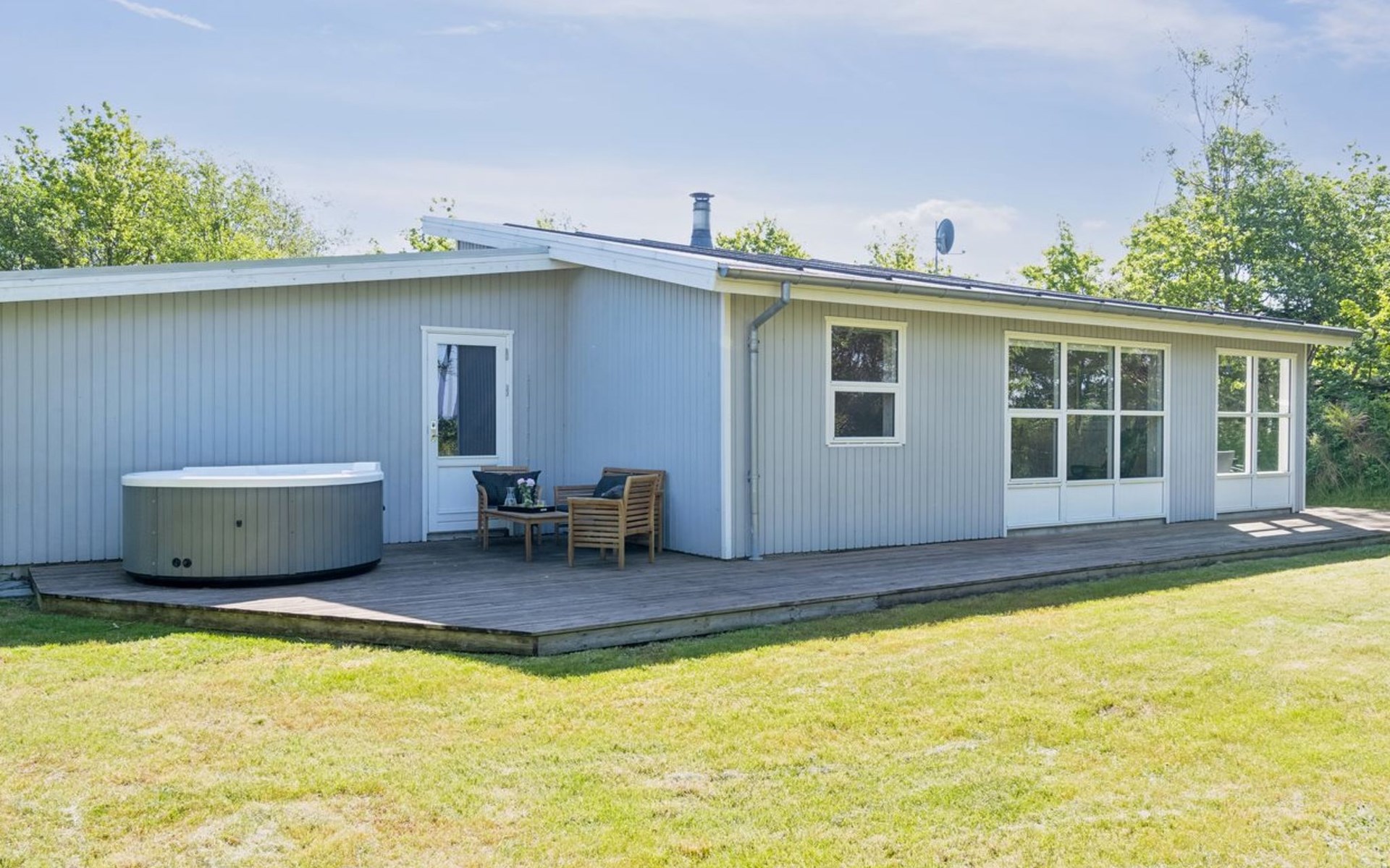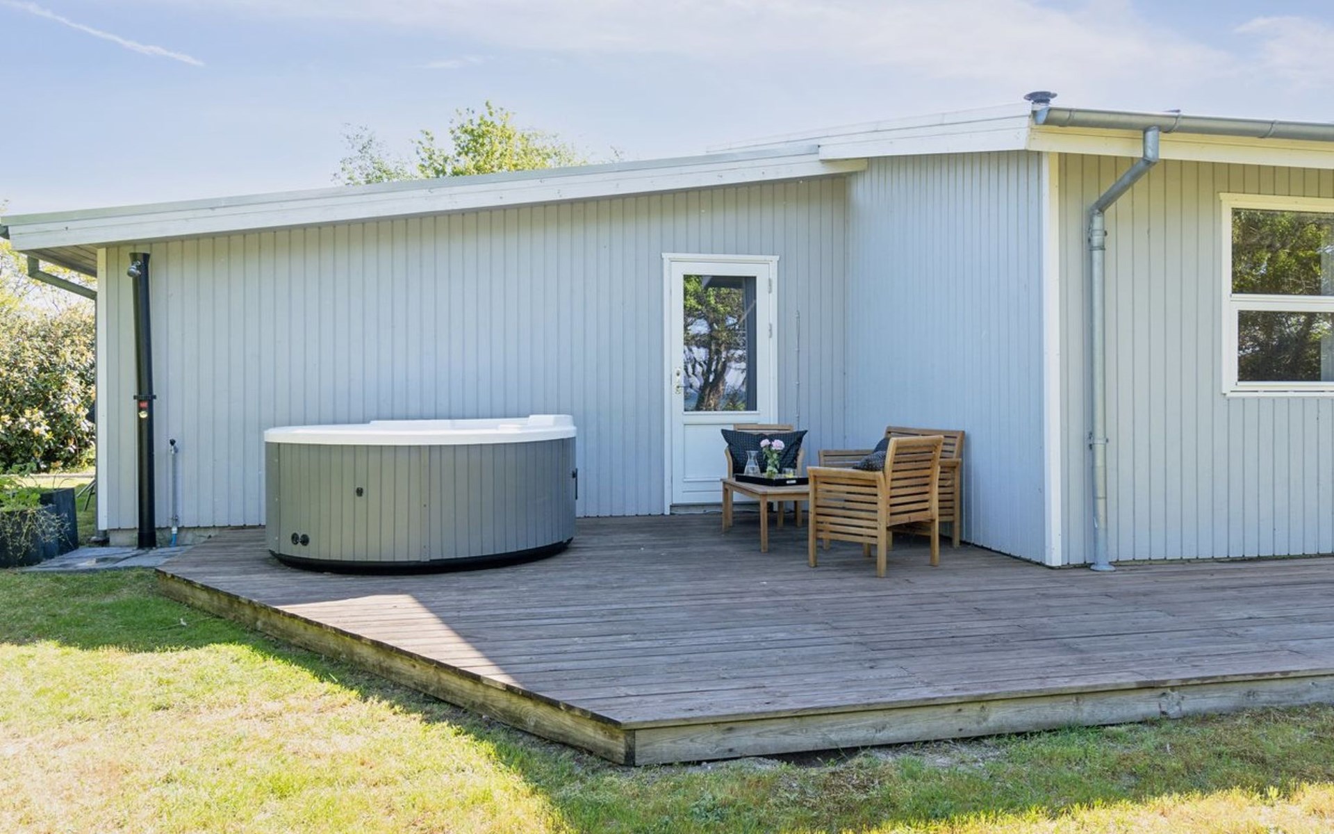 Einfamilienhaus, Baujahr 1958. 50 m vom Meer. Zur Alleinbenutzung: naturbelassenes Grundstück 789 m2. Aussendusche, Terrasse (30 m2), Grill, Kinderspielplatz (Schaukel). Im Hause: Waschmaschine, Wäschetrockner. Parkplatz beim Haus. Lebensmittelgeschäft 5 km. Der Besitzer akzeptiert keine Jugendgruppen.