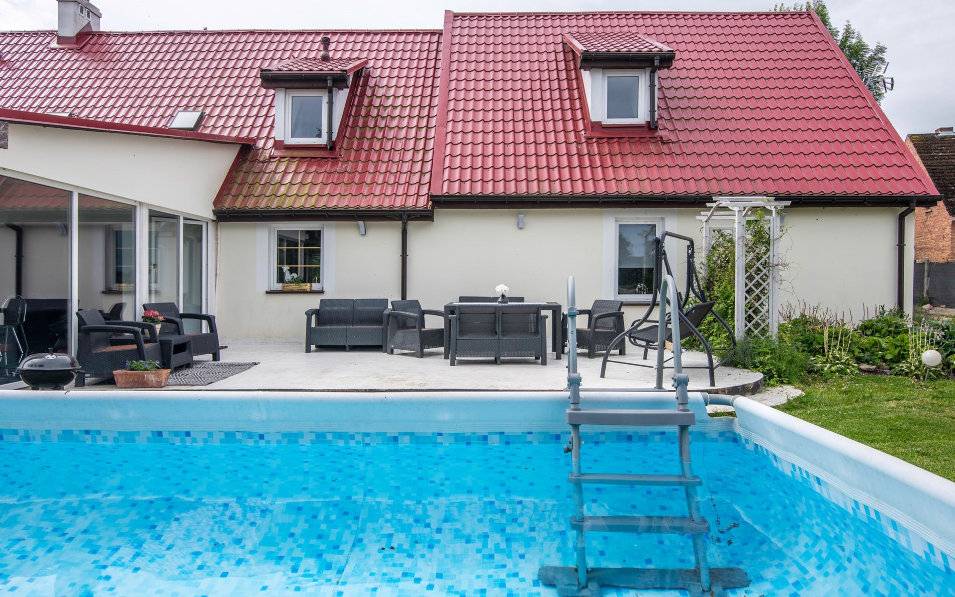 Einfamilienhaus "Country House Premium", renoviert im Jahre 2022. 10 km vom See, im Grünen. Zur Alleinbenutzung: Grundstück 3'000 m2 (eingezäunt), Garten 100 m2, Wiese 2'000 m2, Aufstellpool (2 x 4 m, 110 - 110 cm tief, saisonale Verfügbarkeit: 01.Jun. - 30.Aug.). Im Hause: Infrarotwärmekabine, Billard, Tischfussball, Waschmaschine, Wäschetrockner. Zur Verfügung: Fahrräder. Parkplatz auf dem Grundstück. Einkaufsgeschäft 2 km, Lebensmittelgeschäft 6 km, Supermarkt 6 km, Restaurant 6 km, Bushaltestelle 40 m, Bahnstation 12 km, Park 70 m, Strandbad 10 km. Nahe gelegene Sehenswürdigkeiten: Międzyzdroje 90 km. Bekannte Seen in der Umgebung sind gut erreichbar: Dobre 10 km. Bitte beachten: Angeln (mit Bewilligung). Tiere in der Umgebung.