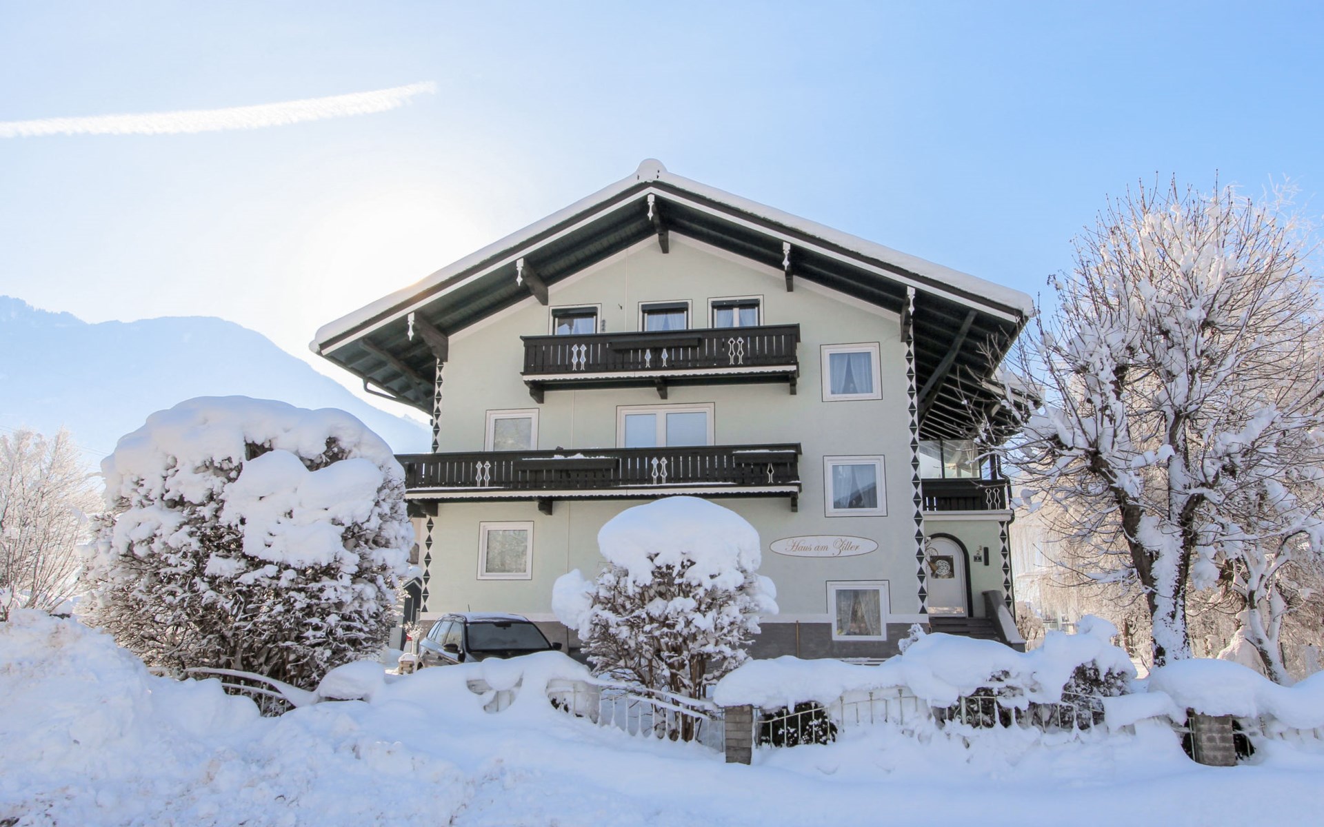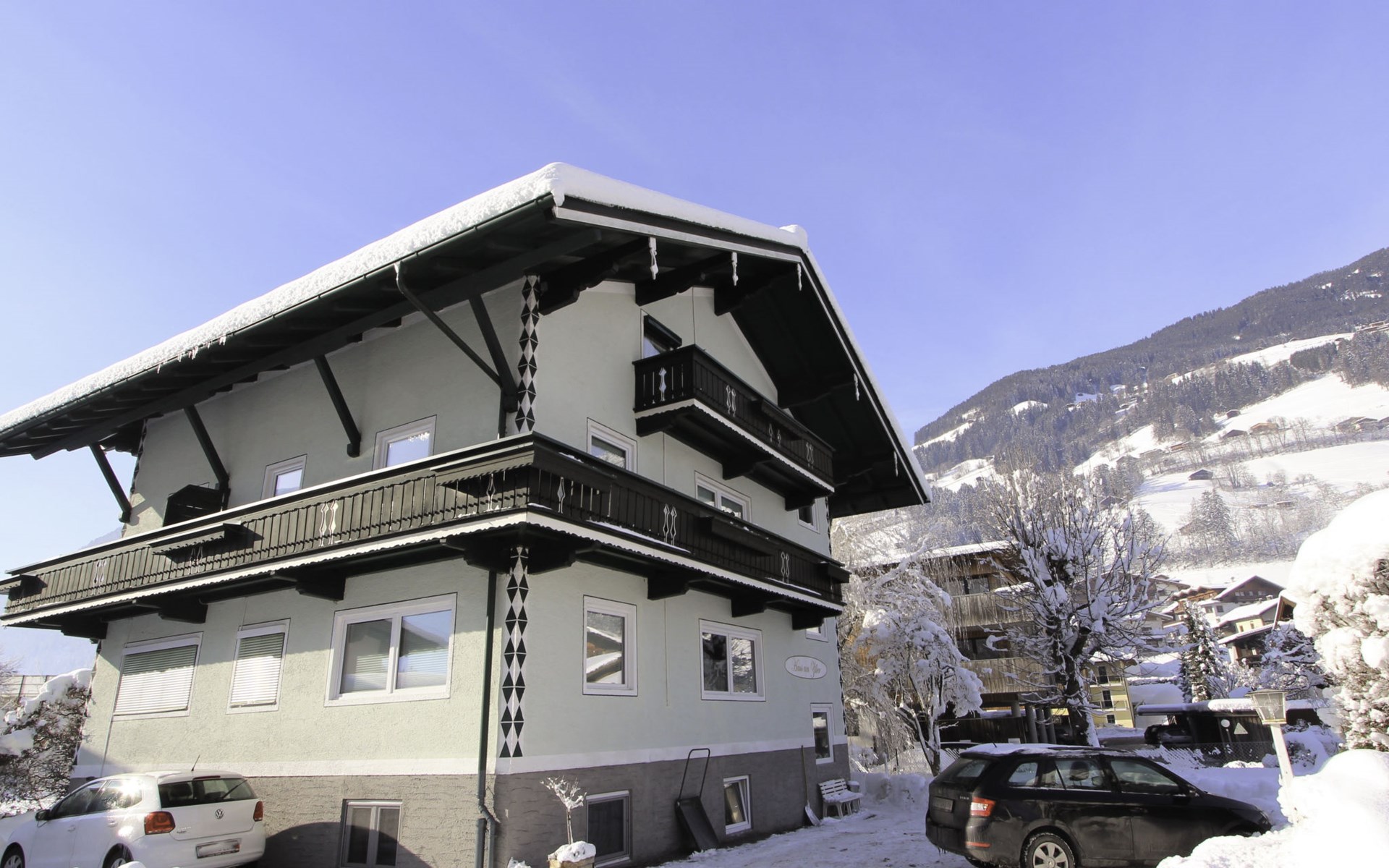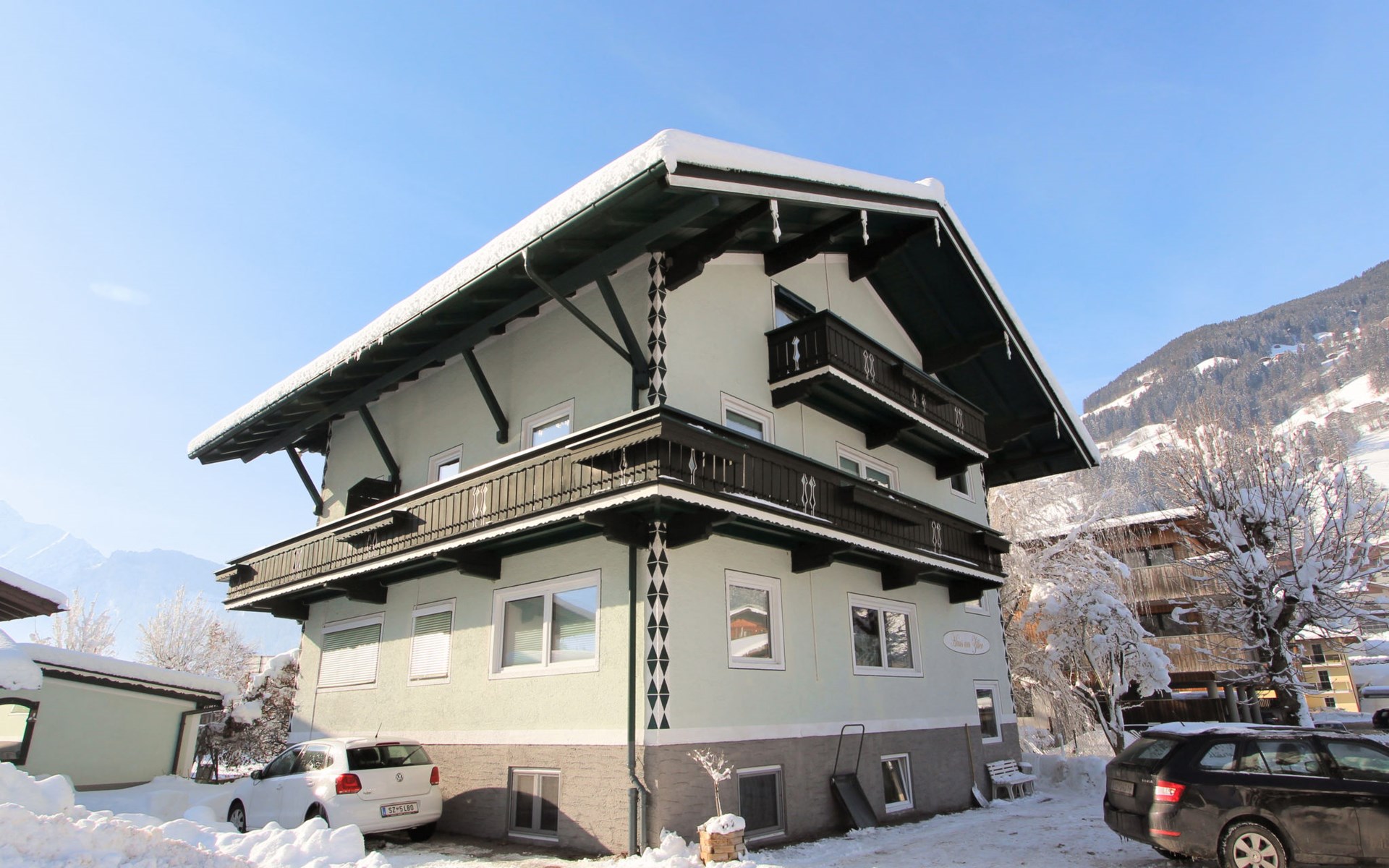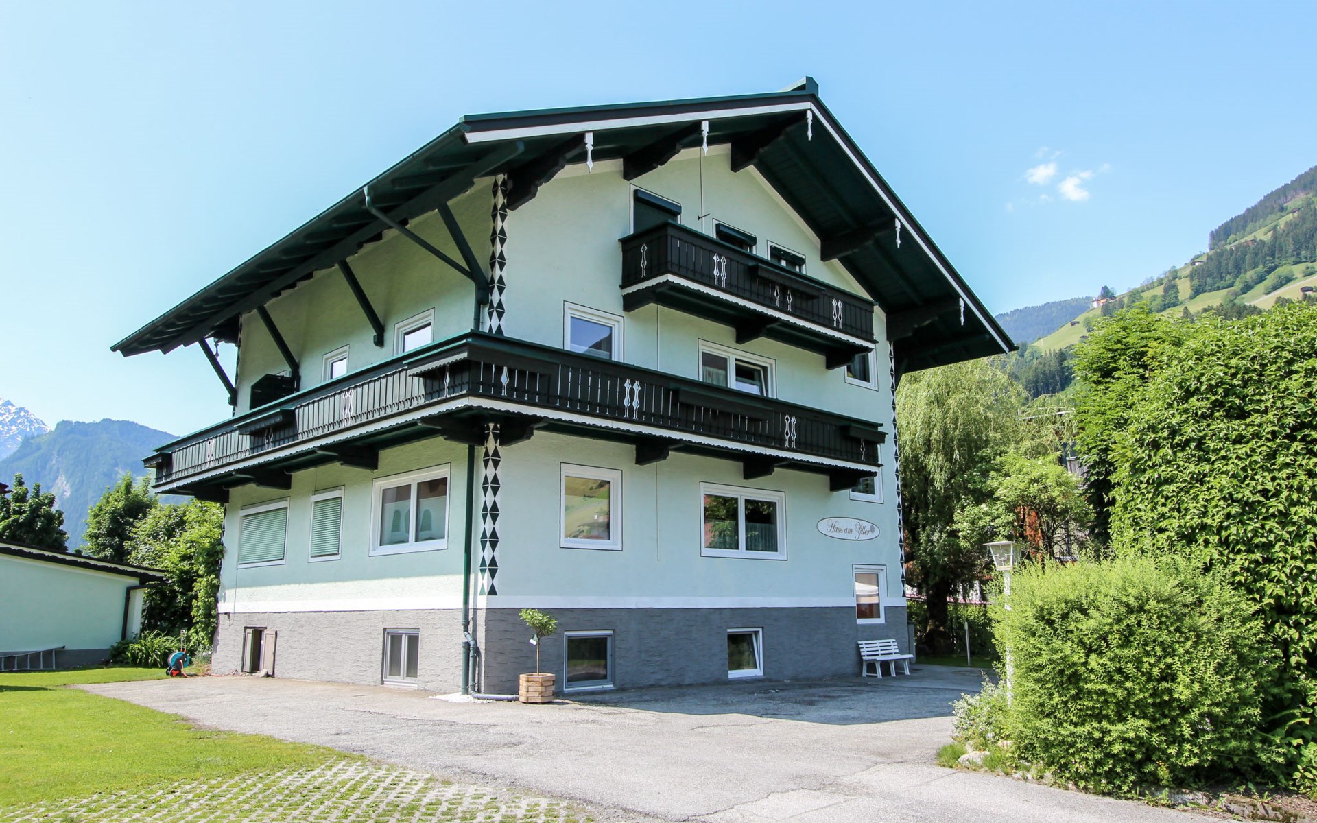 Hippach: Schönes, gemütliches Mehrfamilienhaus "Am Ziller". Im Ort, 200 m vom Zentrum von Hippach, 3.5 km vom Zentrum von Mayrhofen, sonnige Lage, exzellente Lage: Absolut zentral und dennoch ruhig, 8 km vom See, 2 km vom Skigebiet, direkt am Fluss. Im Hause: Wireless LAN, Einstellraum für Fahrräder, Skiraum, Zentralheizung, Skischuhtrockner. Zufahrt bis zum Haus. Parkplatz beim Haus. Lebensmittelgeschäft, Restaurant 200 m, Bäckerei 300 m, Zentrum zu Fuss in 2 Minuten erreichbar, Bushaltestelle "Ramsau i.Z. Hippach Bahnhof" 280 m, Bahnstation "Ramsau i.Z.-Hippach Bahnhof" 280 m, Freibad 150 m, Hallenbad 4 km, Badesee "Aufenfeld" 8 km. Golfplatz (18 Loch) 15 km, Wanderwege ab Haus 100 m, Radweg 20 m, Gondelbahn 2 km, Skisportanlagen 2 km, Skiverleih 150 m, Skibushaltestelle, Langlaufloipe 100 m. Bekannte Skigebiete sind gut erreichbar: Ski-Zillertal-3000 2 km, Zillertal Arena 5 km, Hintertuxer Gletscher 23 km. Bitte beachten: Gratis Skibus.