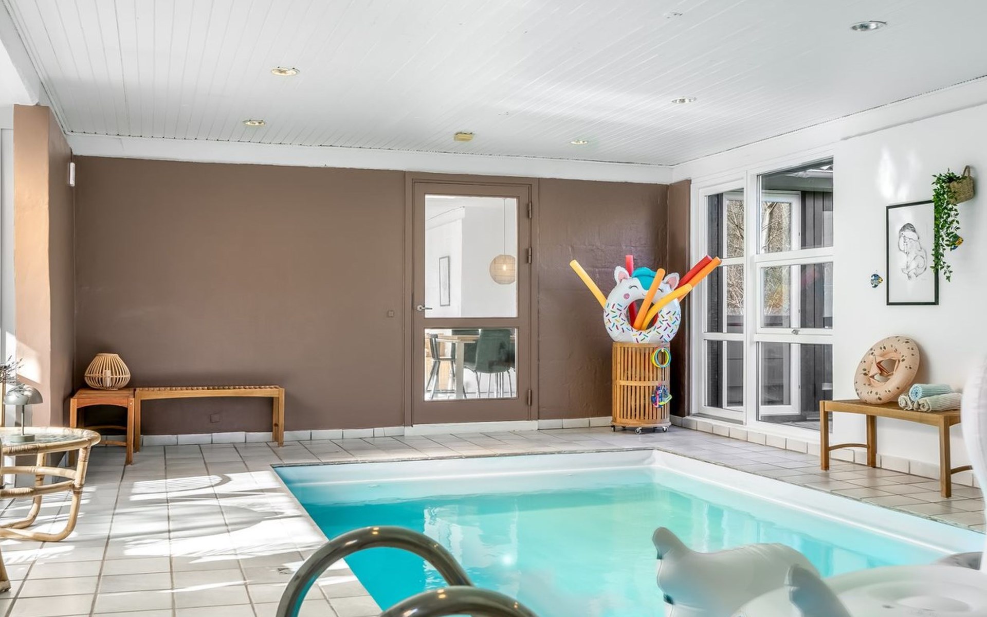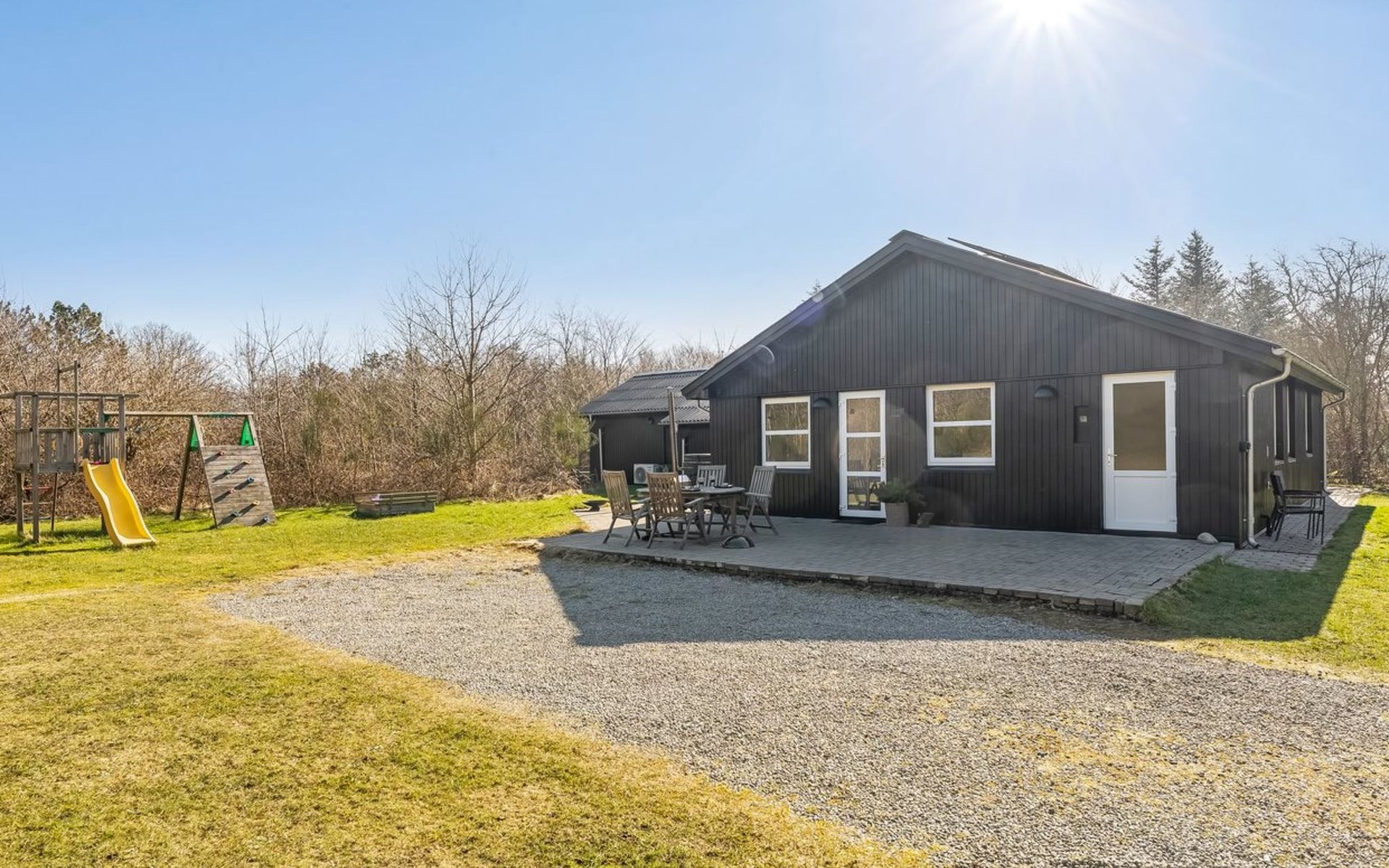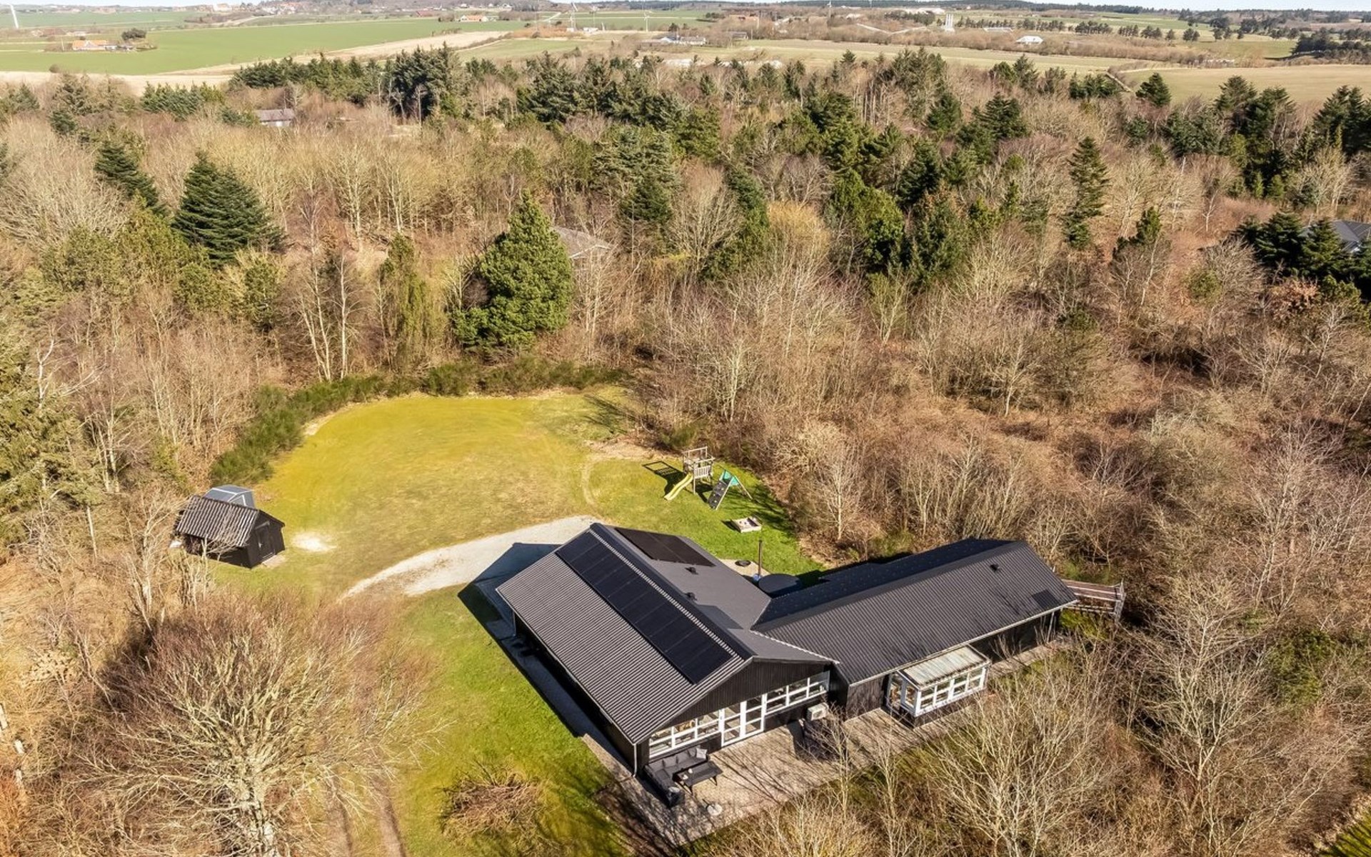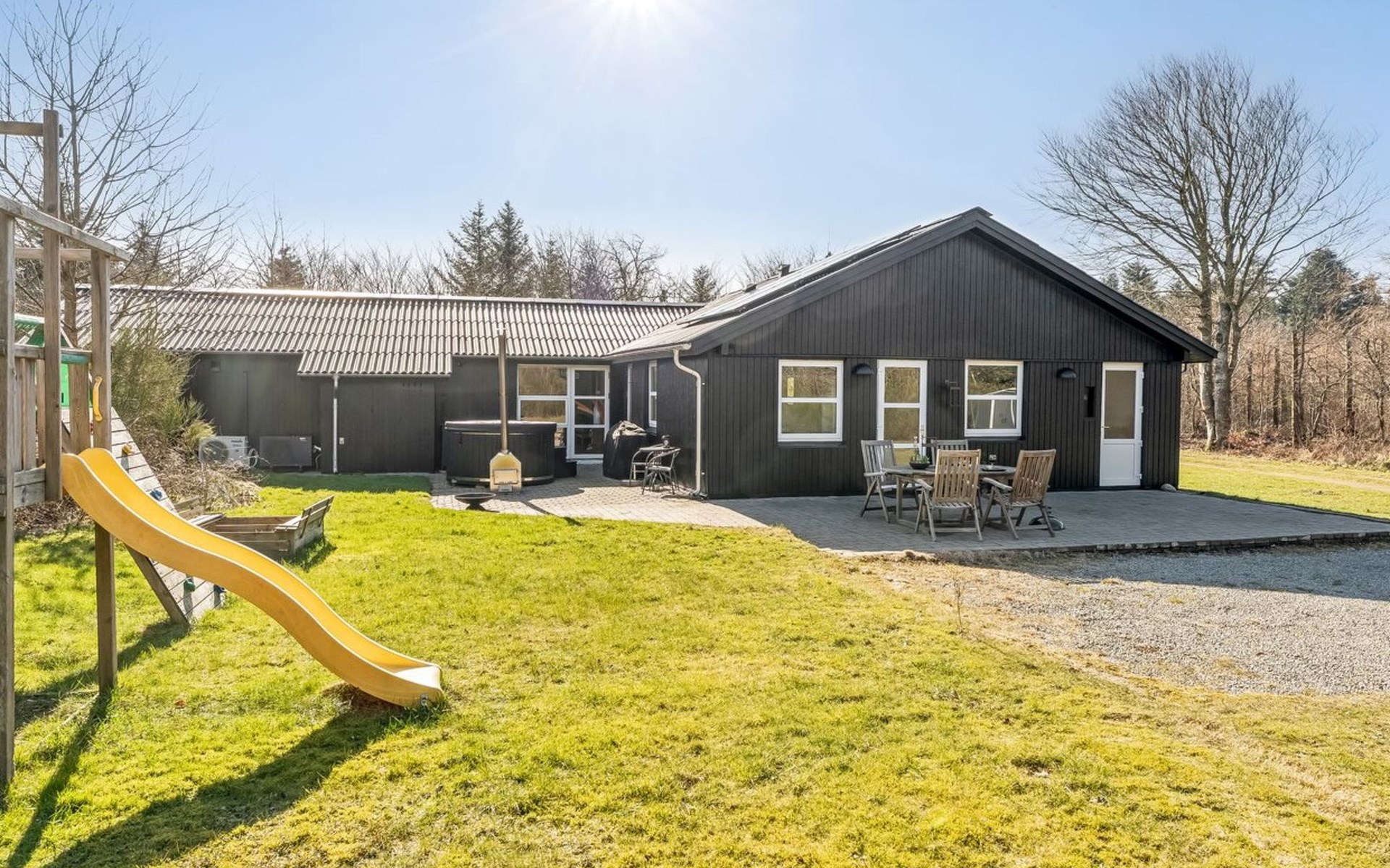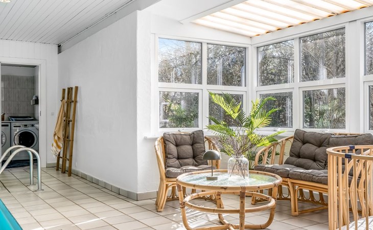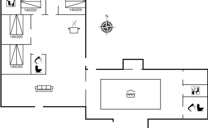 Einfamilienhaus, Baujahr 1976. 7.5 km vom Meer. Zur Alleinbenutzung: naturbelassenes Grundstück 4'790 m2, Hallenbad (3 x 6 m, 18 m2, 150 - 150 cm tief). Grill, Kinderspielplatz (Rutschbahn, Schaukel). Im Hause: Sauna, Waschmaschine, Wäschetrockner. Parkplatz beim Haus. Lebensmittelgeschäft 4 km. Golfplatz 3 km. Der Besitzer akzeptiert keine Jugendgruppen.