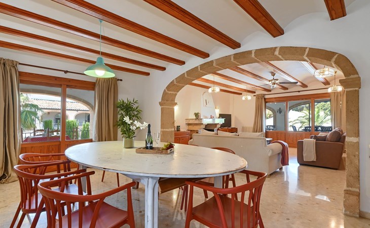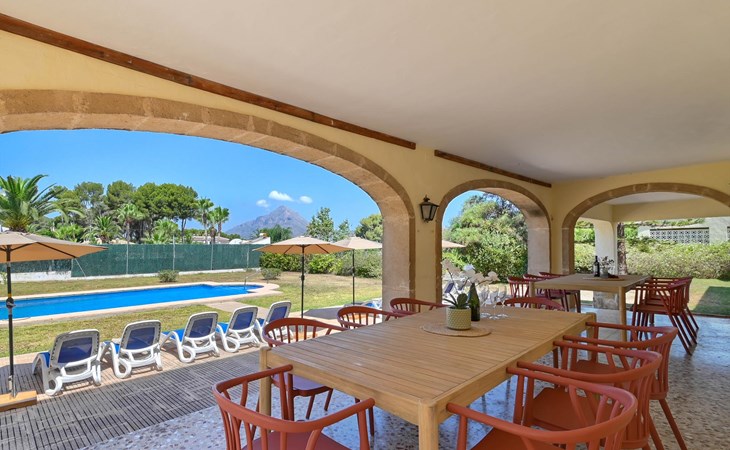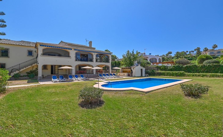 Grosse und komfortable Villa mit privatem Pool in Javea, Costa Blanca, Spanien für 14 Personen. Das Haus befindet sich in einer residentiellen Umgebung und etwa 2 Km entfernt vom Strand von El Arenal, Javea.