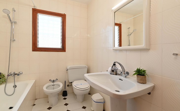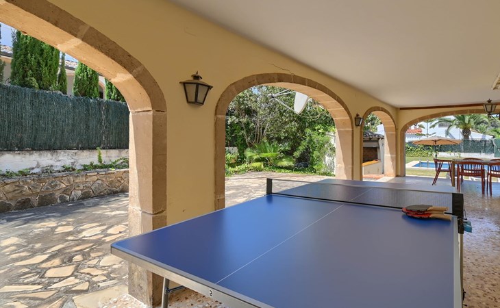 Die Villa hat 6 Schlafzimmer und 5 Badezimmer, verteilt über 2 Etagen. Die Unterkunft bietet Privatsphäre, einen schönen Garten mit Rasen und Bäumen und einen schönen Pool. Die Nähe vom Strand, Einkaufsmöglichkeiten, Sportaktivitäten, Freizeiteinrichtungen, Orten zum Ausgehen, Sehenswürdigkeiten und Kultur macht dies zu einer geeigneten Villa um Ihre Ferien in Spanien zu verbringen mit Familie oder Freunden und sogar Ihren Haustieren.