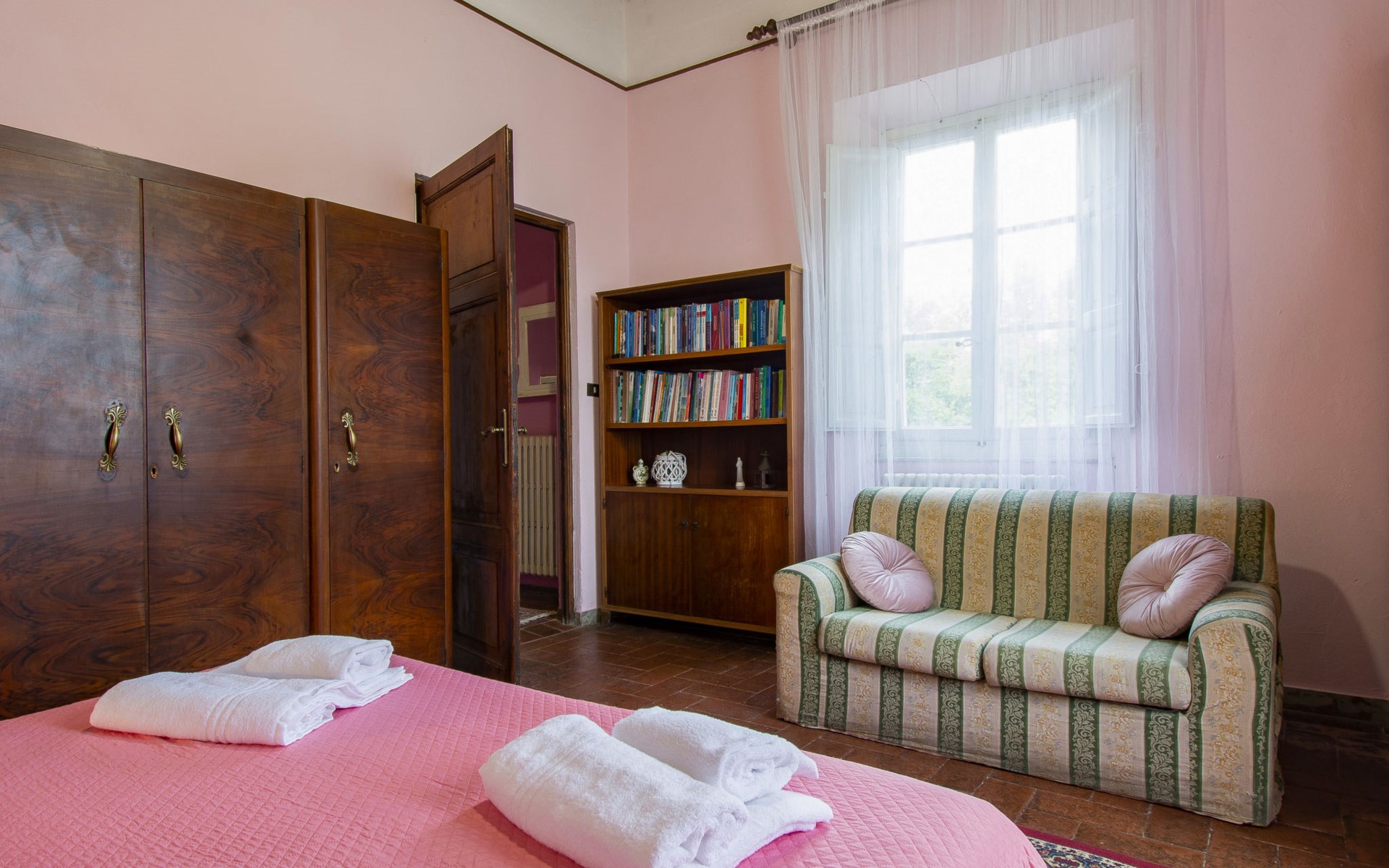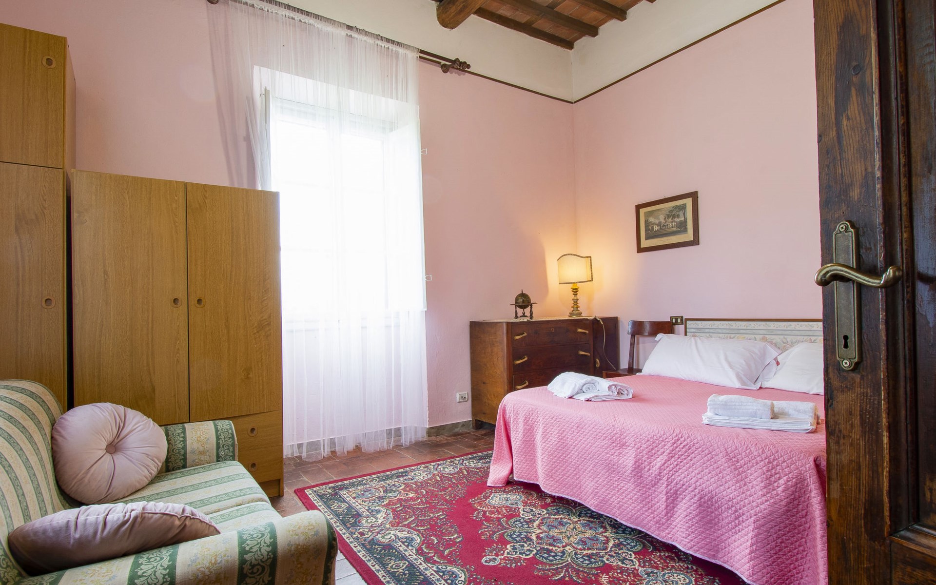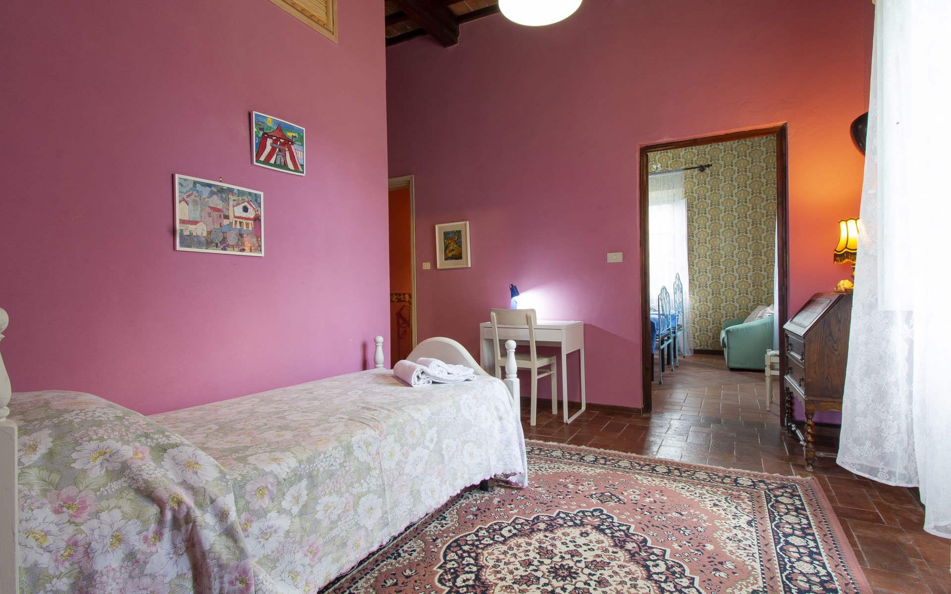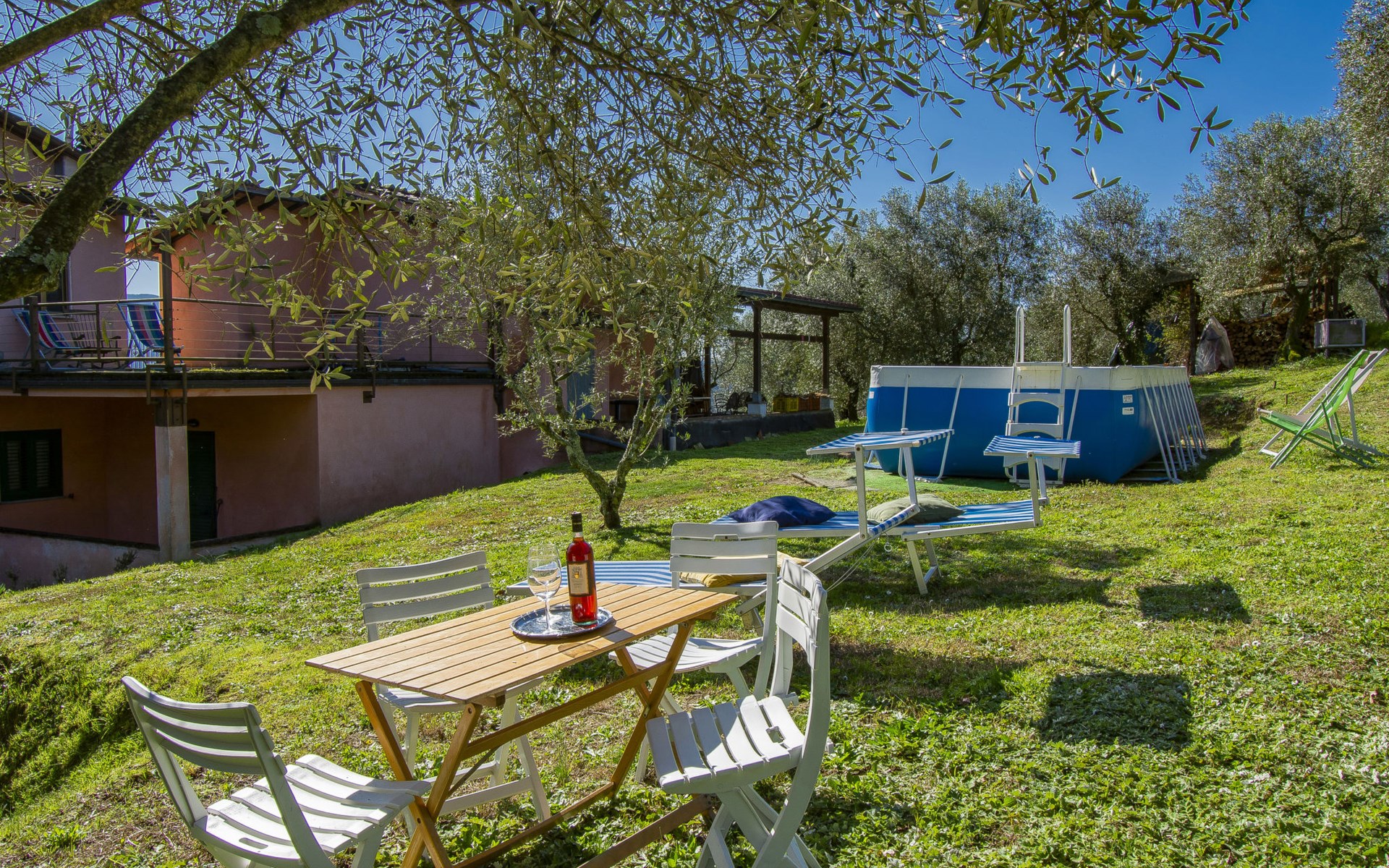 Gemütlicher, freistehender, komfortabler Landsitz "La Pergola", Baujahr 1888, renoviert im Jahre 2021, umgeben von Bäumen und Feldern. Im Ortsteil San Macario in Monte, ausserhalb des Ortes, 6 km vom Zentrum von Lucca. Zur Alleinbenutzung: Naturgarten 1'000 m2, wunderschöner Garten zum Entspannen, Teich, Aufstellpool nicht einsehbar (7 x 4 m, 120 - 120 cm tief, saisonale Verfügbarkeit: 01.Mai. - 30.Sep.). Gartenmöbel, Grill, Kinderspielplatz (Rutschbahn, Schaukel). Im Hause: Wireless LAN, Zentralheizung, Waschmaschine, Heizung nur verfügbar von 15.Nov. - 15.Apr.. Zufahrt (300 m Naturweg). Parkplatz (für 3 Autos). Lebensmittelgeschäft 1 km, Supermarkt 3 km, Restaurant 1 km, Bushaltestelle 450 m. Nahe gelegene Sehenswürdigkeiten: Lucca 6 km, Pisa 25 km, Viareggio 20 km, Firenze 85 km. Bitte beachten: Ein Teil des Hauses ist geschlossen und nicht bewohnt. Besitzer wohnt in separatem Hausteil. Eigentümer hat einen Hund.