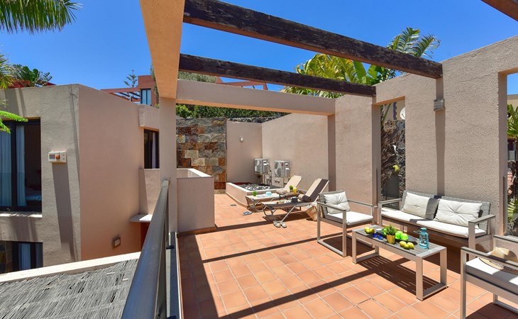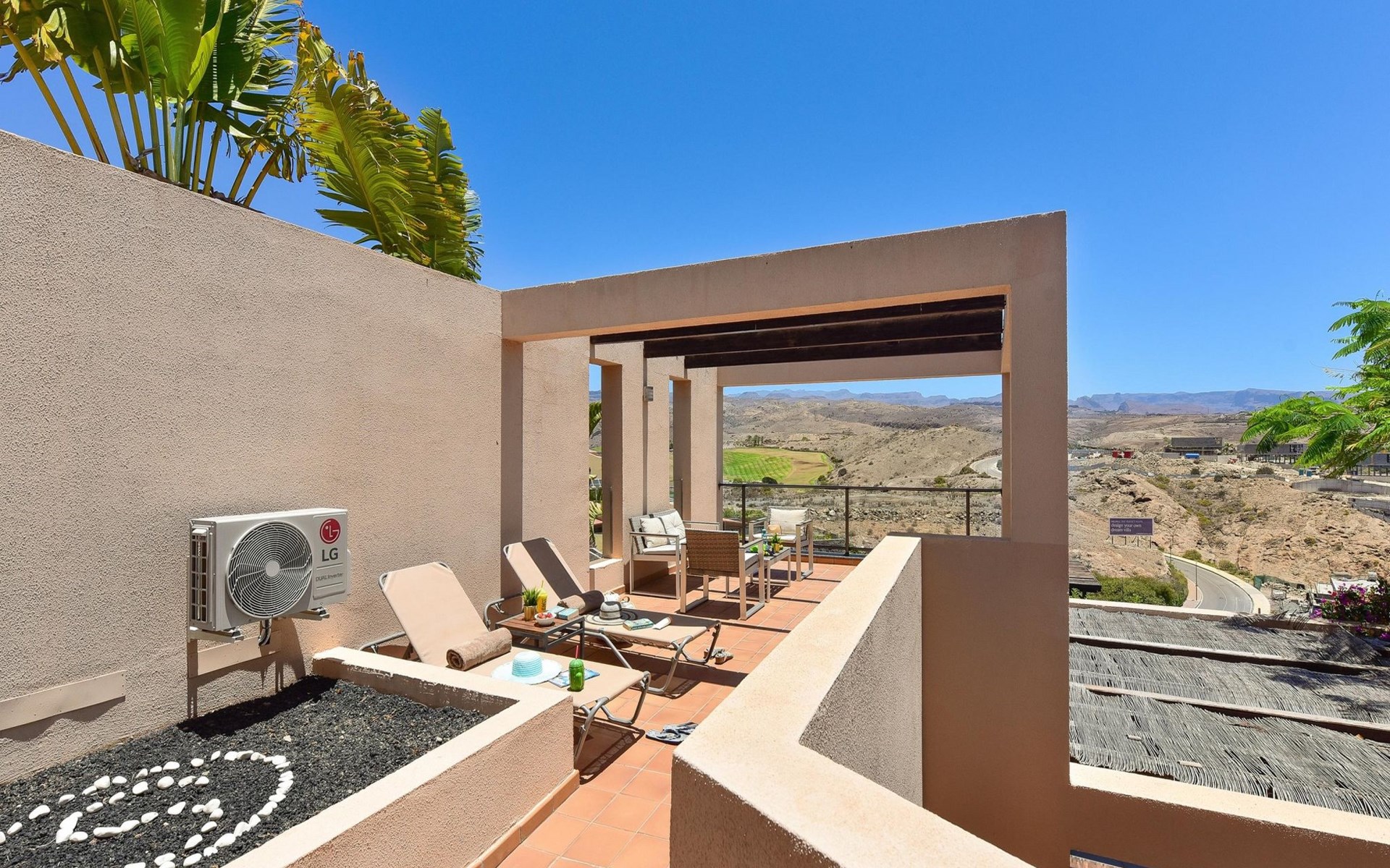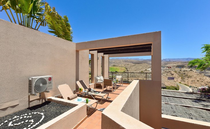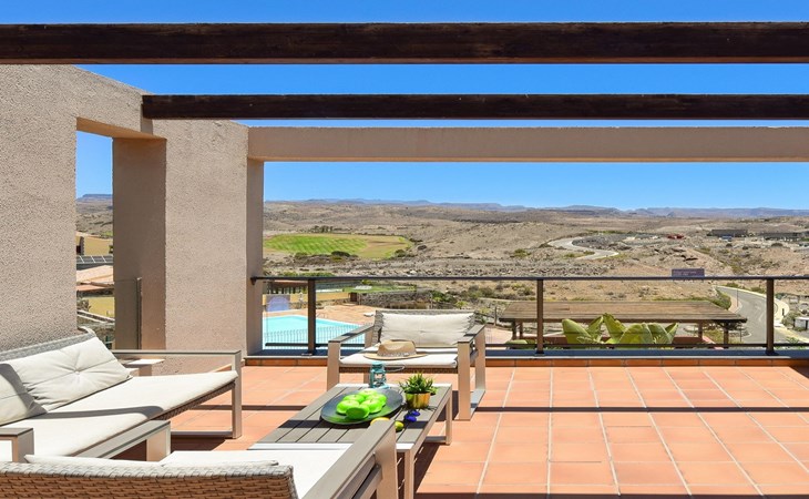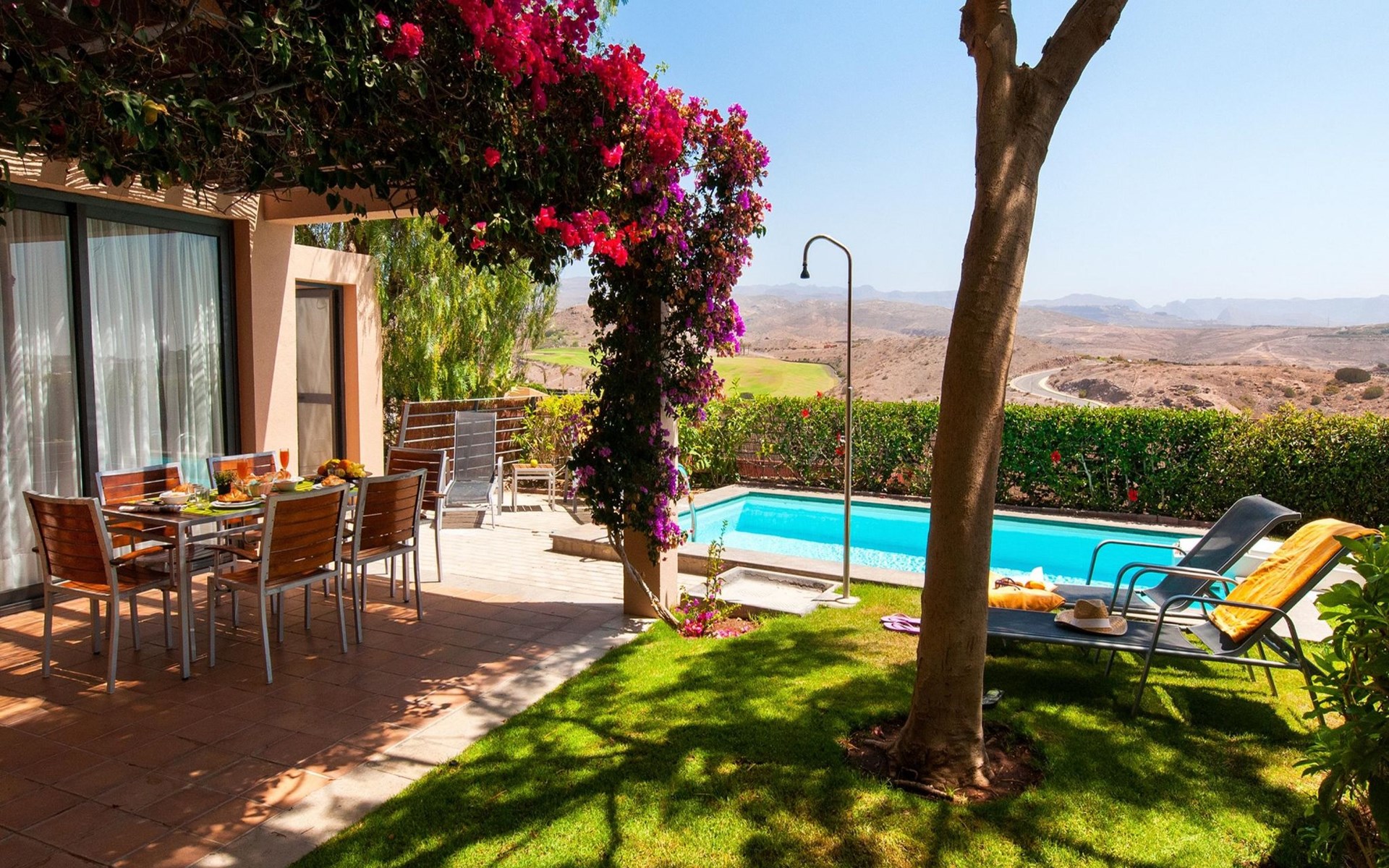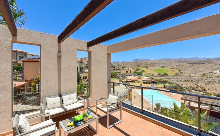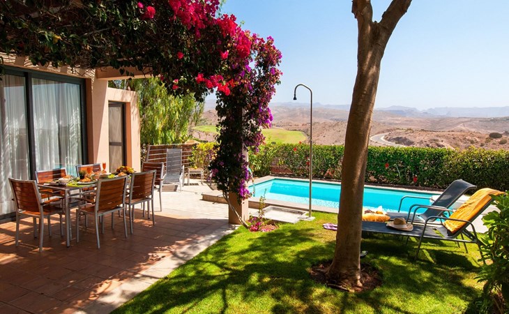 Kinderfreundliche, moderne, komfortable Villa "Las Terrazas 12". Oberhalb von Maspalomas, im Ortszentrum von Salobre Golf Resort, am Ortsrand Maspalomas, alleinstehende, sonnige Lage am Hang. Zur Alleinbenutzung: Garten (eingezäunt) mit Rasen, Schwimmbad eckig (6 x 2 m, 140 - 140 cm tief, saisonale Verfügbarkeit: 01.Jan. - 31.Dez.). Aussendusche, Grill, Parkplatz auf dem Grundstück. Einkaufsgeschäft 1 km, Lebensmittelgeschäft 12 km, Supermarkt 1 km, Restaurant 12 km, Bushaltestelle "Las Crucitas" 19 km, Sandstrand 12 km. Golfplatz (18 Loch) 1 km. Der Besitzer akzeptiert keine Jugendgruppen. Bitte beachten: Flugplatz 39 km vom Haus. Die Nachbarschaft ist sehr lärmempfindlich. Ruhe und gutes Benehmen wird erwartet.
