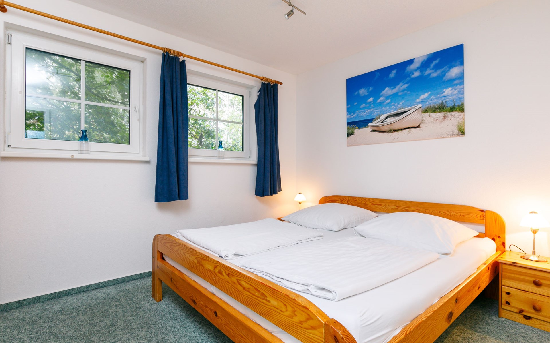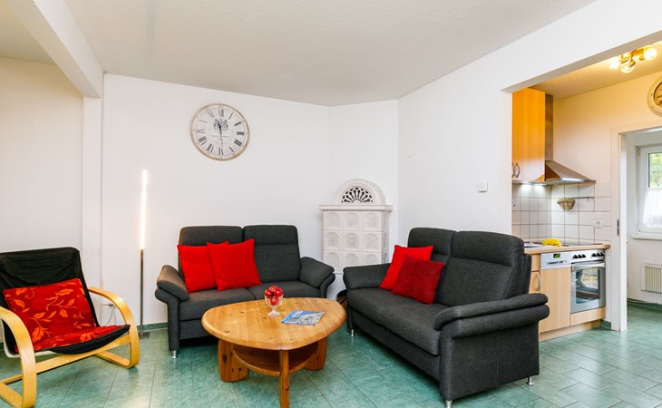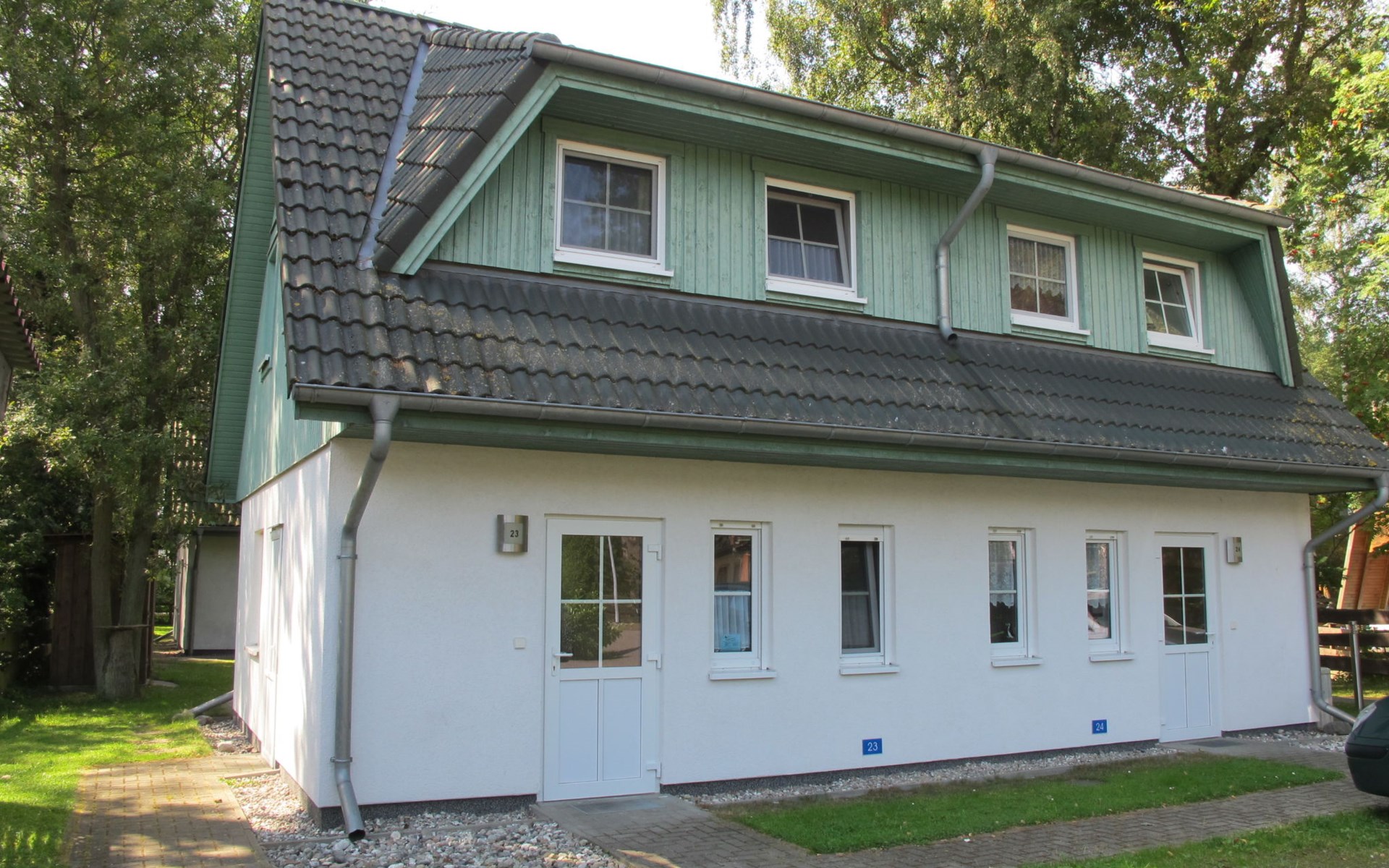 Doppelhaus "Im Kiefernweg". Am Ortsrand, 700 m vom Zentrum von Zinnowitz, vom Meer, 800 m vom Strand. Im Hause: Zentralheizung. Parkplatz auf dem Grundstück. Supermarkt 500 m, Restaurant 200 m, Bäckerei 700 m, Café 700 m, Bushaltestelle 450 m, Bahnstation 600 m, Sandstrand 800 m, Thermalbad "Bernsteintherme" 1.4 km. Jacht-Hafen 3.1 km, Golfplatz (18 Loch) 25 km, Surfschule 1.6 km, Tennis 1.7 km, Minigolf 1.4 km.