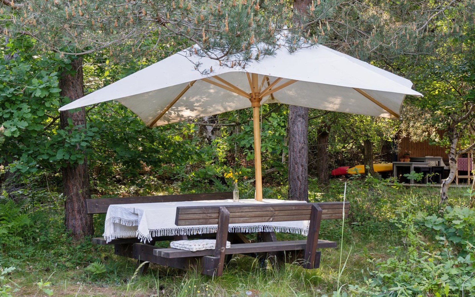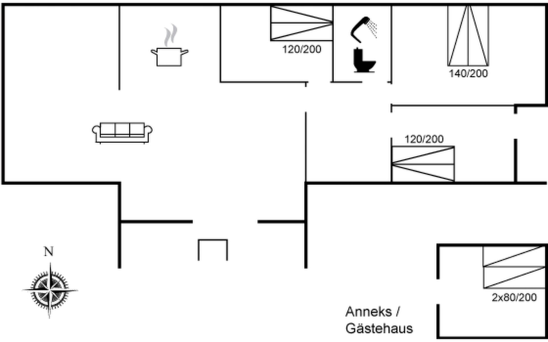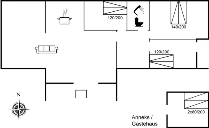 Einfamilienhaus, Baujahr 1980. 200 m vom Meer. Zur Alleinbenutzung: naturbelassenes Grundstück 2'095 m2. Terrasse (10 m2), Grill, Parkplatz beim Haus. Carport. Lebensmittelgeschäft 3.9 km. Golfplatz 4.5 km. Der Besitzer akzeptiert keine Jugendgruppen.