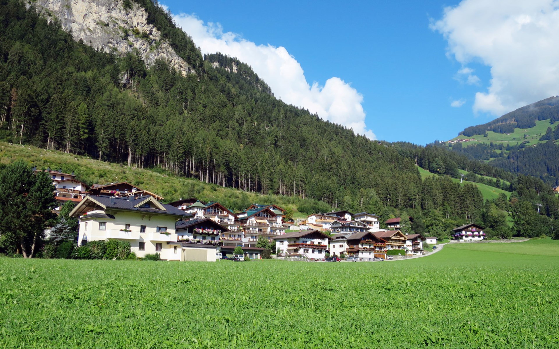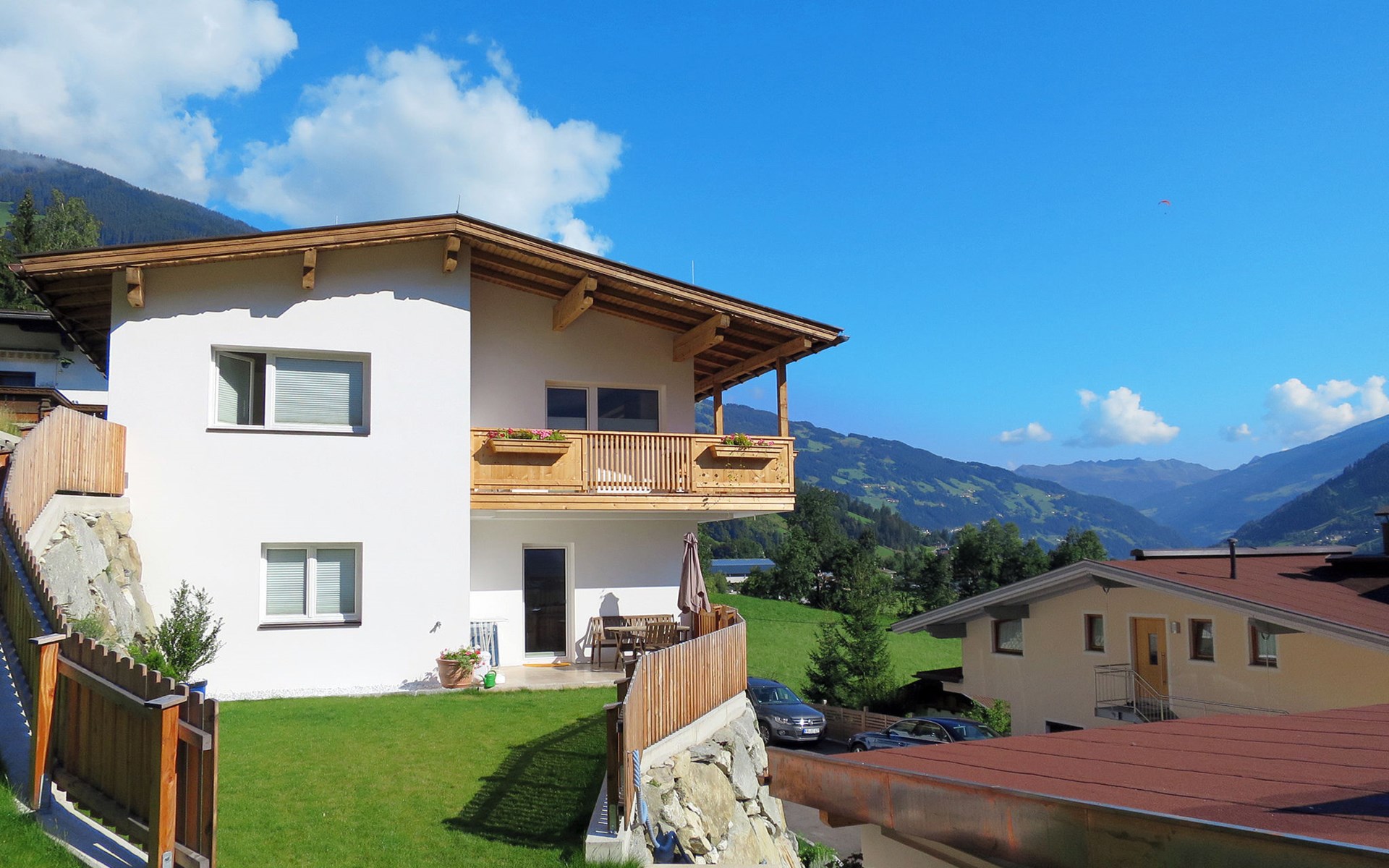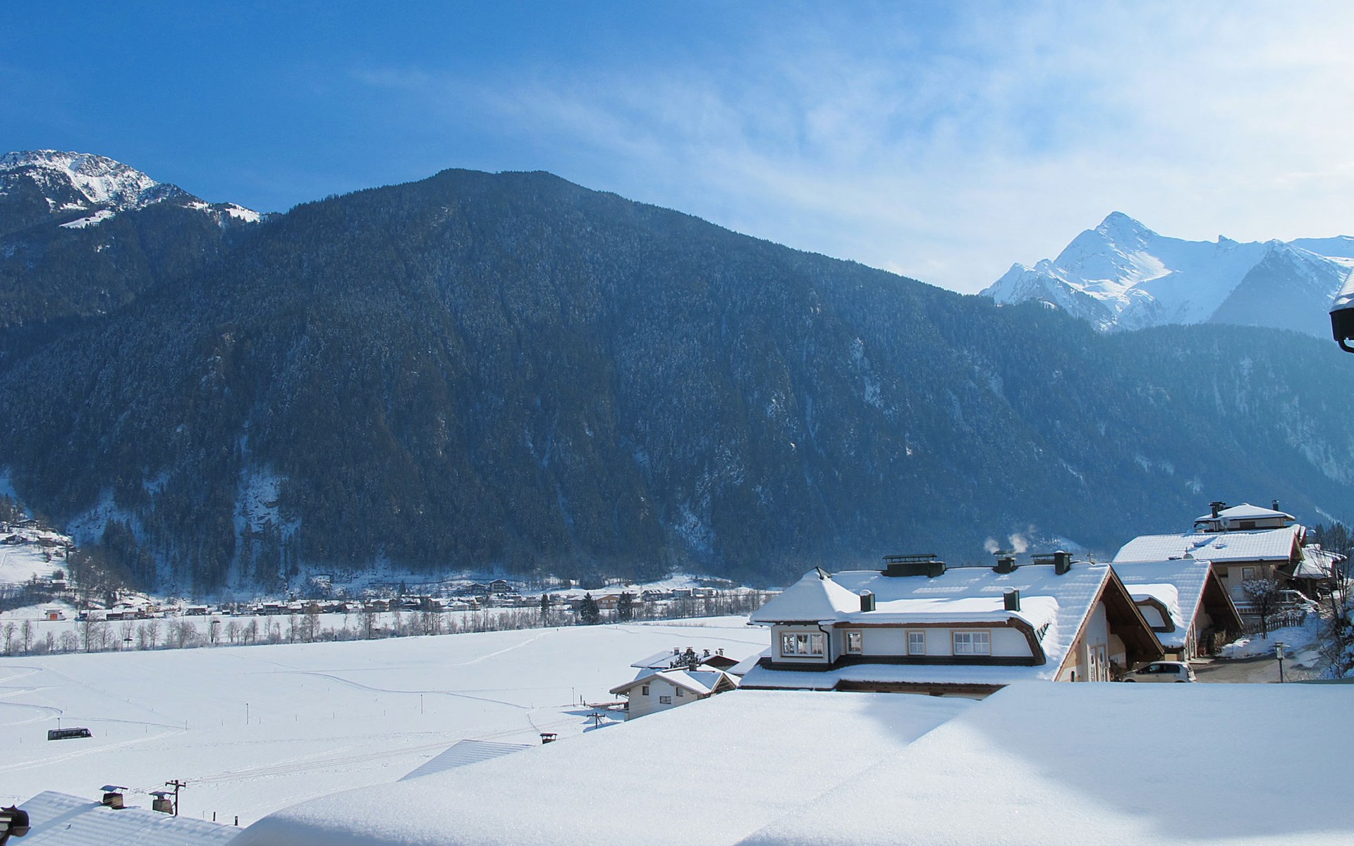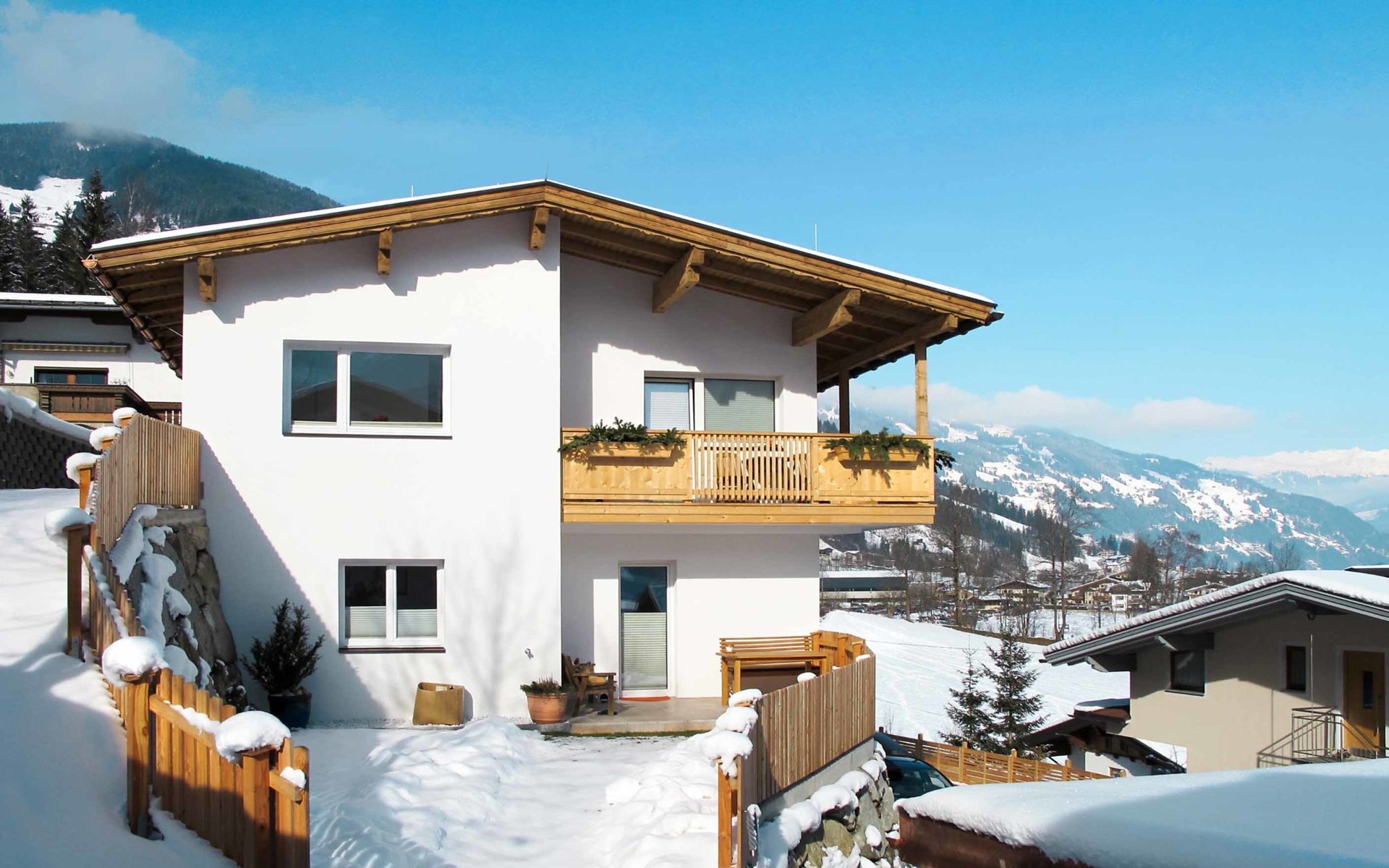 Neu Burgstall 3 km von Mayrhofen: Appartementhaus "Tamerl", auf 3 Stockwerken, renoviert im Jahre 2014. Im Ortsteil Neu Burgstall, 2.7 km vom Zentrum von Mayrhofen, 1.5 km vom Zentrum von Schwendau, 2 km vom Zentrum von Hippach, am Hang, 750 m vom Fluss. Im Hause: Skiraum, Waschmaschine, Wäschetrockner (zur Mitbenutzung). Brötchenservice. Parkplatz auf dem Grundstück. Einkaufsgeschäft 2 km, Supermarkt 3.2 km, Restaurant 300 m, Bushaltestelle 400 m, Bahnstation "Mayrhofen" 2.3 km, Freibad 2 km, Hallenbad 3 km. Golfplatz (18 Loch) 17.5 km, Bergeisenbahn 800 m, Skilift 800 m, Skibushaltestelle 300 m. Bei geeigneter Schneelage ab ca. 150 m vom Haus Skiabfahrt bis zur Talstation möglich.
