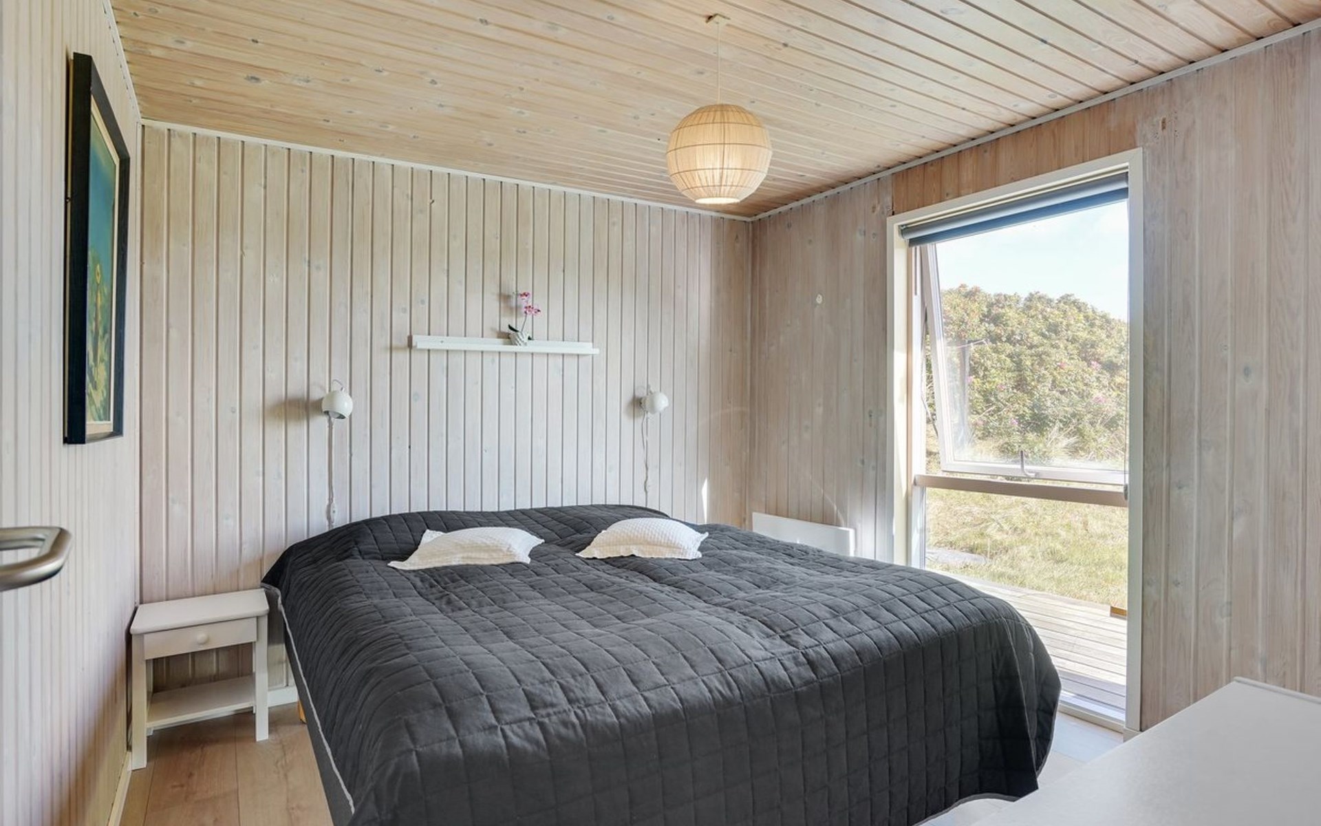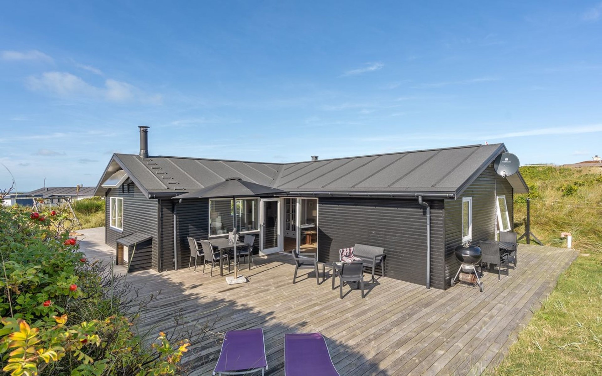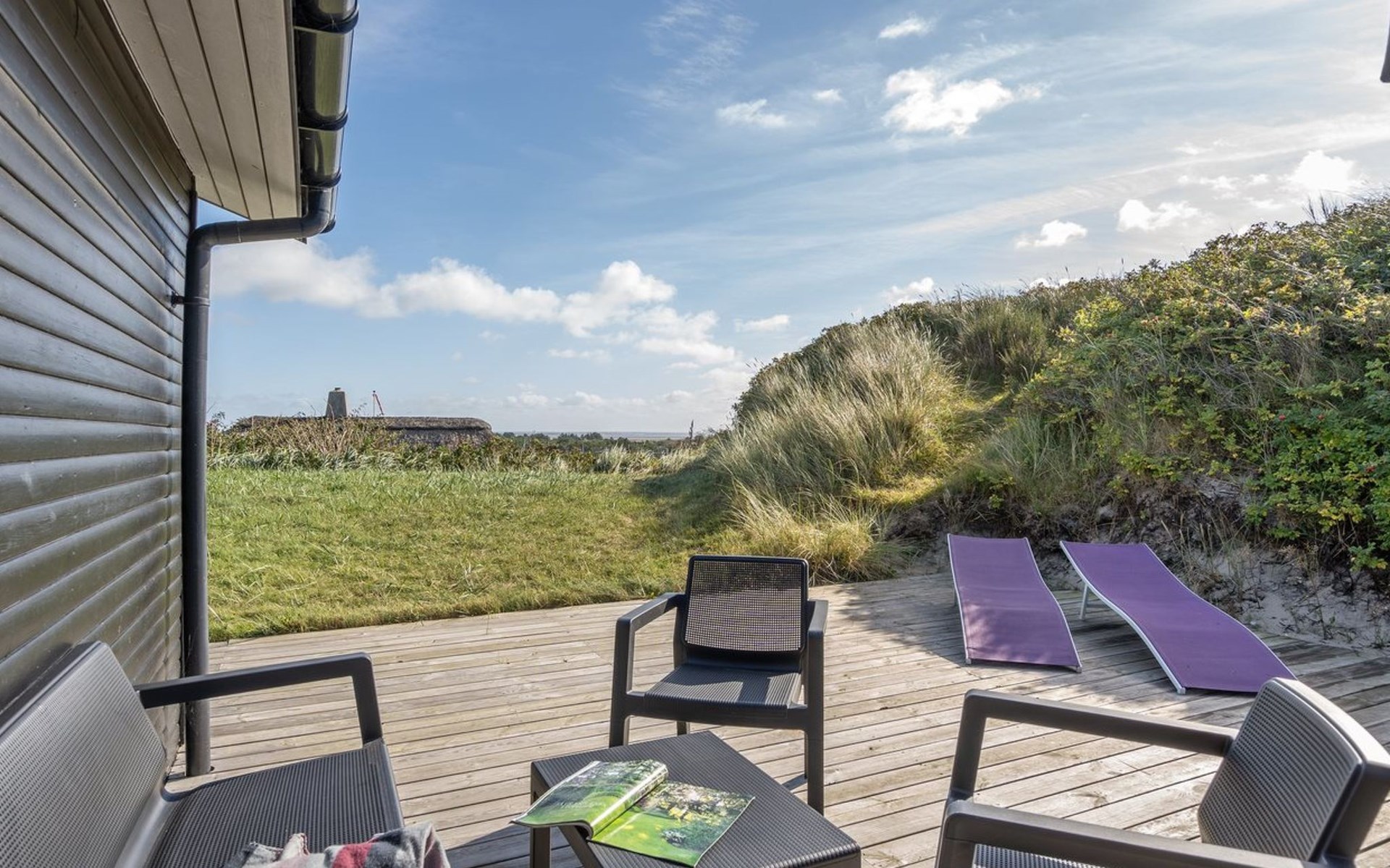 Einfamilienhaus, Baujahr 1982. 450 m vom Meer. Zur Alleinbenutzung: naturbelassenes Grundstück 1'400 m2. Terrasse (25 m2), Kinderspielplatz (Schaukel). Im Hause: Sauna, Waschmaschine, Wäschetrockner. Parkplatz beim Haus. Lebensmittelgeschäft 1.3 km. Der Besitzer akzeptiert keine Jugendgruppen.