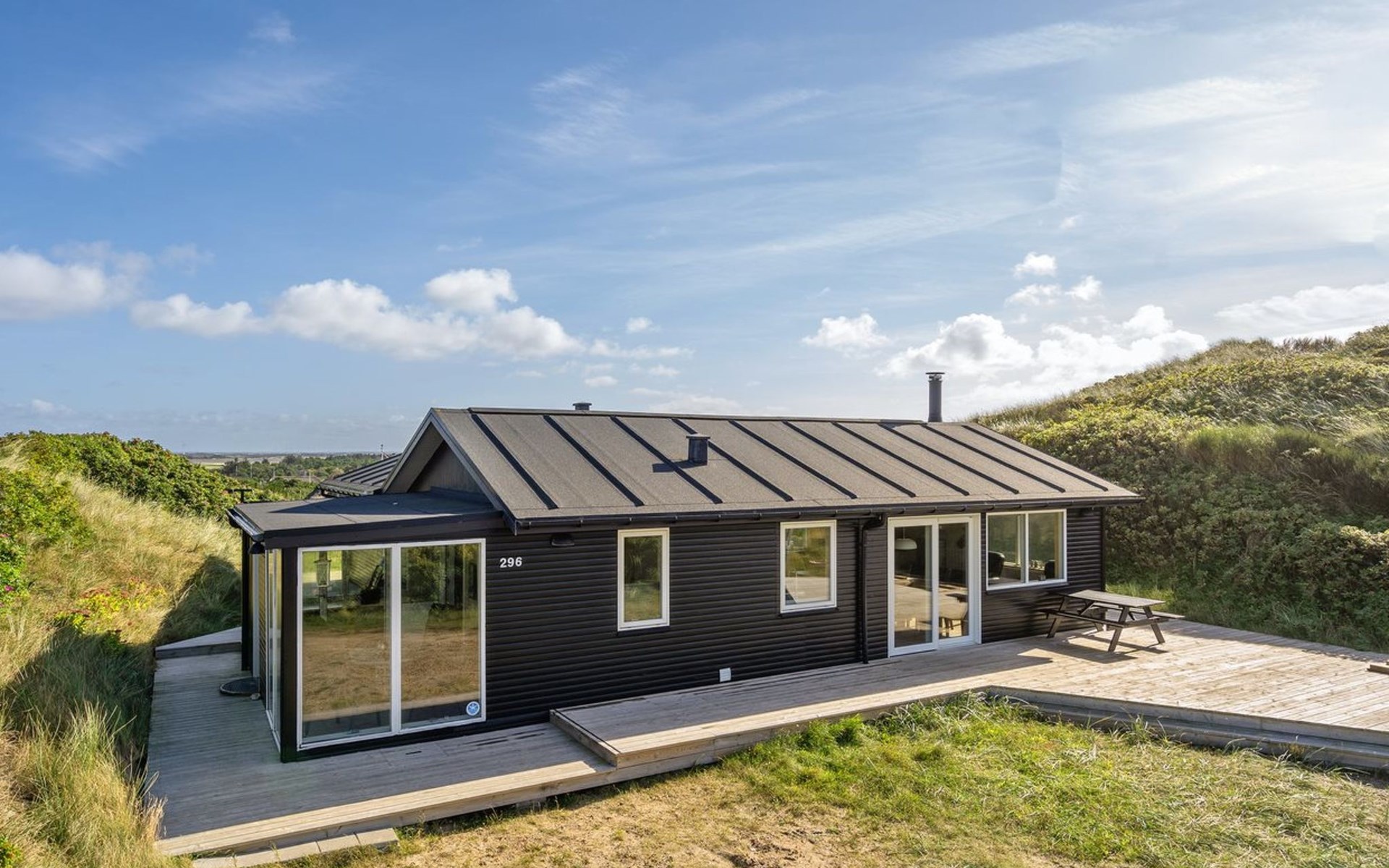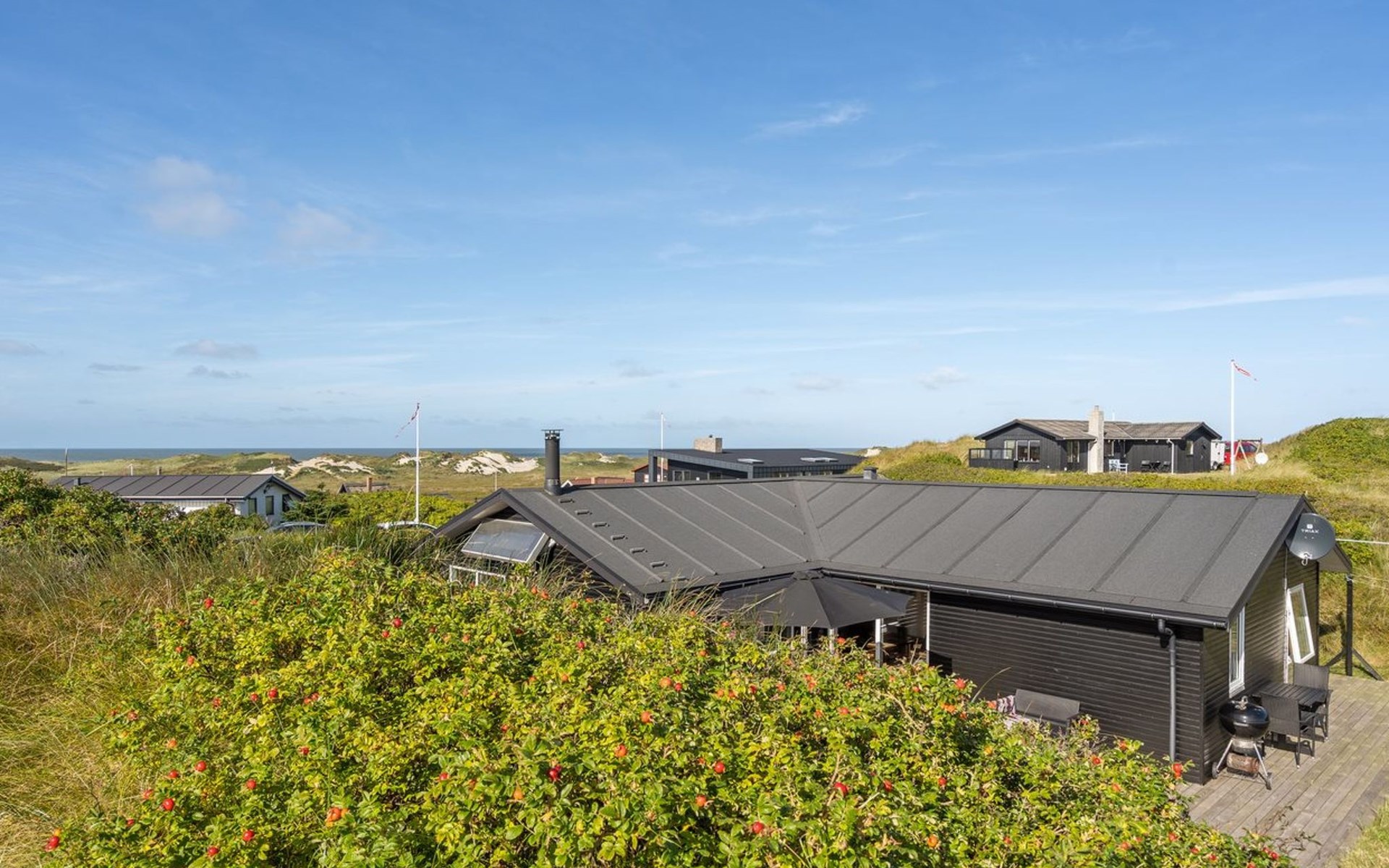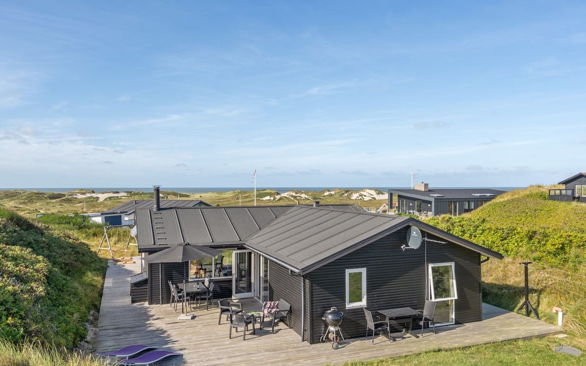 Einfamilienhaus, Baujahr 1982. 450 m vom Meer. Zur Alleinbenutzung: naturbelassenes Grundstück 1'400 m2. Terrasse (25 m2), Kinderspielplatz (Schaukel). Im Hause: Sauna, Waschmaschine, Wäschetrockner. Parkplatz beim Haus. Lebensmittelgeschäft 1.3 km. Der Besitzer akzeptiert keine Jugendgruppen.
