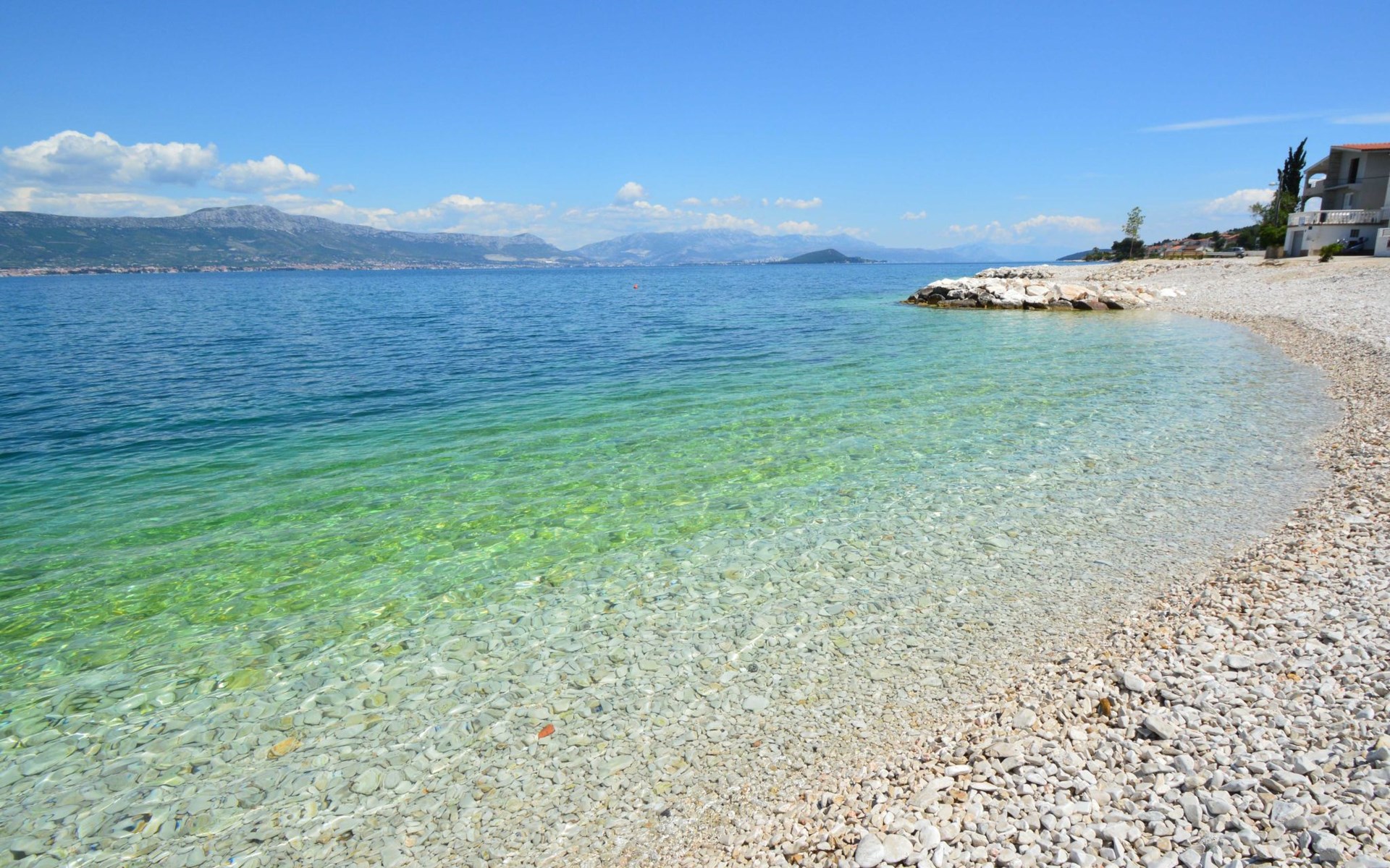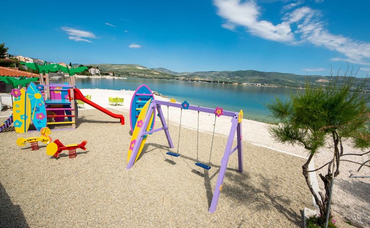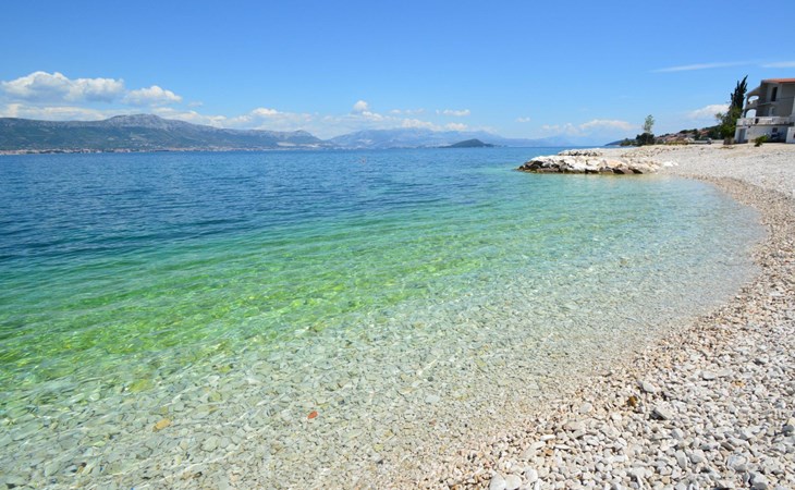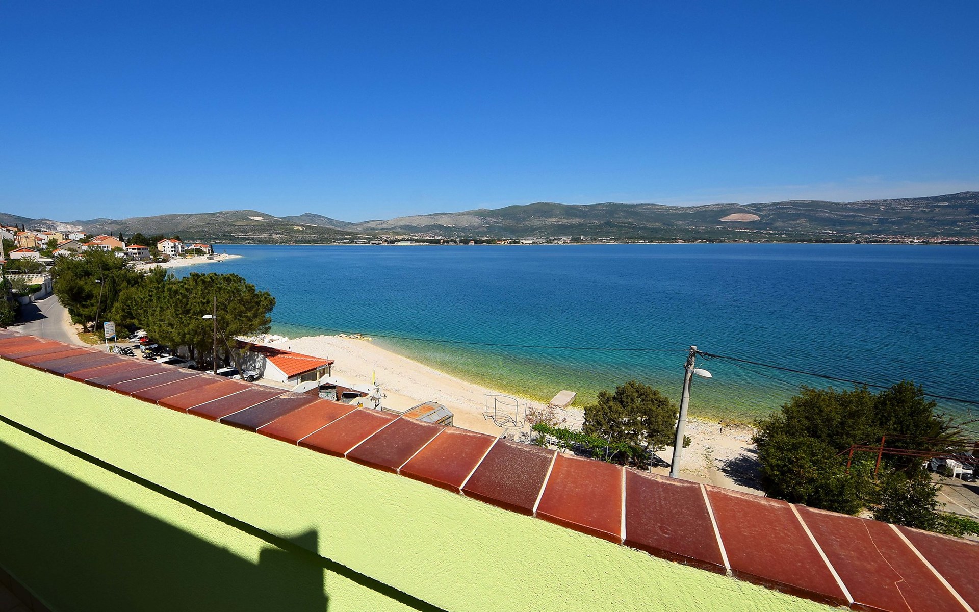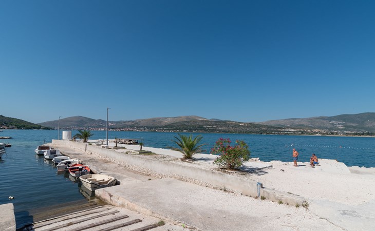 Arbanija (Čiovo) 4 km von Trogir: Appartementhaus "Šarić". 100 m vom Zentrum von Arbanija, sonnige Lage, 30 m vom Meer, 30 m vom Strand. Im Hause: Internetzugang. Öffentliche Parkplätze. Einkaufsgeschäft, Restaurant 50 m, Bushaltestelle 18 m, Kieselstrand 30 m. Tennis 7 km. Bitte beachten: Flugplatz 10 km vom Haus.