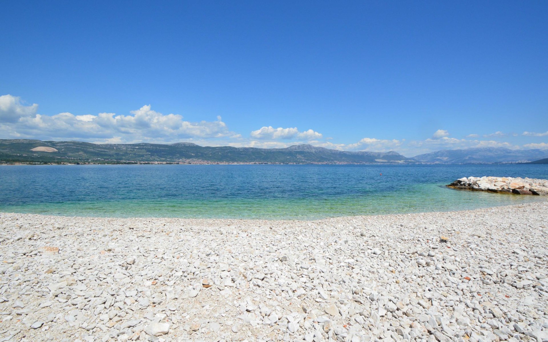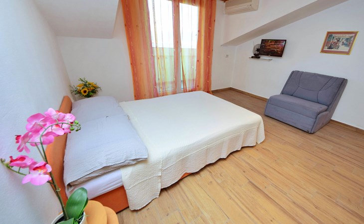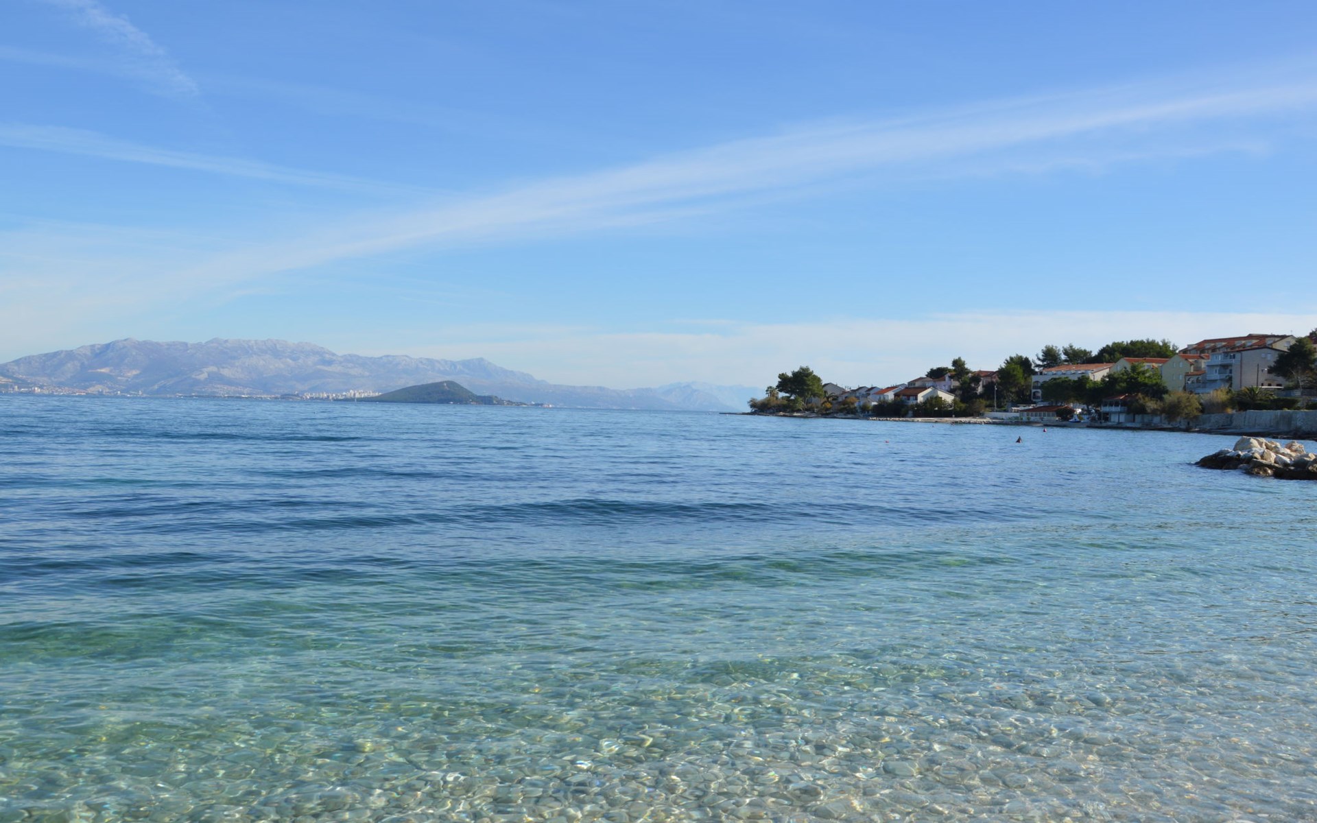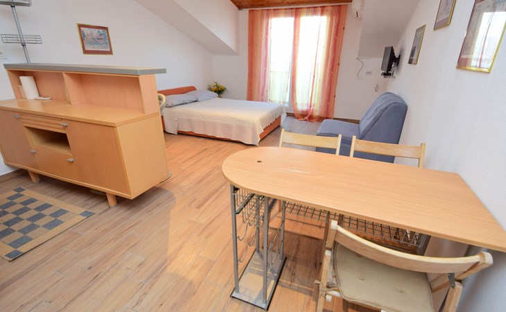 Arbanija (Čiovo) 4 km von Trogir: Appartementhaus "Šarić". 100 m vom Zentrum von Arbanija, sonnige Lage, 30 m vom Meer, 30 m vom Strand. Im Hause: Internetzugang. Öffentliche Parkplätze. Einkaufsgeschäft, Restaurant 50 m, Bushaltestelle 18 m, Kieselstrand 30 m. Tennis 7 km. Bitte beachten: Flugplatz 10 km vom Haus.